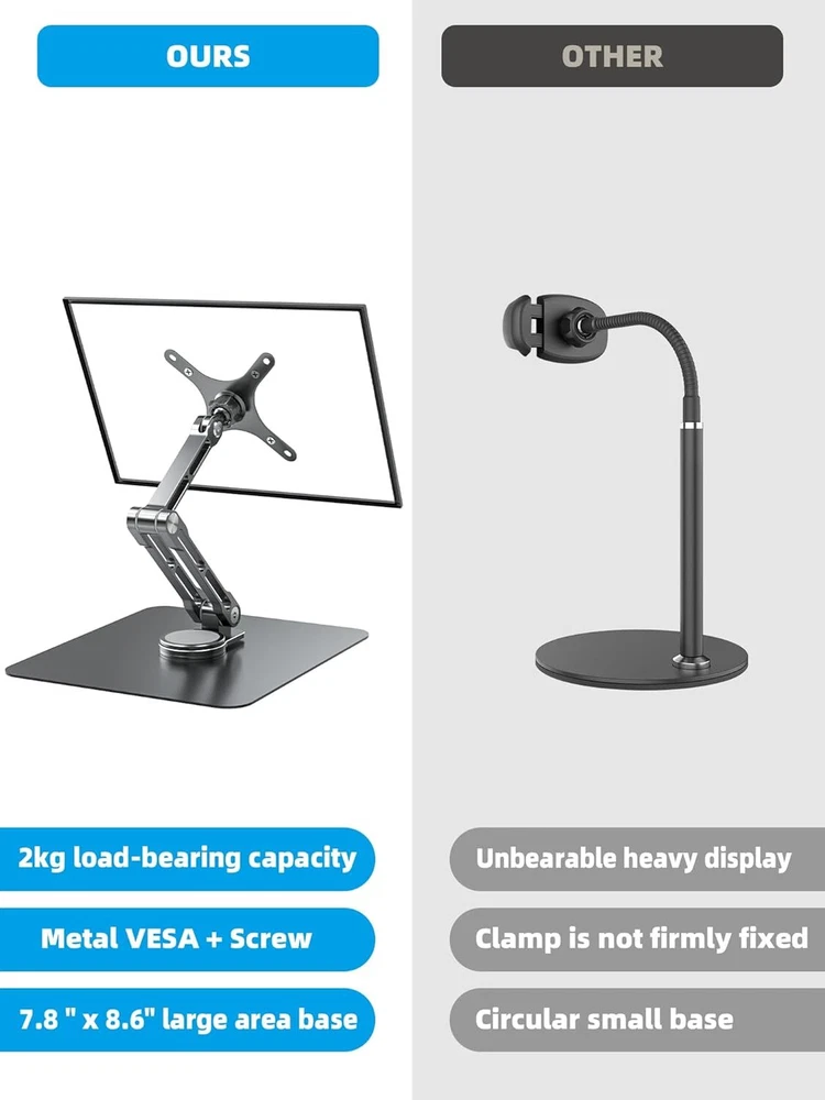 Product Description Portable Monitor Vesa Stand 18.5 Inch 18" 17.3" 17" For Small Monitors Large Base Stable Mount For Office Use Support Vesa 75X75 100X100Mm Ws-03E Enhanced Stability And Anti-Slip Design:Ensure Your Monitor Stays Securely In Place With The Portable Vesa Monitor Stand. This Stand Features A Stable And Anti-Slip Design, Perfect For Both Vesa And Non-Vesa Monitors. Whether You'Re Working, Gaming, Or Studying, Enjoy A Wobble-Free Experience With This Reliable Portable Vesa Monitor Stand Solution. Versatile Vesa Compatibility:The Portable Vesa Monitor Stand Supports Both 75X75 And 100X100 Vesa Mount Standards. This Travel Monitor Stand Is Ideal For Various Monitor Brands And Sizes (15-27 Inches), Providing A Versatile And Adaptable Vesa Desk Stand For All Your Needs. Whether You Need A Vesa Mount Stand For Your Office Or Gaming Setup, This Stand Has You Covered. Perfect For Travel And Portability:Designed With Portability In Mind, The Vesa Monitor Stand Is Lightweight And Easy To Carry. It'S The Perfect Travel Monitor Stand For Professionals, Students, And Gamers On The Go. This Portable Vesa Monitor Stand Ensures You Have A Stable And Foldable Monitor Stand Wherever You Are, Making It An Essential Accessory For Your Travels. Ideal For Office And Gaming Setup:Enhance Your Workspace With The Portable Vesa Monitor Stand. This Lay Flat Monitor Stand Solution Is Ideal For Office Workers, Students, And Gamers. Elevate Your Monitor To An Ergonomic Height, Reduce Neck Strain, And Improve Your Overall Productivity. This Low-Profile Vesa Monitor Stand Is Perfect For Creating An Efficient And Comfortable Workspace. Durable And High-Quality Construction:Built From High-Quality Materials, The Portable Vesa Monitor Stand Is Designed To Last. Its Robust Construction Ensures Long-Lasting Durability, Making It A Reliable Vesa Mount Stand For Daily Use. This Portable Vesa Monitor Stand Is Perfect For Anyone Looking For A Sturdy And Dependable Foldable Monitor Stand Solution. About Us We are a reputable seller with many years of experience selling on eBay. Our goal is to provide high-quality products and excellent customer service. Shipping Items will be shipped within 1-3 business days when we received payment. (Orders are not processed on weekends & holidays) Tracking information will be sent once item is shipped. Delivery time depends on destination and other factors Item is shipped to ebay address. Leaving correct address can minimize delay. For international shipping and shipping to Guam, Hawaii and Alaska, Please contact us before placing the order. International buyers please note: Import duties, taxes and charges are not included in the item price or shipping charges. These charges are buyer’s responsibility. We will try our best to reduce the risk of the custom duties. Local pick-up is unavailable at the moment. Contact Us We reply any email messages within 1 business / working days(off-duty at weekend). If you do not get a response from us, then please check your junk or spam mailbox. Our Business hours: Mon-Fri 9:00-18:00, UTC/GMT +8 hours. Please contact us either by clicking "contact seller" in the "purchase history" section or simply click "ask a question" at the bottom of this page. If you are unsatisfied with our item or service, please contact us before leaving any feedback. We are committed to resolve all issues in a friendly and satisfactory manner.