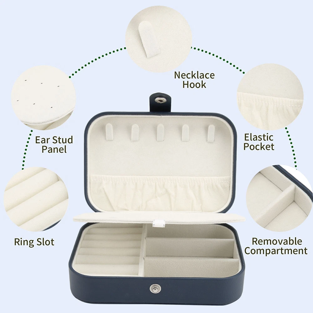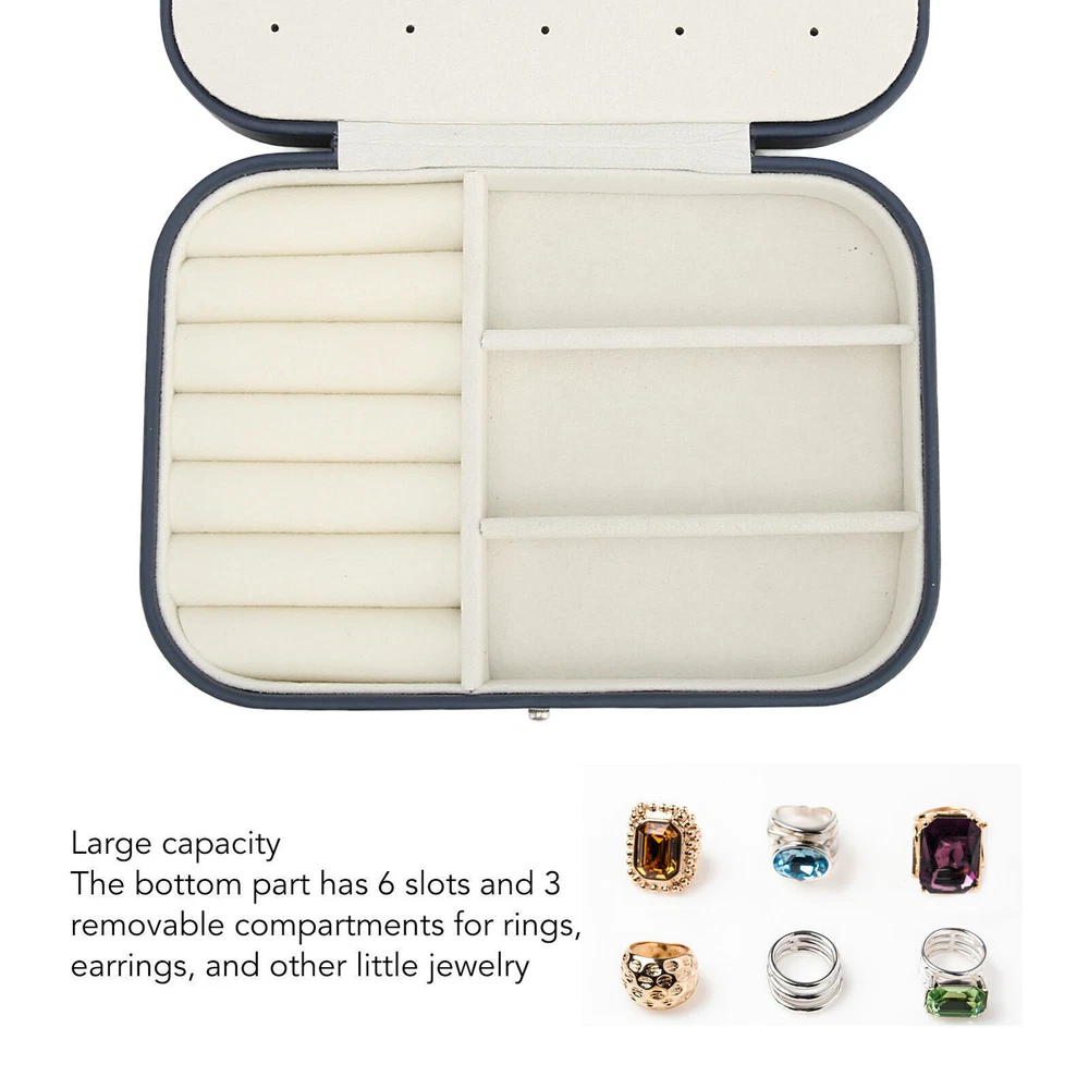 Feature: 1. PU LEATHER: Portable jewelry box exterior with PU leather, wear resistant and scratch resistant, durable, waterproof and easy to clean, long service life. 2. SOFT LINING: Portable jewelry storage holder box is made of bead fleece inside, soft and reliable, which can defend your jewelry from scratches and damages. 3. LARGE CAPACITY: The bottom part has 6 slots and 3 removable compartments for rings, earrings, and other little jewelry. the top lid section has 5 hooks and lower The top lid section has 5 hooks and lower elastic pocket to keep necklaces, bracelets perfectly in place, and there is an ear studs panel in the middle part. 4. COMPACT AND PORTABLE: Portable jewelry organizer case with compact design, small size and light weight, will not take up too much space, easy to carry and use, suitable for outdoor travel. 5. PRACTICAL GIFT: Portable travel jewelry case is beautiful in appearance and is a perfect gift for women and girls on Valentine's Day, birthday, Mother's Day, Christmas or wedding. Specification: Item Type: Portable Jewelry Box Material: PU Leather Size: Approx. 16x10.92x5.08cm / 6.3x4.3x2.0in Color: Dark Blue Package List: 1 x Portable Jewelry Box Note: 1. All data are measured manually, and there are certain errors in the measurement results. 2. Please note that jewelry is not included! All the items will be dispatched within one business day by Airmail after the payment is clear. Most times you will receive your order within 10-30 business days after we transfer your package to the delivery company. We cannot guarantee the delivery timeframe if the post office has any unexpected delays due to holiday,weather,customs, or other conditions. Some countries like Russia, Brazil, or some European countries may take up to 50 days or longer for delivery. We appreciate your patience if you haven't received items in 30 days(Russian customers may need more patience by reason of the local delivery system and/or customs). If you are concerned in any way, please feel free to contact us via ebay message instead of leaving negative/neutral feedback or opening a dispute . We will do our best to solve any problem(resend or refund any missingitem). Customs duty is obligation and liability of citizens in yourresponsible for any tax and custom duty incurred. Generally, thedelay or failure delivery is sometimes caused by the policy of different customs. Our listing price includes the value of goods,packaging cost,and export taxes,not including international duties. duties,taxes,and charges are not included in the item price or shipping fee. The duties are buyers' responsibility. Please check with your country's customs office determine what these additional costs will be prior to your purchase. All disputes arising from the duties will be submitted to ebay for solution. Any questions, pls. contact us via ebay message or email us. We will reply your message within 48 hours. If you do not receive our reply within 48 hours, pls. post a message again because sometimes our message system may block some emails. If you are satisfied with our service, pls. kindly leave us a positive feedback and give us the Detailed Seller Rating with all " 5 " in very area. Our aim is to provide Level Customer Service, your recognition will encourage us greatly and serve you better. We strive to keep all our customers satisfy. We will do our up most to exceed your expectations in customer service, communication and dispatching of your orders.