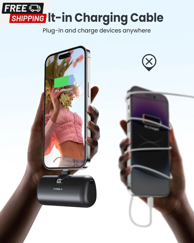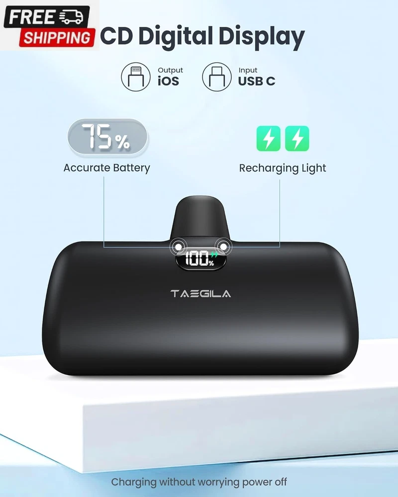 Fast Shipping On All Items 30 Days Money Guarantee Customer Support Excellent Service 100% Satisfaction Satisfaction Guaranteed Portable Phone Charger for Iphone, 5000Mah Small Power Bank Mfi Certified Built in Cable LCD Display & LED Light for All Iphone Series 14/13/12/11/XR/X/SE/8/7/6 Pro Max Specification Portable Yes Color A Black Compatible Devices compatible with iPhone 14 14 Pro Max 13 13 Pro Max 12 12 Mini 12 Pro Max 11Pro XS XR X 8 7 6 Plus and so on. Model Number EB612 Connector Type USB Type C, Lightning Item Weight 0.2 Pounds Number of Ports 1 Connector Type Used on Cable USB Type C, Lightning Recommended Uses For Product compatible with iPhone 14 14 Pro Max 13 13 Pro Max 12 12 Mini 12 Pro Max 11Pro XS XR X 8 7 6 Plus and so on. Charging Time 1 Hours Additional Features Lightweight,Portable,Portable Charger,Travel Special Feature Lightweight,Portable,Portable Charger,Travel Power Source Rechargeable Voltage 5 Volts 2.56 inches x 3.74 inches x 1.26 inches. Weight: 0.2 lb Item Description 5000mAh LCD Display Charger: The portable power bank has LCD displays the battery numerically, let you know when need to recharge it before running out of battery. 5000mAh portable charger is officially MFi certified, lightweight with big capacity which allows at least fully charge once when charging without using the phone, charging starts just by plugging in, an ideal charging companion for travel and outdoor activities Adjustable 4 Modes LED Light: The portable battery charger has LED light that can be switched to 3 colors of warm - white - warm white, you can use it as fill light for selfies and flashlight in the dark. In additional the SOS flashing mode is designed for emergency, you can clearly send out a distress signal to get rescue in the case of distress For All iPhone Series: Portable Charger has an integrated connector and battery, can charge all your devices with this one battery pack charger, it's about the size of a car key weights 92g, you can charge while gaming or calling. Widely compatible with iPhone 14 14 Pro Max 13 13 Pro Max 12 12 Mini 12 Pro Max 11Pro XS XR X 8 7 6 Plus and so on Fast Recharging Itself Function: Recharging the cell phone charger for 50% battery within 30 mins with provided USB C cable and adapter(not included), which can charge your iPhone 13 from 20% to 60% without using the phone. It's equipped with the latest heat insulation chip to prevent overheating, moreover, it supports pass-through charging which allows you to charge the smartphone while charging the charger itself Customer Satisfaction: We have a professional after-sales team, if you have any questions, please contact us. The Taegila thinner and smaller charger adds convenience to charging on the way, toss it into your bag which will ensure reliable charging for your iPhone wherever you are: home, travel, hiking, fishing, on the plane, etc Product Description About us We offer the best prices around on high quality products. Our E-store includes media such as books, movies, music and games while offering electronics, toys, sporting apparel, clothing, tools, general home, garden items and more. Shipping We are always working hard to ensure your package arrives as soon as possible. Please understand that some factors like weather, high postal traffic, and the performance of shipping companies are outside of our control. We offer free shipping to the lower 48 states and ship within 2-3 business days of payment, usually sooner. We do not accept P.O. Boxes. Please provide a physical address. For shipping outside of the continental USA, we only use eBay's Global Shipping Program.The item is shipped to KY and then sent to the rest of the world. International customers are responsible for all duties and taxes. Continue to check out to calculate costs for shipping the item to your country. Messages regarding eBay's Global Shipping Program MUST be directed at eBay EXCLUSIVELY. Returns We offer a 30-Day Return Policy on items in which you are not completely satisfied with. You have the option of a full-refund or an exchange of the item. No returns are available on items shipped outside of the USA Satisfaction We try over very best to make sure every customer is completely satisfied. If there's a problem, message us! We're happy to help. Payment Options Shop With Confidence