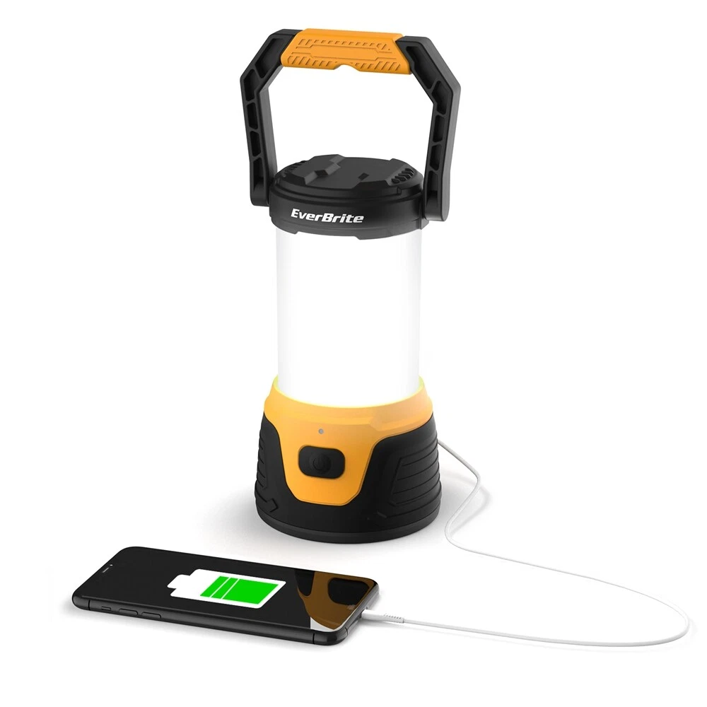 5 Lighting Mode& Memory Function : This EverBrite camping lantern has 5 lighting modes- low, med, high, eco, and strobe mode; Select the mode which you need by pressing the switch button, any mode lights more than 5 seconds can turn off the tent light directly by press the switch, and it will memorize the last lighting mode when next use. Super Bright& 360°Coverage : The Lantern Flashlight has built-in 20 LED light bulbs, with a brightness of up to 1000 lumen on high mode; This camping lantern provides all-around lighting for your camping, 360° lighting area! Rechargeable& Power Bank : The lantern comes with a USB and Type-c data cable; when you are outdoors, you can charge it by car or laptop's USB Port; Built-in 4.4 Ah Battery, 8 hours run time in low mode; You can also use it as a portable power bank for your phone or others electronic devices, that is so convenient for you outdoors or in other emergencies. Easy to Carry/ Use : Adopts comfortable handle material, convenient for portable use; The widened diameter of the base ensures stability when placing the camping lantern on a flat floor or table; You can also hang it where you need, it will provide 360° lighting coverage. High Practicability : This lantern flashlight is perfect for Hurricane Emergencies, Hiking, Camping, Home, and More; This light will burst with power when needed, and you can prepare one for future contingencies. (Note: Lantern doesn't light on while charging, please use it after charging) Product Dimensions 4.01"L x 4.01"W x 10.43"H Battery Description Lithium-Ion Item Weight 18.7 Ounces Mounting Type Tabletop Mount Number of Batteries 2 Lithium Ion batteries required. (included) Voltage 5 Volts Manufacturer HANGZHOU GREATSTAR INDUSTRIAL CO.,LTD Part Number 041030 Item Weight 1.17 pounds Country of Origin China Item model number E041030AB Batteries 2 Lithium Ion batteries required. (included) Area Lighting Classification IP44 Power Bank Function: It can charge your phone or other electronic devices in emergency. Brightness up to 1000 lumen, provides 360° lighting area! Convenient to use: Hanging/ Seated/ Portable 5 Lighting Modes- Low/ Med/ High/ Eco/ Strobe Built in 4.4 Ah Battery, 8 hours run time in the low mode