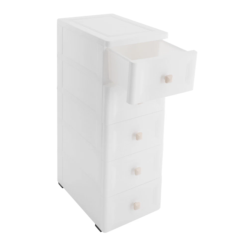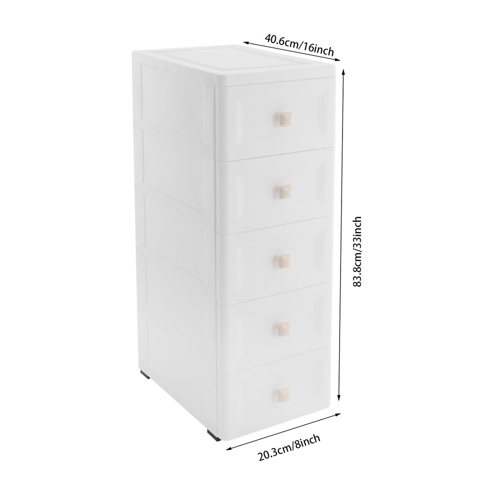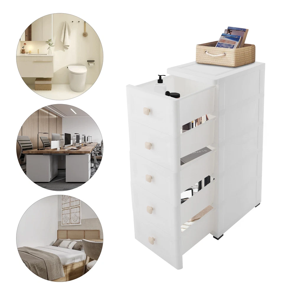 Have a nice day~ Description This 5-tier drawer storage organizer is built with premium materials for high sturdiness and durability. With its compact and smart design, it can utilize the narrow space in your home to keep kitchen spices, bathroom supplies, books, and documents, as well as living room sundries stored in an orderly manner. In addition, its minimalist modern style makes it not only practical but also aesthetically pleasing, making your home more organized and enhancing the overall beauty of your decor. Key Features Build to Last: The PP with frosted process is non-toxic , odorless , impact-resistant , and abrasion-resistant , which can protect the product from corrosion and enables the product to have a long service life and a good appearance. High Load Bearing: The thick panels and sturdy wheels provide the product with a sturdy construction to hold a weight of 22 lbs of each tier so that you can use it with more confidence. Excellent Organizer: It comes with five drawers, providing you with enough space to categorize and store your kitchenware, hygiene products, school books, tools, and other items, making your storage more organized and easier to find. In addition, the open platform at the top allows you to place potted plants, table lamps, photo frames and other decorative items, thus adding more attractive and small ingenuity to your room. Easy to Move: With four wheels, you can easily move the product and its inner items from one place to another, giving you great convenience on movement and floor-sweeping. Space Saving: The slim body(8-inch width) makes it easy to be placed in various narrow spaces, making full use of your home space. Clean with Ease: With a smooth surface and a simple structure, you can wipe it clean easily with a damp cloth. Ideal Gift: The modern style appearance and practical function make it an ideal housewarming gift for your friends, families, and colleagues. Buy with Confidence: We stand behind all our guests and look forward to assisting you with your purchase. It is our pleasure to answer your confusion and questions. The end of the story between us is not "we sell and you buy". Details Convenient Handles: The drawer handles allow you to easily pull the drawer out and access your items. Rounded Corners: They are smooth to the touch and can prevent your hands from scratching. Application The product is suitable for use in various places such as baby rooms, corridors, offices, kitchens, living rooms, bedrooms, study rooms, bathrooms, apartments, school dormitories, hotels, and so on. Specifications Color: White Material: PP Handle Shape: Square Process: Frosted Process Number of Tiers: 5 Mount Type: Free Standing Assembly Required: Yes Load Bearing Capacity(Each Tier): 10kg/22lbs Product Overall Size: 20.32*40.64*83.82cm/8*16*33in Package Size: 41*40*27cm/16.14*15.75*10.63in Gross Weight: 4.2kg/9.26lbs Net Weight: 4kg/8.82lbs Package Included 1* Drawer Storage Organizer 1* English Manual Other Needed Accessories Notes Please check the size carefully before ordering. Please use the product within its weight capacity to avoid damage. Please allow the slight color difference caused by the shooting light and 1-3cm error due to manual measurement, and make sure you do not mind before you order. Payment Delivery details Terms of sales About us Contact us Payment We accept ebay payment 。 Fees such as import duties, taxes are not included in the item price or shipping costs. These charges are the buyer's responsibility. Delivery details Shipping: 2-9 working days to: USA Terms of sales We maintain high standards of excellence and strive for hundred percent customer satisfaction. Feedback is very important to us. We hope that you contact us immediately before you give neutral or negative feedback, so that we can address your concerns. It is impossible to address issues if we do not know about them! About us Your satis faction is our ultimate goal. We work hard to earn your trust and future business. Our certified technicians have tested each item before shipping. The unit comes with 1 year limited warranty on all manufacturing defects. a) If you receive a defective item, you may return it or ask for a discount. Please contact us within 14 days after you receive the package. b) What you returned must be intact and in its original packaging as re? u. Customer is responsible for shipping costs of the returned item. c) We will cover the cost of shipping back t with the shipping rate indicated in the registration page. We will send you a new unit or refund the full payment you paid. Thank you. Contact us Business Hour Business Hour: Monday To Friday: 8:30 AM to 5:00 PM (Beijing China time) Due to time zones, our reply to your questions may not be immediately. But within above working time, we will reply your email within 24 hours. If it's non-workdays, please kindly be patient and wait till Monday. Please contact us with ebay message. Please feel free to contact us if you have any questions. Monday To Friday: 8:30 AM to 5:00 PM (Beijing China time) Due to time zones, our reply to your questions may not be immediately. But within above working time, we will reply your email within 24 hours. If it's non-workdays, please kindly be patient and wait till Monday. Please contact us with ebay message. Please feel free to contact us if you have any questions.