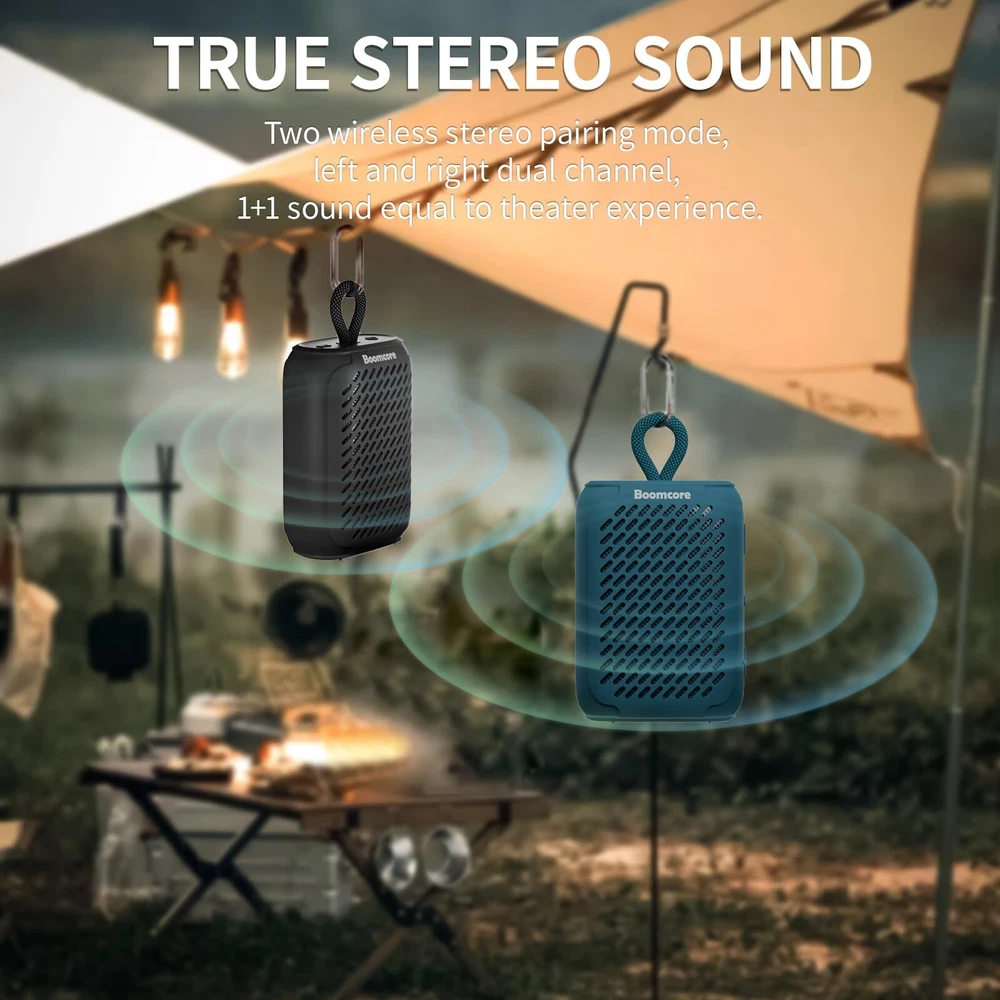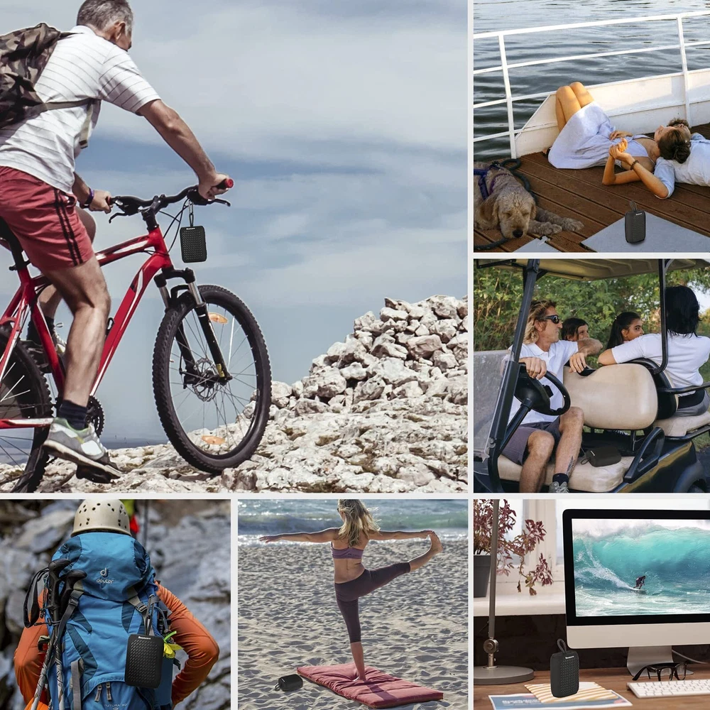 Music Anywhere, Anytime: The built-in 1800mAh rechargeable cell in the ultra portable Bluetooth speaker can provide up to 12 hours of playback at 50% volume on a single charge. Take your music with you wherever you go with portable Bluetooth speakers. It is perfect for outdoor events and adventures. Brilliant Music: The portable music speaker with Bluetooth has a 1.69-inch NdFeB driver, a symmetrical magnetic circuit with a bifilar coil and exclusive technology that produce incredible sound. The wireless Bluetooth speaker can be connected to phones, tablets, PCs, or any other Bluetooth device. Small Speaker, Big Audio: The portable Bluetooth speaker delivers surprisingly big audio and brilliant sound from its ultra-compact size. You can enjoy the surround stereo sound with 2 mini speakers by pairing the TWS function, it's an auditory experience that's truly unparalleled. Tough & Weather-Resistant: Engineered to handle rough use and adverse weather conditions, this waterproof speaker with rubber coating features an IPX7 rating for protection against water immersion. The waterproof small Bluetooth speaker with a carabiner clip is an ideal choice for outdoor events and is perfect for use at parties, pools, on the beach, while camping or hiking, and more. Advanced Safety Features: This portable hands-free music speaker is extremely safe, even when you use it when you take a shower, because it never overheats. Features a unique dynamic following voltage regulation technology to dynamically adjust according to the audio signal. This makes the small Bluetooth speaker a perfect gift for your family and friends, both indoors and outdoors.