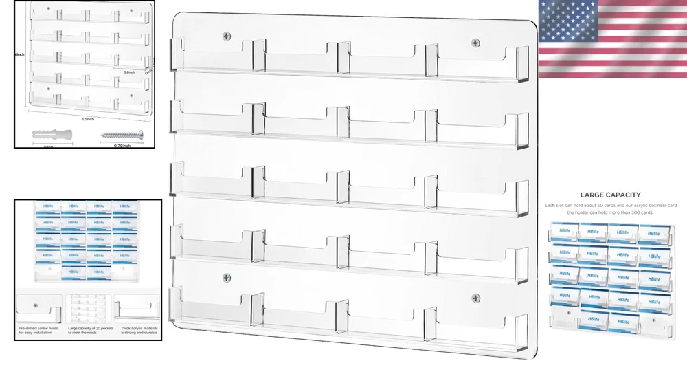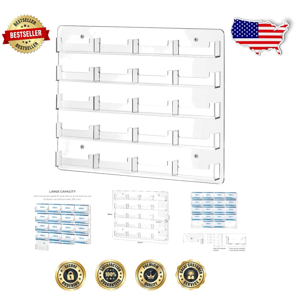Durable Wall-Mounted Business Card Holder with 20 Slots for Easy Access ‹ › ‹ › ‹ › ‹ › ‹ › ‹ › ‹ › ‹ › ‹ › Durable Wall-Mounted Business Card Holder Featuring 20 Slots for Easy Access , this elegant display unit is your key to showcasing professionalism with style. Key Features: Perfect Design: Designed to beautifully showcase and organize multiple business cards, gift cards, and brochures. Durable and High-Quality Acrylic: Crafted from clear acrylic for its visual appeal, offering a reliable display that won’t easily break or crack. Optimal Size: Each individual card pocket measures 3.7" × 1.2" × 1", providing ample space for your cards and brochures, perfectly suited for any office, reception area, or trade show. Ease of Organization: Multiple pockets allow for simple organization and quick access to essential cards and promotional materials, streamlining your networking and marketing efforts. Versatile and Professional: Ideal for business professionals, entrepreneurs, or salespersons, this clear acrylic holder enhances professionalism while being capable of displaying other items such as gift cards and brochures. Why Choose Our Business Card Holder? Are you looking to make a lasting impression in your professional environment? Our Durable Wall-Mounted Business Card Holder elevates your workspace while keeping your contact information organized and readily accessible. With its robust construction and elegant design, this card holder ensures that your promotional materials are always showcased in the best light. Transform your networking efforts with this stylish organizational tool—order your Durable Wall-Mounted Business Card Holder today! Shipping Free & Fast Shipping - We offer free shipping to most of the USA with a normal delivery time of 3-7 days. However, due to the current situation, additional delivery time (up to 3 weeks) may be required for some items. Alternative Carriers - We may use alternative carriers (e.g. USPS, FedEx, UPS, etc.) to ensure your package arrives safely and on time. Due to the use of multiple carriers, we are unable to provide a tracking number automatically. Handling Time - Orders are processed and shipped within 1-2 business days of receiving cleared payment. Shipping Restrictions - Shipping to Alaska, Hawaii, Puerto Rico, Guam, and other US territories may incur shipping charges or delivery restrictions. Please contact us before ordering, or your order can be refunded/cancelled. State Restrictions - There may be restrictions based on your state of purchase. For example, certain items may not be shipped to California due to state regulations. Contact for Tracking Updates - If you require tracking updates or have any concerns about the delivery of your order, please feel free to contact us, and we will be happy to assist you. Return 30-Day Hassle-Free Returns - We want you to be completely satisfied with your purchase. If you are not, you can return the item within 30 days of receiving it for a full refund or exchange. Easy Return Process - To start a return, simply contact us and we will provide you with a prepaid return shipping label and detailed instructions. Restocking Fee - There are no restocking fees for returns. However, the buyer is responsible for return shipping costs if the return is not due to a seller's error. Refund Processing Time - Refunds will be processed within 5 business days of receiving the returned item in its original condition. Payment We accept all major credit cards, PayPal, and Apple Pay for your convenience. Your payment information is secure and encrypted to ensure a safe and seamless transaction. Please complete your payment within 3 days of purchase to avoid any delays in shipping. Feedback Your feedback is extremely important to us. We strive to provide the best products and customer service possible. If you are satisfied with your purchase, please take a moment to leave us a positive review. If you have any concerns or issues with your order, please contact us before leaving negative feedback. We are committed to resolving any problems and ensuring your satisfaction. Contact Us If you have any questions or concerns, please feel free to reach out to our customer support team. You can contact us through the eBay messaging system. We are available Monday to Friday, 9:00 am to 5:00 pm EST, and we will do our best to respond to your inquiry within 24 hours. Buy it now and enjoy a pleasant shopping experience! UPC: Not Set Model: Not Set MPN: Not Set Brand: Unbranded Type: Business Card Holder Country/Region of Manufacture: Not Set