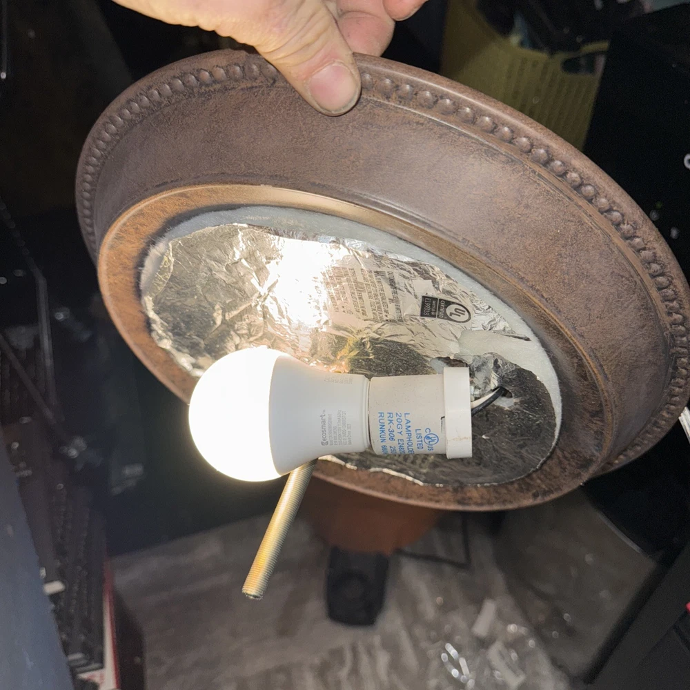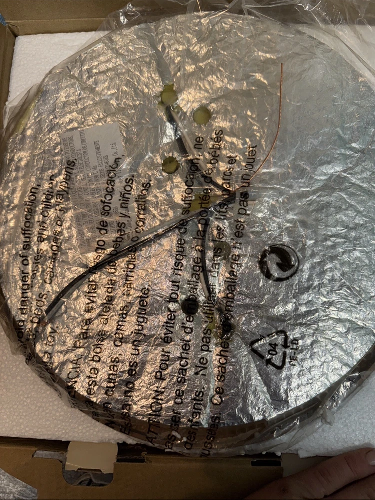 AI: Introducing a stunning flushmount ceiling fixture from Portfolio, perfect for adding a touch of rustic charm to your home decor. This light fixture features a bronze material and a brown color, with a diameter of 13 inches and a sensor type of light. It is hardwired for power source and supports halogen, LED, and compact fluorescent (CFL) light sources. The Portfolio flushmount ceiling fixture is designed in a traditional style and is suitable for use in a variety of settings. Its sensor technology ensures that the light is automatically turned on when the room gets dark, making it a convenient addition to any home. Upgrade your lighting with this beautiful flushmount ceiling fixture from Portfolio today! The box is open however all the comments inside the box are pretty much untouched. has all hardware and twist ties for the electrical. I like to take items completely out of the box and test them before I sell them just so I know they were.
