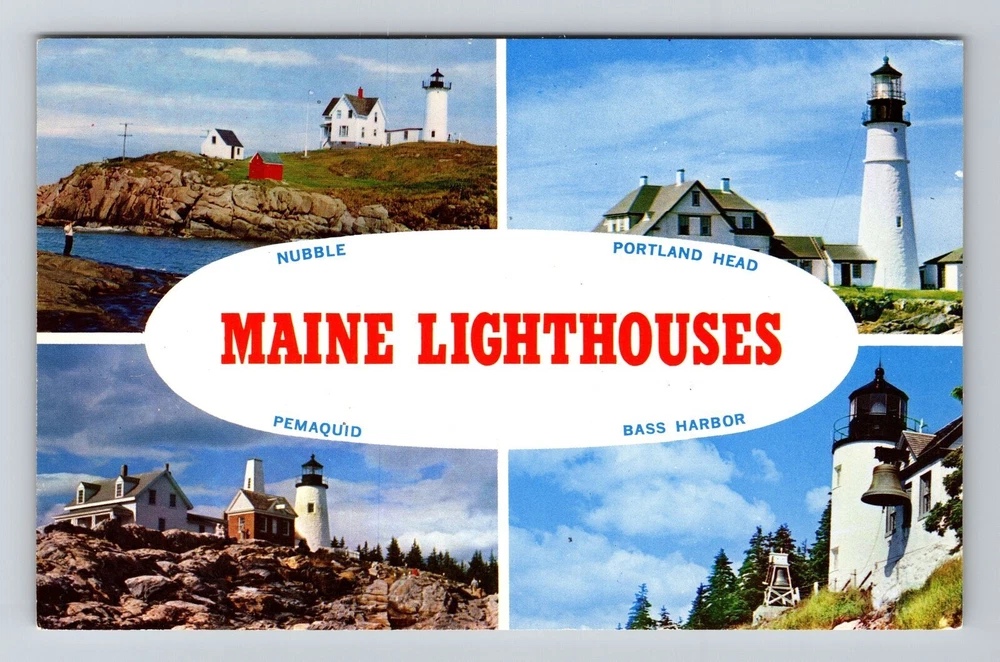 Portland ME-Maine, Scenic View Lighthouses, Vintage Postcard