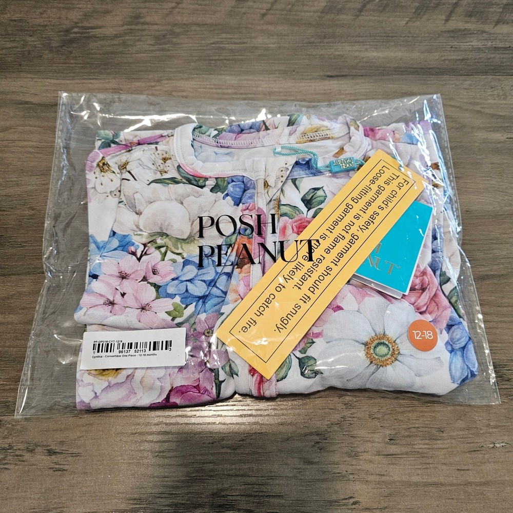 Posh Peanut Cynthia Convertible One Piece Baby 18-24 Mth Pink Floral Cottage -New with tags -ultra-soft Päpook® viscose from bamboo, it's breathable, lightweight, and tagless for sensitive skin. -With an easy 2-way zipper and convertible footies with designer grips for all peanuts Features: -2-way branded zipper -Convertible footies with designer grips -Tagless for sensitive skin -Not treated with flame retardants -95% Viscose from Bamboo, 5% Spandex Same day / next day shipping Offers accepted Like for price drops and deals Bundle 2 items or more and save! Thank you! 8oz 0170