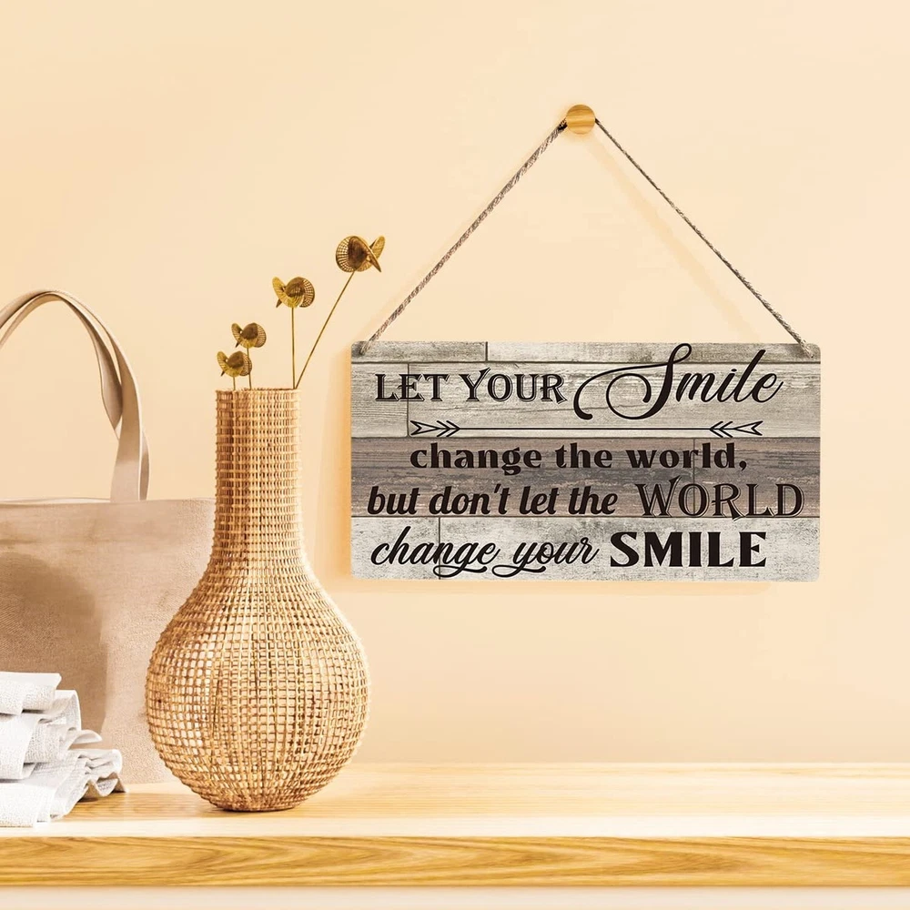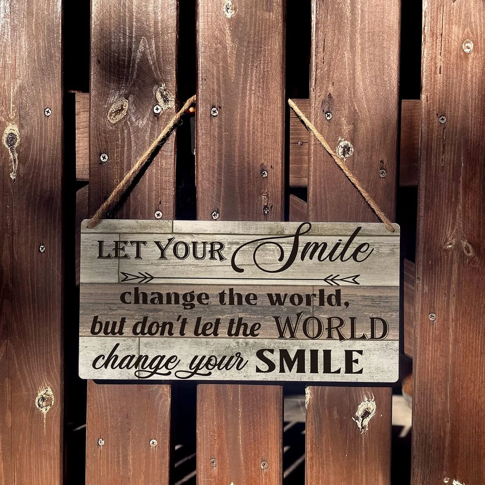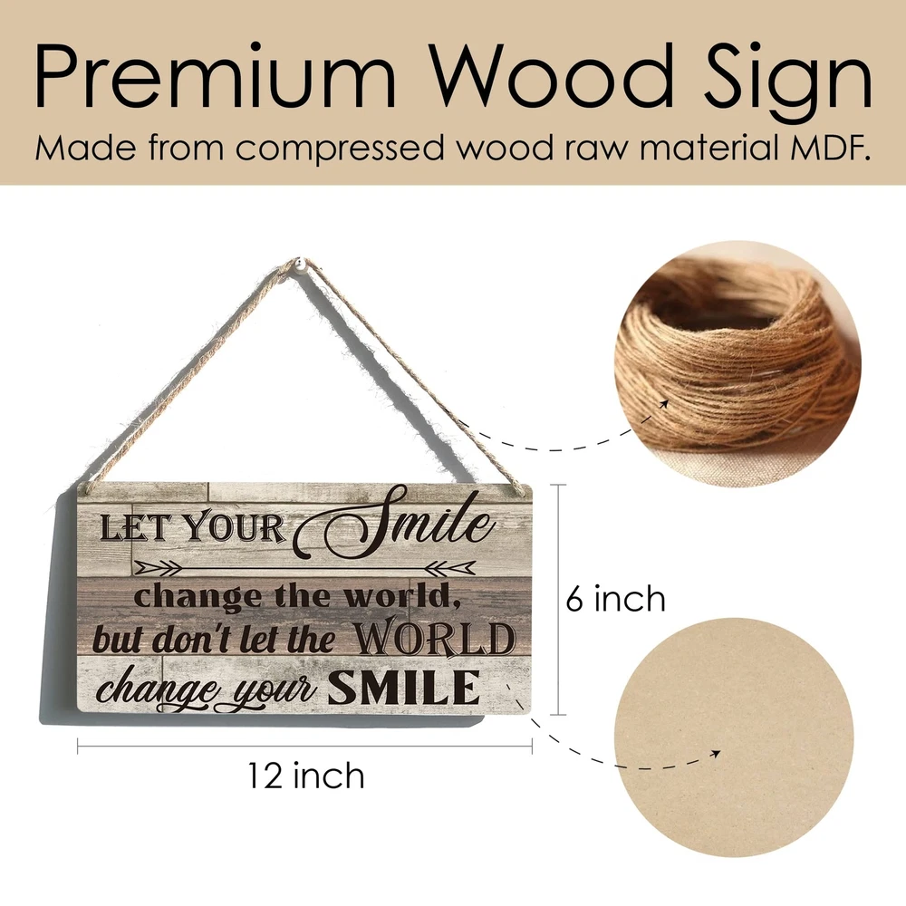 Positive Sign Farmhouse Let Your Happy Change The World Wooden Hanging Sign Rustic Retro Wall Art Decor Home Decoration 12 x 6 Inches Product Details Color: Keep happy Brand: Qious MPN: decorative plaque UPC: Does not apply EAN: Does not apply Color: Keep happy Brand: Qious Material: Engineered Wood, Wood, Ceramic Theme: Family Recommended Uses For Product: Office Mounting Type: Wall Mount Product Dimensions: 12"L x 6"W Shape: Rectangular Item Weight: 0.1 Kilograms Style: Versatile Pre-printed: Let Your Smile Change The World Included Components: Hanging holes and twine Item Weight: 3.52 ounces Manufacturer: Qious Country of Origin: China Item model number: decorative plaque Sign Size:Measures approximately 6"x12". Premium Wood Sign: Made from compressed wood raw material MDF. Each sign has 2 pre-cut hanging holes and a length of twine. It is an attractive and versatile country style. Easy Hanging: Installation is extremely easy. Comes with hanging holes and twine so it's ready to hang. Attractive Appearance: This meaningful decoration is suitable for someone who means something to you. Funny signs will make the recipient happy. Natural wood rustic sign, with excellent texture, can hang beautifully. For Gift Giving:Our wooden signs are the perfect gift for loved ones or as a special treat for yourself. It works great, looks great and adds fun to any space in the home, office, classroom, kitchen, bathroom, study, and more. For Gift Giving:Our wooden signs are the perfect gift for loved ones or as a special treat for yourself. It works great, looks great and adds fun to any space in the home, office, classroom, kitchen, bathroom, study, and more.