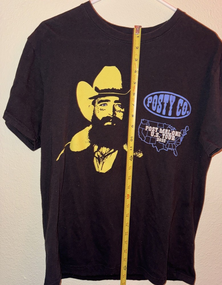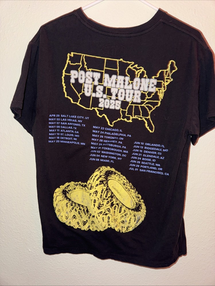 Post Malone U.S. Tour 2025 Official Posty Co. Black Tshirt Size Medium. tshirt may have loose threads or other signs of wear