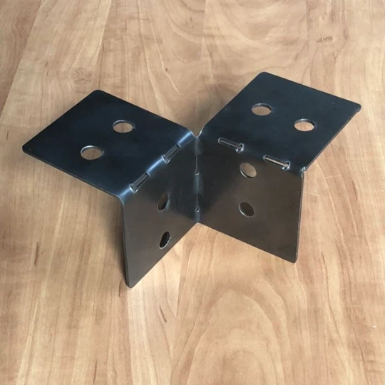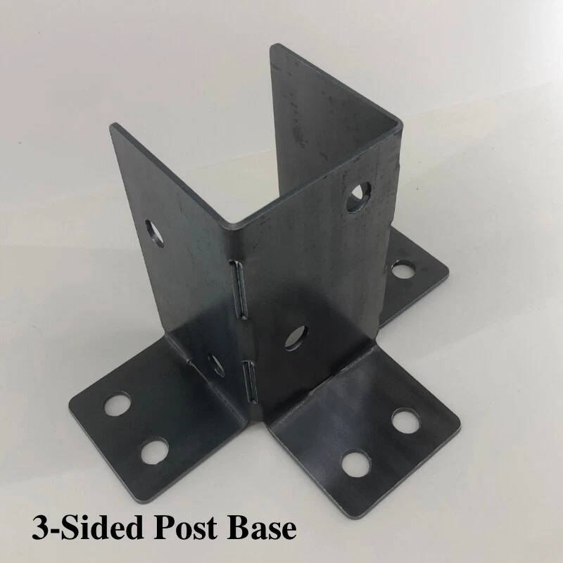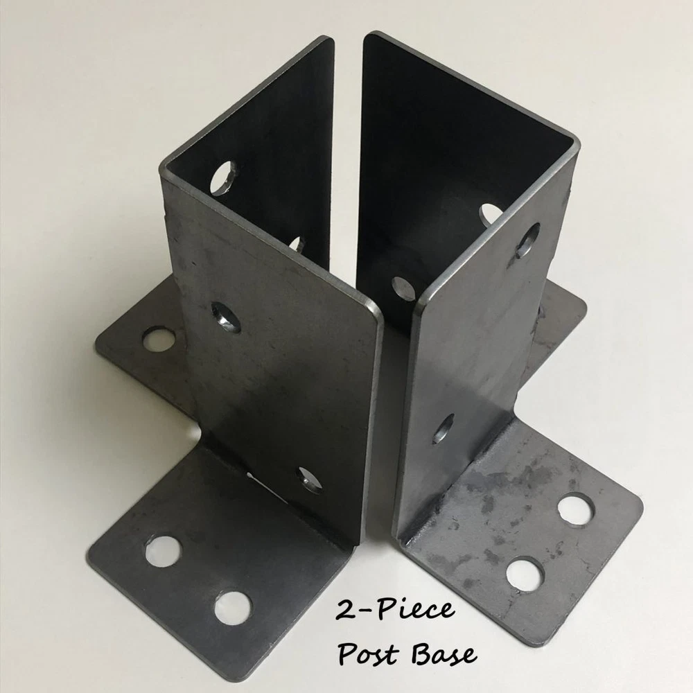 - - For 4x4 (3.5" x3.5") Posts & Beams - - For 4x4 (3.5" x3.5") Posts & Beams - - For 4x4 (3.5" x3.5") Posts & Beams - - Build your own rugged and heavy duty PostHugger™ Pergola, Double Pergola, shop/garage/CNC table, deck or even a wedding arch chuppah with our USA made 1/8" steel Outside Corner brackets and more! Also great for fixing/reinforcing the one you already have! These are not flimsy/bendable metal. We make them using 1/8" thick steel - a single corner bracket weighs just over 2 pounds - - strong enough to take what you throw at it, but not so heavy where they are hard to work with. These brackets are sold individually and are FOR USE WITH 4 x 4 POSTS AND BEAMS (3.5” x 3.5”). If you want the same thing, but for 6 x 6 Posts and Beams, click here https://www.ebay.com/itm/303622263446 NOTE: All our brackets are based on the dimensional size of the lumber but we can make them actual 4"x4" or 6"x6" for you, if needed. Just let us know your ship-to-zip code, the number of brackets and actual size(s) you would like, and we can let you know the total cost for custom brackets made to fit your saw-mill-cut posts. We get a lot of questions about how to build a double pergola (one with six legs) like you may have seen in one of our photos - they use the following: 4 Outside Corners 2 Flat T's 8 Bent L Inside Corners 6 Full Post Bases (or 6 of our Two-Piece Post Bases) Our brackets can be installed using any 1/2" wood lag screws or 1/2" thru bolts. If you use lag screws, we recommend at least 1/2" x 2" length. Bolts/lag screws are not included with our brackets; you can pick them up at your local Home Depot/Menard's/Lowe's/Ace Hardware store. Need a brackets kit set for a Single or Double Pergola build? Visit our posthugger.com website! Need a brackets kit set for Hexagon Pergola build, visit our eBay listing here: https://www.ebay.com/itm/303987843593 Our Individual PostHugger Brackets Product Line includes: Outside Corners- Used on outside corners to join/attach two incoming horizontal posts on top of an upright/vertical post. The holes line up with Bent L's if you want to use them on the inside. Bent L’s - Used as an inside corner, either alone or in conjunction with an Outside Corner to make a steel/post/steel sandwich for aesthetics and/or additional strength. The holes also line up with our Flat T's. Flat T Brackets - Used to join/attach two incoming horizontal posts which are resting on top of an upright/vertical post. The holes line up with the Bent L's in case you want to use them in making an inside corner on the opposite side of your Flat T. Double Inside Corners- The bottom part of this bracket attaches to the inside corner of an upright post, which then allows each ear on the top part of the bracket to go under horizontal posts coming in from the left and right sides. The holes are offset so that if used on the same post as an Outside Corner, they will not collide. Flat L’s - Used to join other parts of your design. Two Piece Post Base - Used to bolt a post to concrete or other suitable surface. If your post is going up against a wall or other flat surface which would interfere with having four feet, you will want to use either our Half-a-Post-Base, our 3-Sided Post Base (which has three feet) or our Full Post Base (which has just two feet) so that your post can be closer to a wall. Half a Post Base - This bracket is just one half of the Two Piece Post Base, for those who only need one (or another odd number). Three-Sided Post Base - Similar to our other Post Bases, but with three sides/feet. Full Post Base - Similar to our other Post Bases but with fours sides and just two feet (on opposite sides). Legless T™ - This bracket is the same dimensions & placement of bolt holes as the “T” - just without the bottom “leg” of the “T”! It measures 5.5" x 16.5" for a 6x6 post, and 3.5" x 10.25" for a 4x4 Post. Flat X™ Bracket - 90 degree cross angle brackets to provide extra, heavy duty support to new or existing DIY builds & structures. Flat Knee™ - This knee brace bracket sits flush against the outside of a knee joint. Bent Knee™ - This knee brace bracket is for use where you have a post coming in to meet another post at a 45° angle and want a bracket in the knee bend itself. Please note that unless you choose the powder coated option, these ship as raw, unpainted steel. You can either paint them the color of your choice, finish them with a clear coat, or allow to achieve a natural rust patina over time. ***Powder Coated Brackets: If ordering brackets in the black powder coat, please allow an additional 1-2 days for shipping & delivery.*** If you would like to see customer photos (and a video!) of some of our brackets in use, copy & paste the following link into your browser: https://posthugger.com/photos/ WHY BUY POSTHUGGER ™ ? • We are the original designer of these brackets, often copied by others but never equaled! • We use 1/8″ steel which is thicker than a Quarter and a Dime stacked on top of each other. • Unlike others who just cut and ship steel right off their table, we take the time to hand debur and wire brush both the inside and outside of every piece. • All powder coating is done in-house to ensure a quality application on each and every piece. • We use only 100% first-rate, high quality powders, which are all made in America. • We develop all designs ourselves and, unlike some, never poach the intellectual property of others. • We proudly stand behind all our products. • All our PostHugger ™ Brackets & metal artwork products are Made in America with American-Made Steel! © 2024 Thermo-Flex Technologies, Inc. - All Designs, Photos, and Text are the Intellectual Property of Shop Owner and are not to be copied without express written permission.