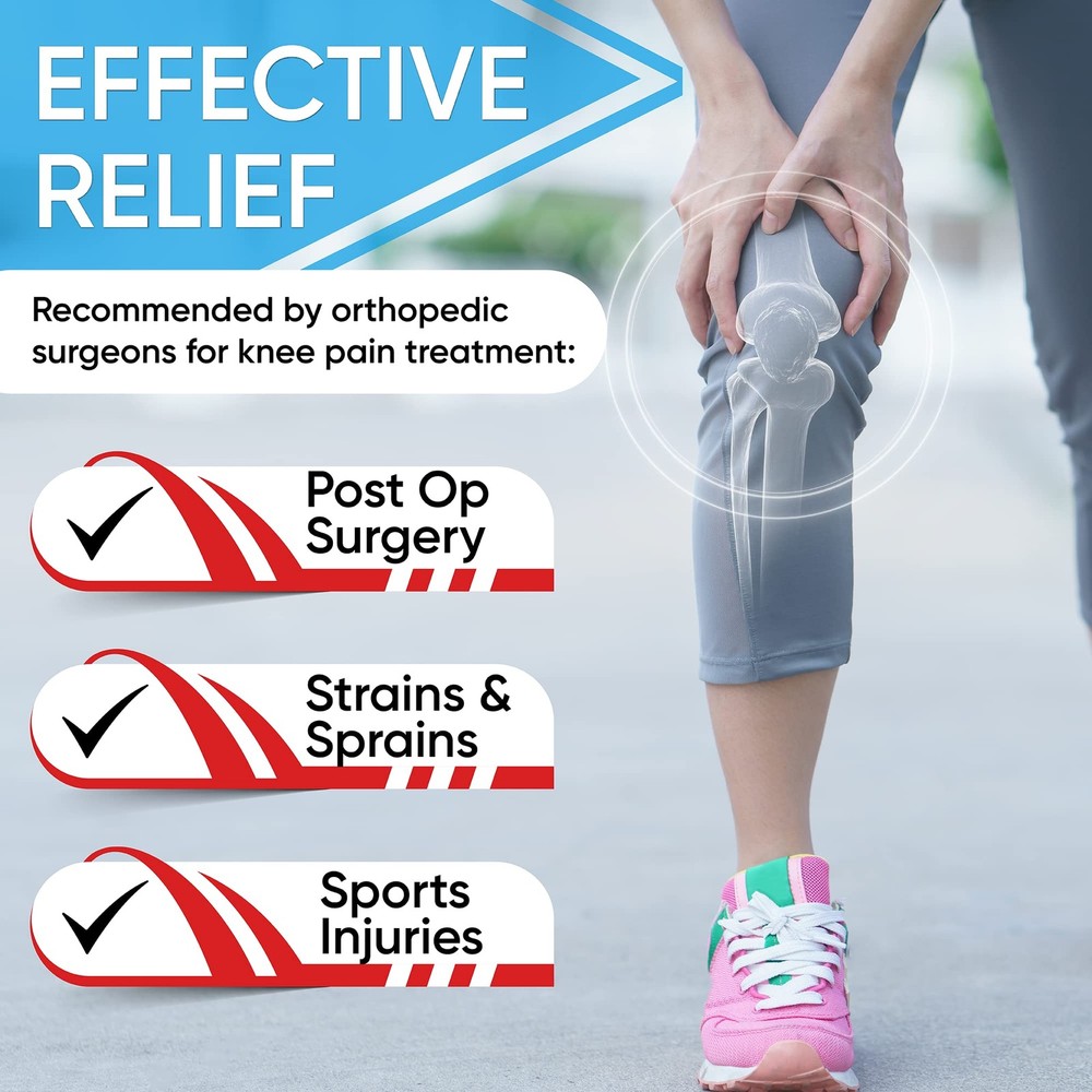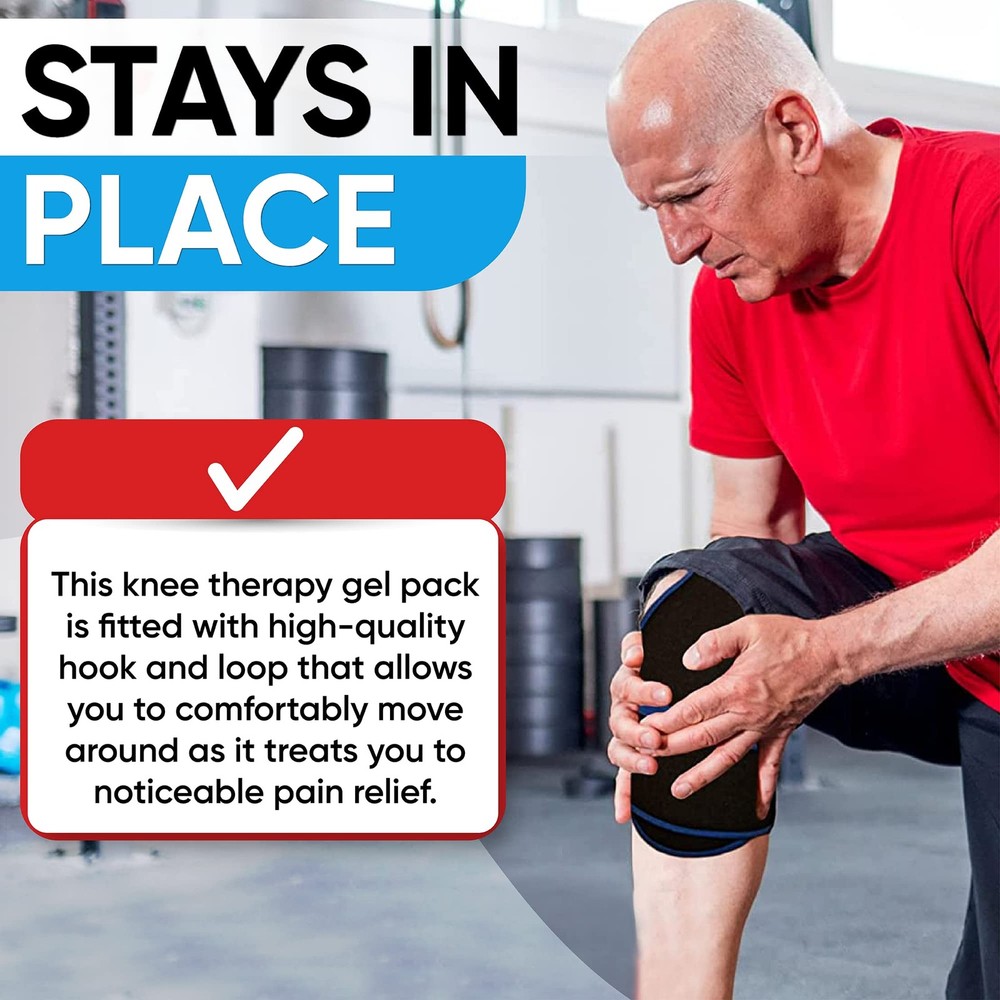 EFFECTIVELY PUT A STOP TO KNEE PAIN THAT MUCH FASTER Superior Results Whether you’ve sprained your knee, recovering from knee surgery, or looking to manage joint pain, The Pain Soother gives you noticeable relief much faster than other cold packs. Our gel knee brace takes a unique 3-pronged approach to managing knee pain by combining cold therapy, targeted air compression, and unmatched coverage of the affected area. Simply inflate the reusable gel pack using the included ball pump and stamp out knee pain and swelling more effectively and in a fraction of the time. Top of the Line Not all cold therapy packs are created equal. We’ve taken a premium approach when designing to create a product that actually does what it claims. Thanks to superior quality material, our cold pack stays perfectly cool for up to 2 hours after being placed in the freezer for 60-90 minutes. So you’ll enjoy hours of soothing relief to effectively manage knee pain. Don’t settle for ice pack wraps that quickly warm up in 30 minutes; invest in one you'll never have to replace again. Here are some of the benefits of : - Manages knee swelling, strains, and promotes recovery after surgery. - Gel remains flexible even when cold to allow for easy contouring. - Removable air pump allows for comfortable movement. - The leak-resistant material gives the wrap years of durability. - One-size-fits-all design comfortably fits most body sizes. Count on for a reusable cold compress wrap that actually gets the job done. Carefully crafted for targeted compression to the entire affected area, this is the best reusable cold pack for swelling and knee pain relief. Apply our inflatable knee brace to effectively manage strains, sprains, and sports injuries to the knee. See an instructional video on exactly how to work the wrap. The last picture on the listing is actually a video. If you still have questions, just contact us through Amazon and we can help. you further. Thousands of satisfied customers who discovered it's so worth the purchasse for their knee pain Stays in Place - This knee therapy gel pack is fitted with high-quality Velcro that allows you to comfortably move around as it treats you to noticeable pain relief. The one-size-fits-all design of the cold compress pack accommodates most body sizes, with the flexible gel perfectly contouring to the affected area even when cold. Durable and long lasting.
