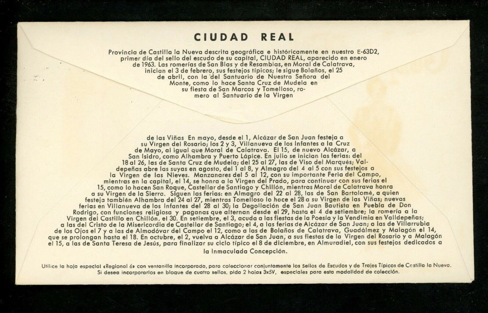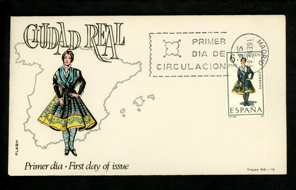 Postal History Spain FDC #1404 Regional Costumes dress Ciudad Real 1968