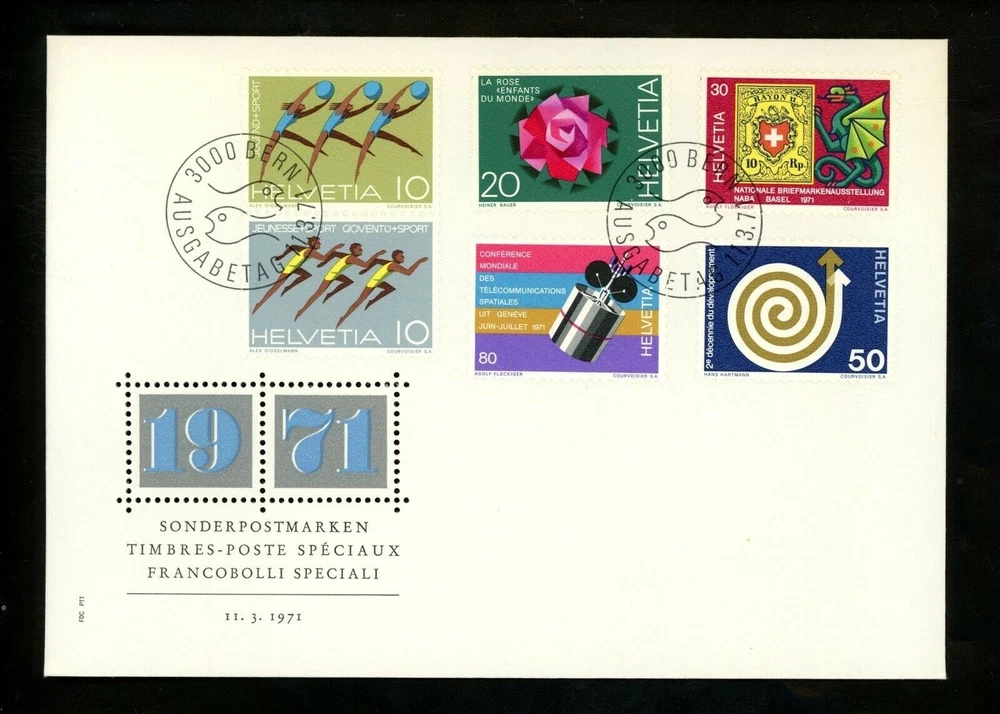 Postal History Switzerland FDC #524-529 Sports gymnastics rose space 1971