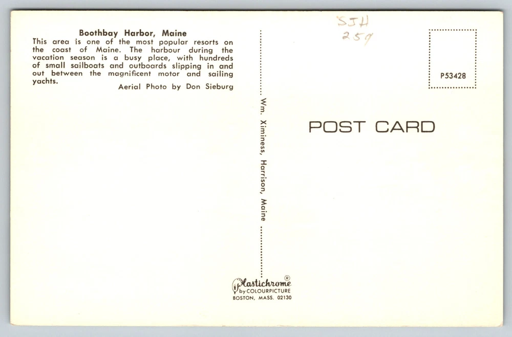 Postcard Aerial View Of Boothbay Harbor, Maine Please refer to the scans/pictures for the postcard's condition. The condition of the postcard is normal for the age of the card. There could be some yellow/tanning, creases and edge dents, or edge/corner wear and other wear. The postcard could have some writing on the front and/or back. Detailed scans/pictures are of the front and of the back. Please refer to the scans/pictures for more details on the postcard's condition. If you have any questions about this postcard, please feel free to contact me