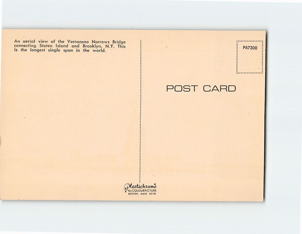 Postcard with image An Aerial View of the Verrazano Narrows Bridge New York USA H-34530 Postcards from various collections, many used with visible wear. See pictures for condition. Scans show the actual card; minor scanner lines may appear but are not on the card. Verify your invoice before paying. If shipping charges are incorrect, email me for assistance. We ship daily via USPS from a rural area, which may cause slight delivery delays. U.S. orders use eBay Standard Envelope with limited tracking. International orders use stamped mail without tracking. Items ship the next business day. Delivery times may vary during peak seasons.