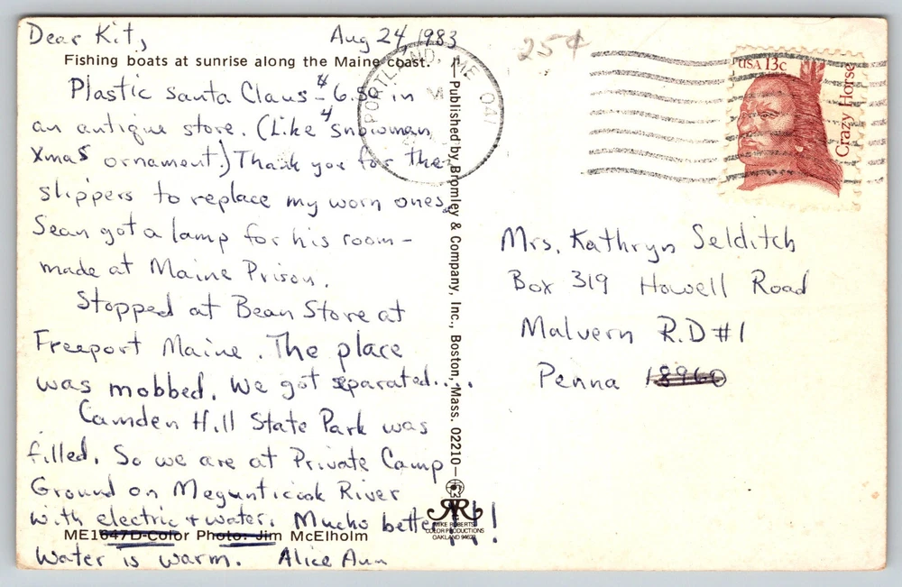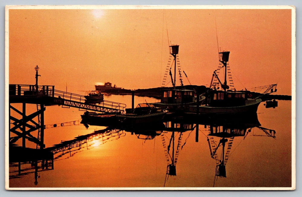 Postcard Fishing Boats At Sunrise Along The Maine Coast Please refer to the scans/pictures for the postcard's condition. The condition of the postcard is normal for the age of the card. There could be some yellow/tanning, creases and edge dents, or edge/corner wear and other wear. The postcard could have some writing on the front and/or back. Detailed scans/pictures are of the front and of the back. Please refer to the scans/pictures for more details on the postcard's condition. If you have any questions about this postcard, please feel free to contact me