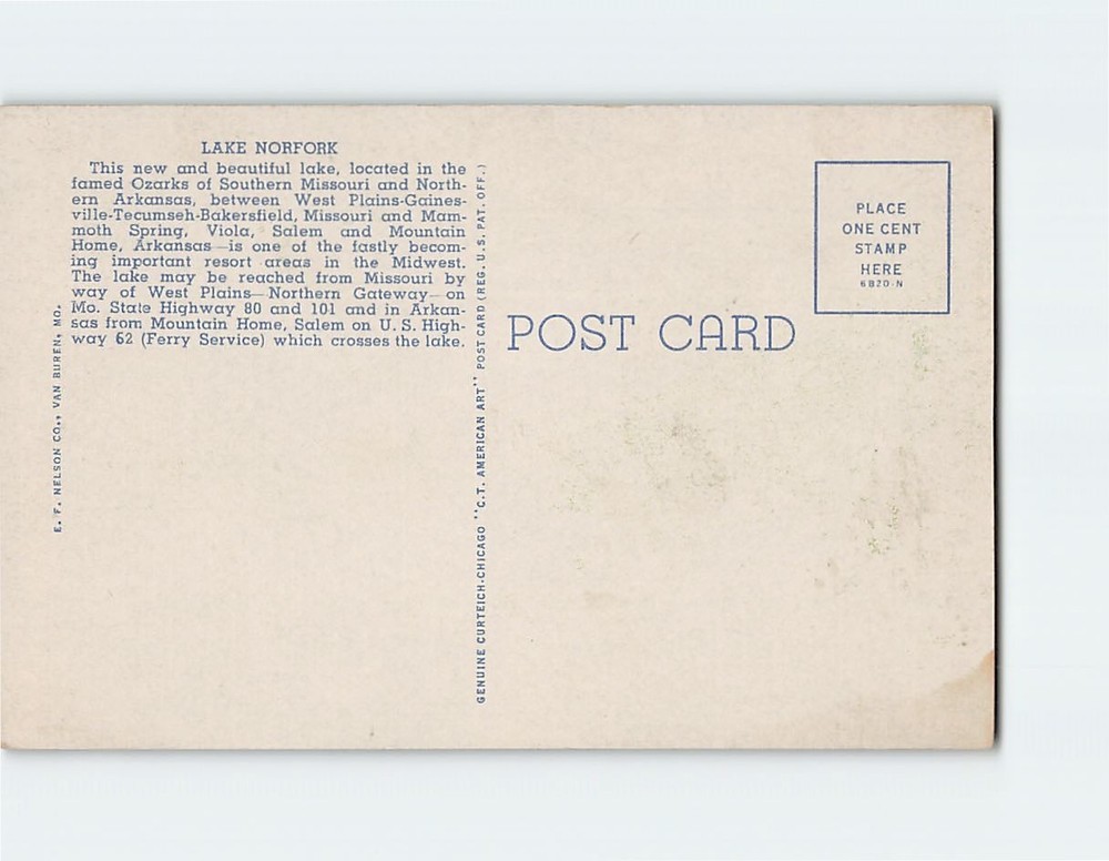 Postcard with image Lake Norfork Missouri-Arkansas USA H-19319 Postcards from various collections, many used with visible wear. See pictures for condition. Scans show the actual card; minor scanner lines may appear but are not on the card. Verify your invoice before paying. If shipping charges are incorrect, email me for assistance. We ship daily via USPS from a rural area, which may cause slight delivery delays. U.S. orders use eBay Standard Envelope with limited tracking. International orders use stamped mail without tracking. Items ship the next business day. Delivery times may vary during peak seasons.