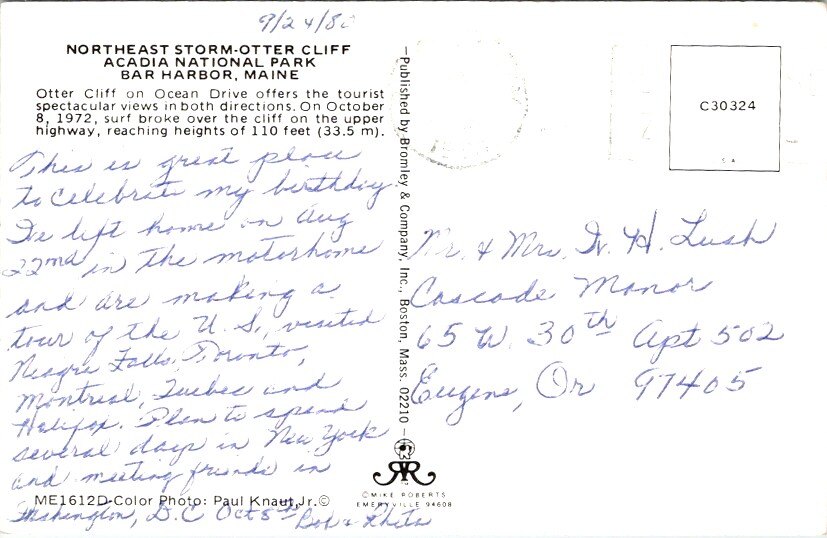Vintage Postcard Northeast Storm Otter Cliff Acadia National Park Bar Harbor Maine ME 1980 S477