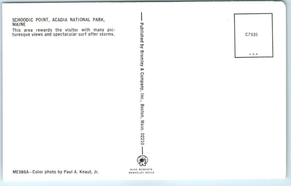 Postcard - Schoodic Point, Acadia National Park, Mount Desert Island - Maine P-55381 Postcards from various collections. Many used and most show signs of use. see pictures for details on condition. To get combined shipping rate items must be paid for at the same time. Please verify your invoice is correct before you pay. If shipping charges or anything else is not correct please email me so I can try to assist before you pay. Once paid for I am not able to add additional items to the combined shipping. We ship using US Mail, Items are packed and shipped by the next business day. Speed of delivery may take longer during peak shipping seasons. --- Important please read below Postcards from various collections, many used with visible wear. See pictures for condition. Scans show the actual card; minor scanner lines may appear but are not on the card. Verify your invoice before paying. If shipping charges are incorrect, email me for assistance. We ship daily via USPS from a rural area, which may cause slight delivery delays. U.S. orders use eBay Standard Envelope with limited tracking. International orders use stamped mail without tracking. Items ship the next business day. Delivery times may vary during peak seasons.