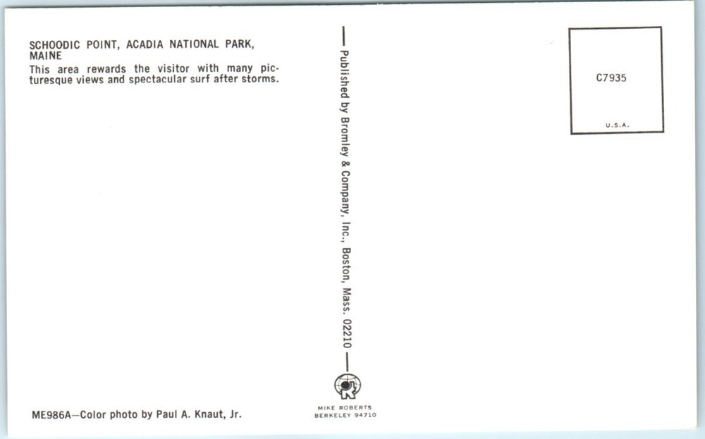 Postcard - Schoodic Point, Acadia National park, Mt. Desert Island, Maine, USA P-80165 Postcards from various collections. Many used and most show signs of use. see pictures for details on condition. To get combined shipping rate items must be paid for at the same time. Please verify your invoice is correct before you pay. If shipping charges or anything else is not correct please email me so I can try to assist before you pay. Once paid for I am not able to add additional items to the combined shipping. We ship using US Mail, Items are packed and shipped by the next business day. Speed of delivery may take longer during peak shipping seasons. --- Important please read below Postcards from various collections, many used with visible wear. See pictures for condition. Scans show the actual card; minor scanner lines may appear but are not on the card. Verify your invoice before paying. If shipping charges are incorrect, email me for assistance. We ship daily via USPS from a rural area, which may cause slight delivery delays. U.S. orders use eBay Standard Envelope with limited tracking. International orders use stamped mail without tracking. Items ship the next business day. Delivery times may vary during peak seasons.