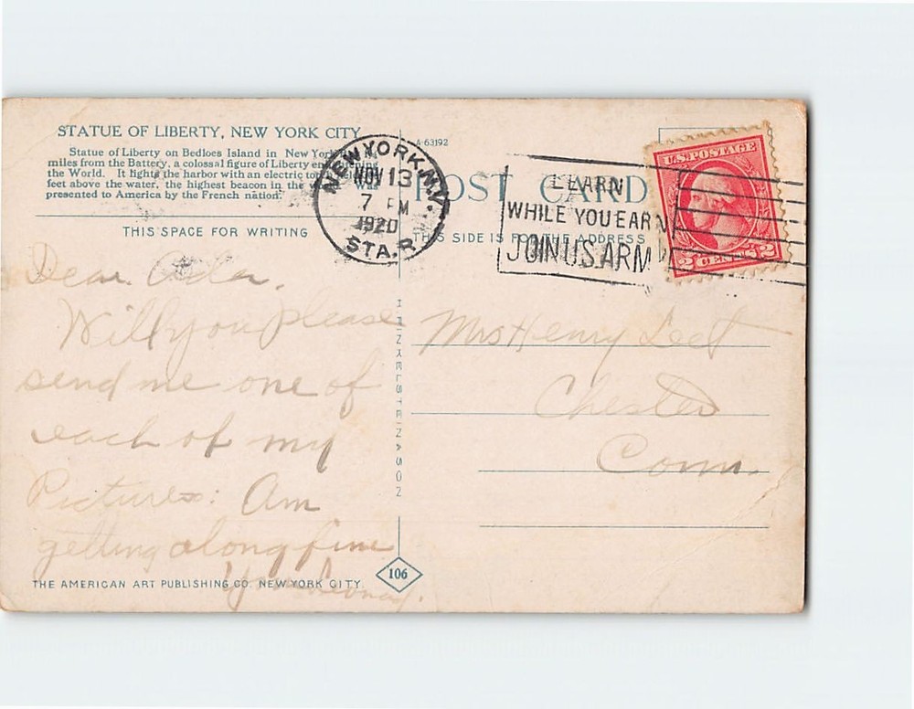 Postcard with image Statue of Liberty NYC New York City USA North America Postcards from various collections, many used with visible wear. See pictures for condition. Scans show the actual card; minor scanner lines may appear but are not on the card. Verify your invoice before paying. If shipping charges are incorrect, email me for assistance. We ship daily via USPS from a rural area, which may cause slight delivery delays. U.S. orders use eBay Standard Envelope with limited tracking. International orders use stamped mail without tracking. Items ship the next business day. Delivery times may vary during peak seasons.