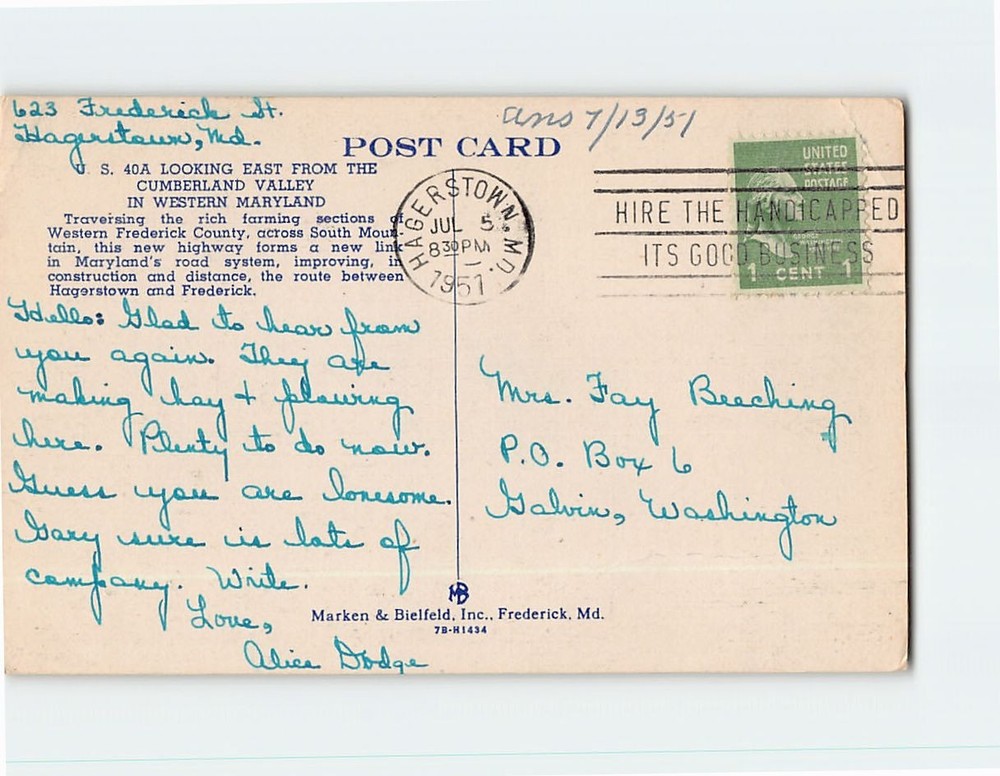 Postcard with image US 40A Looking East From The Cumberland Valley In Western Maryland USA H-27078 Postcards from various collections, many used with visible wear. See pictures for condition. Scans show the actual card; minor scanner lines may appear but are not on the card. Verify your invoice before paying. If shipping charges are incorrect, email me for assistance. We ship daily via USPS from a rural area, which may cause slight delivery delays. U.S. orders use eBay Standard Envelope with limited tracking. International orders use stamped mail without tracking. Items ship the next business day. Delivery times may vary during peak seasons.