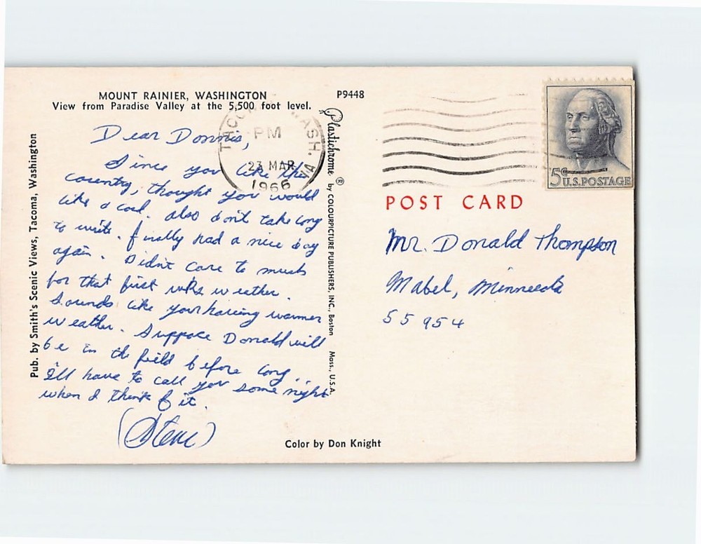 Postcard with image View from Paradise Valley Mount Rainier Greetings From Washington USA H-34591 Postcards from various collections, many used with visible wear. See pictures for condition. Scans show the actual card; minor scanner lines may appear but are not on the card. Verify your invoice before paying. If shipping charges are incorrect, email me for assistance. We ship daily via USPS from a rural area, which may cause slight delivery delays. U.S. orders use eBay Standard Envelope with limited tracking. International orders use stamped mail without tracking. Items ship the next business day. Delivery times may vary during peak seasons.