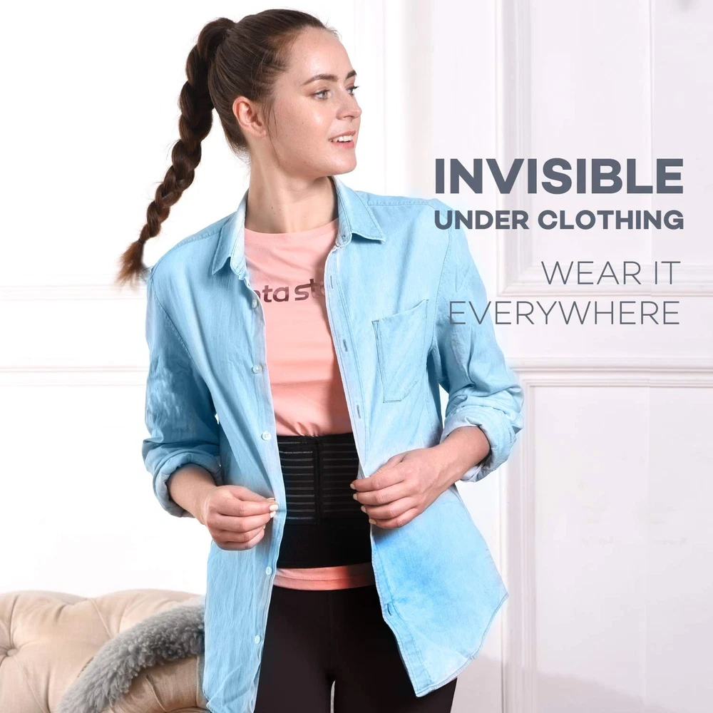 A healthy back is the foundation of active life! Whether you are recovering from back injury or trying to prevent one, back support is your best choice. Integrating unique design with superior materials, our back brace provides added support and comfort for daily wearing. Fitting Instructions: 1)Unfasten all hook-and-loop straps that may be adhered to each other. 2)Place the posture corrector over your back and feed each arm through the corresponding shoulder strap like wearing a backpack. 3)While leaning slightly forward, center the brace against your back. Position the vertical stays evenly on each side of your spine and ensure that they are resting flatly against your back. 4)Fasten the large elastic waist strap at the front. Be sure not to over tighten. 5)Sit up in the proper posture position, tighten the shoulder straps and secure them on the large elastic waist strap by using the hook-and-loop straps. Make sure the two shoulder straps are evenly distributed. 6)Pull and secure the smaller waist straps to provide additional support and added comfort. Care Instructions: · Hand wash · Line dry in shade · Do not bleach · Do not iron · Do not dry clean · Do not tumble dry POSTURE CORRECTOR : Highly recommended by health professions, our premium full back brace can prevent and reduce scoliosis and back pain as well as correct slouching hunchback and spinal curvature for better postures STRONG SUPPORT : Crafted with two flexible metal stays and straps that wrap over your shoulders and around your back for added support, this TLSO back brace vest provides 3-in-1 support for your upper back, lower back and abdomen to relieve back, neck and shoulder pain caused by poor postures ULTRA COMFORTABLE : Secured on the hook-and-loop elastic waist strap, the shoulder strap stays right into place without slipping forward putting unnecessary pressure on your neck or digging into your armpits. Made with breathable and plush cotton lining, the spine corrector provides added comfort during extended use sessions ALWAYS SHOW YOUR BEST : The back support belt fits tightly on your back, you can wear it under your clothes unnoticeably. Always in your best posture with a straight back and flat stomach EASY TO USE : Ergonomically crafted with adjustable straps, this back upright trainer fits men and women with different sizes. Simply pull or release the hook-and-loop straps for a snug fit and your best posture