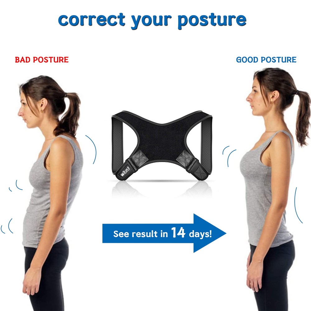 WZCPCV Posture Corrector Brace is made of strong but lightweight elastic materials, Posture Corrector Brace has skin-friendly, soft, breathable and comfortable properties which is suitable for all seasons. You can wear Back Support Straightener under your clothes in hot summer or cold winter.. You can wear it anytime, anywhere, because Back Support Straightener is completely seamless under your clothes.Whether you are at work, at home, walking, yoga, biking, driving, cooking, reading and other activities, this Posture Corrector Brace will make you always feel comfortable.The posture correctors also come with two cushion pads to ease armpit discomfort How long do I need to use the posture corrector brace? We suggest using it for 40 minutes at the first time. Once you are comfortable wearing the brace for 30-40 minutes at a time, begin to progressively extend the time by 5-10 minutes. Product weight: 160g Recommended bust: 60-120cm/23.62-47.24inch Material: Nylon, Polyester, Polyurethane, Rubber Please do not cut the product by yourself. If you feel pain at any time, loosen the harness. Stop use immediately if pain persists or if you feel numbness and swelling. Feature: WZCPCV Posture Corrector Brace For Women Men,Back Support Straightener with Adjustable Shoulder Braces,Corrects Hunching&Bad Posture&Shoulder Neck Pain Posture Corrector Brace use breathable, light weight and skin friendly fabric which is suitable for all seasons. The ergonomic design molds makes you comfortable and charming on your body. Our Posture Corrector Bracer unlike regular posture correctors that are very rigid and restrict arms movement by forcing you into one position,this posture corrector is one of the best posture devices, allowing free movement,with soft,padded straps and breathable fabric. Posture related back problems are the third leading reason for all doctors visits. Usually, your back pain has been caused by your incorrect posture. Our back posture corrector brace naturally relieves back, shoulder and neck pain by optimizing your standing and sitting posture. Back Support Straightener straightens you to your full height and it’s healthier to be slim. If you wear our posture corrector brace, you'll be 3-5 centimeters taller than before. You can get it on and off in seconds by yourself.