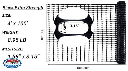 PotatoLife Plastic Mesh Fence, Extra Strength 4'x100' Roll with 50 Zip Ties, Resuable Temporary Netting for Garden Fencing, Snow Fencing, Animal Barrier, Poultry, Deer, Dog, Construction, Black Features Versatile Applications: The PotatoLife plastic mesh fence offers unparalleled flexibility, making it suitable for a variety of uses, including garden fencing, animal barriers, poultry netting, construction safety fencing, pool enclosures, and more. Its versatility ensures it's a practical choice for temporary outdoor fencing needs. Enhanced Strength & Lightweight Design: Crafted from UV-resistant plastic materials with additional stretching, this fence boasts significantly higher strength compared to standard plastic fences while remaining lightweight for easy handling. Effortless Installation & Removal: Designed with user convenience in mind, the PotatoLife fence can be easily attached to posts, stakes, or trees. When no longer needed, simply dismantle, roll it up, and store it for future use. Say goodbye to complex setups and hello to a time-saving, hassle-free solution. Complete Combo Package: Each package includes 50 zip ties for secure installation and a pair of gloves for safe and comfortable handling. Stakes and staples are not included. Customizable Dimensions: Easily tailored to your specific needs, the mesh can be cut to the desired size using scissors or a utility knife. The edges remain smooth after cutting, ensuring a clean and safe finish. Shipping Free & Fast Shipping: We offer free shipping to most of the USA with a normal delivery time of 3-7 days. However, due to the current situation, additional delivery time (up to 3 weeks) may be required for some items. Alternative Carriers: We may use alternative carriers (e.g., USPS, FedEx, UPS) to ensure your package arrives safely and on time. Due to the use of multiple carriers, we are unable to provide a tracking number automatically. Handling Time: Orders are processed and shipped within 1-2 business days of receiving cleared payment. Shipping Restrictions: Shipping to Alaska, Hawaii, Puerto Rico, Guam, and other US territories may incur shipping charges or delivery restrictions. Please contact us before ordering, or your order can be refunded/cancelled. State Restrictions: Certain items may not be shipped to California due to state regulations. Contact for Tracking Updates: If you require tracking updates or have any concerns about the delivery of your order, please feel free to contact us, and we will be happy to assist you. Return Policy 30-Day Hassle-Free Returns: If you are not completely satisfied with your purchase, you can return the item for free within 30 days of receiving it for a full refund or exchange. Easy Return Process: Contact us, and we will provide you with a prepaid return shipping label and detailed instructions. No Restocking Fee: There are no restocking fees for returns. However, the buyer is responsible for return shipping costs if the return is not due to a seller"s error. Refund Processing: Refunds will be processed within 1 business day of receiving the returned item in its original condition. Feedback Your feedback is extremely important to us. We strive to provide the best products and customer service possible. If you are satisfied with your purchase, please take a moment to leave us a positive review. If you have any concerns or issues with your order, please contact us before leaving negative feedback. We are committed to resolving any problems and ensuring your satisfaction. Contact Us If you have any questions or concerns, please feel free to reach out to our customer support team. You can contact us through the eBay messaging system. We are available Monday to Friday, 9:00 am to 5:00 pm EST, and we will do our best to respond to your inquiry within 24 hours. Thank you for supporting our small family business!