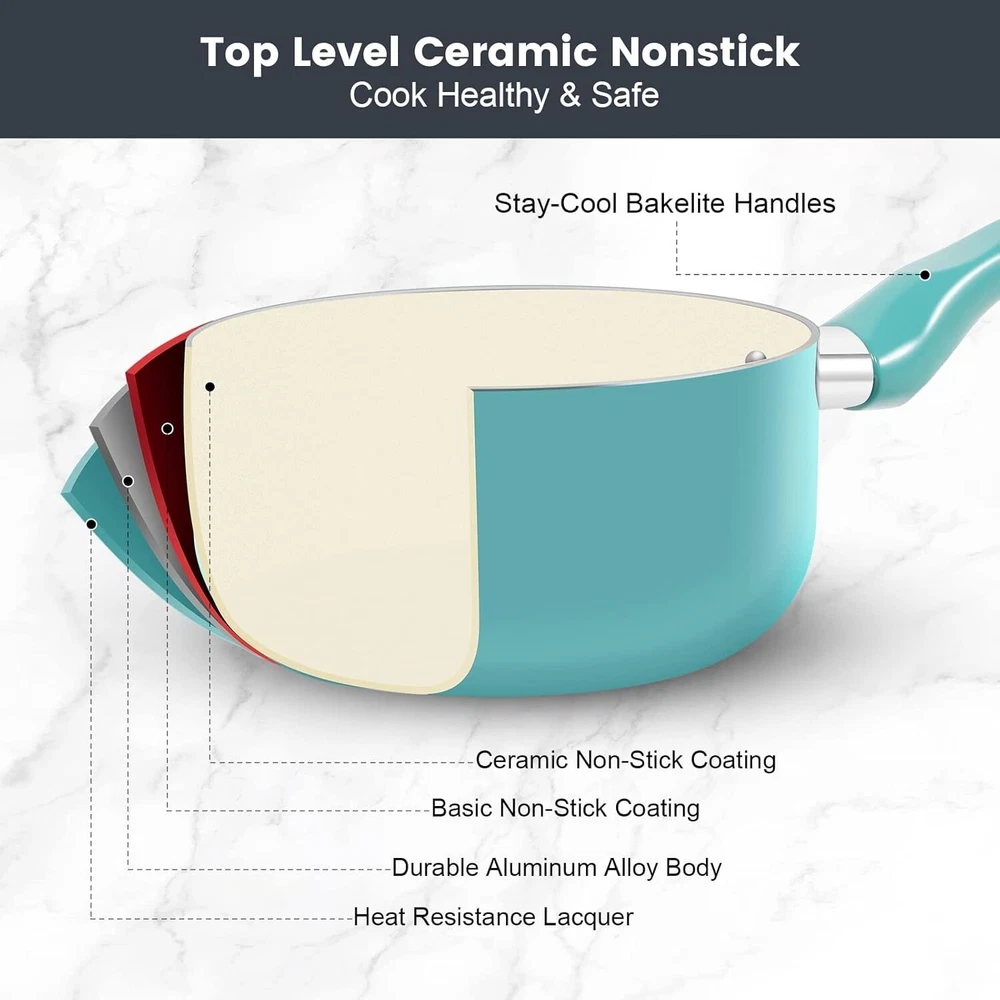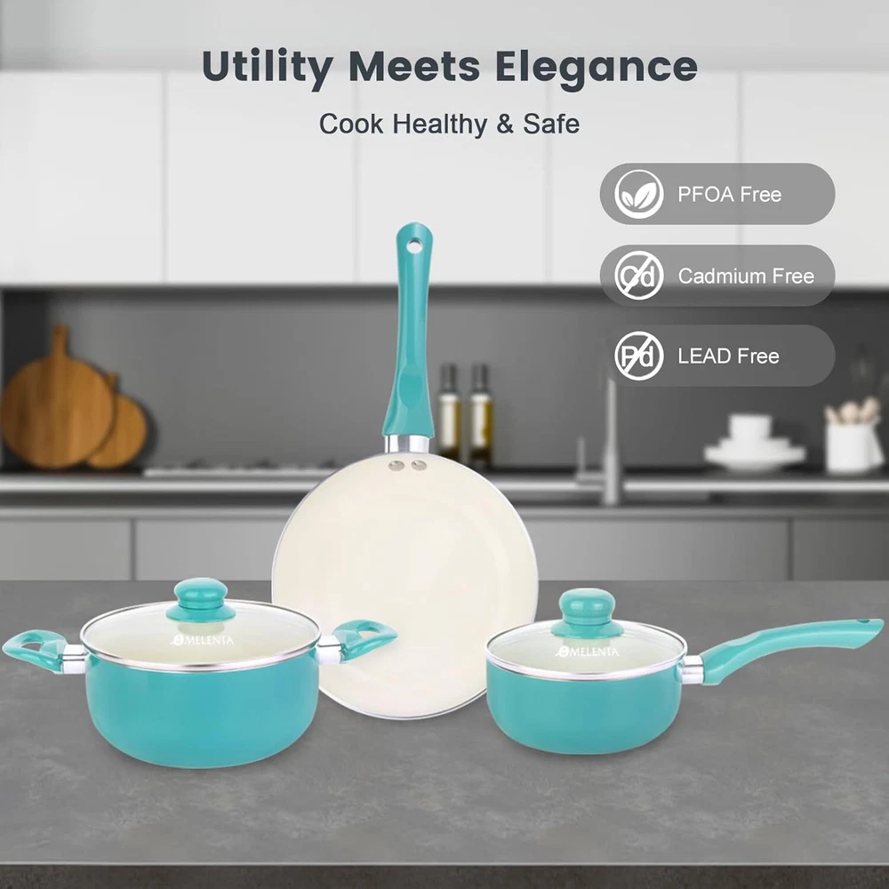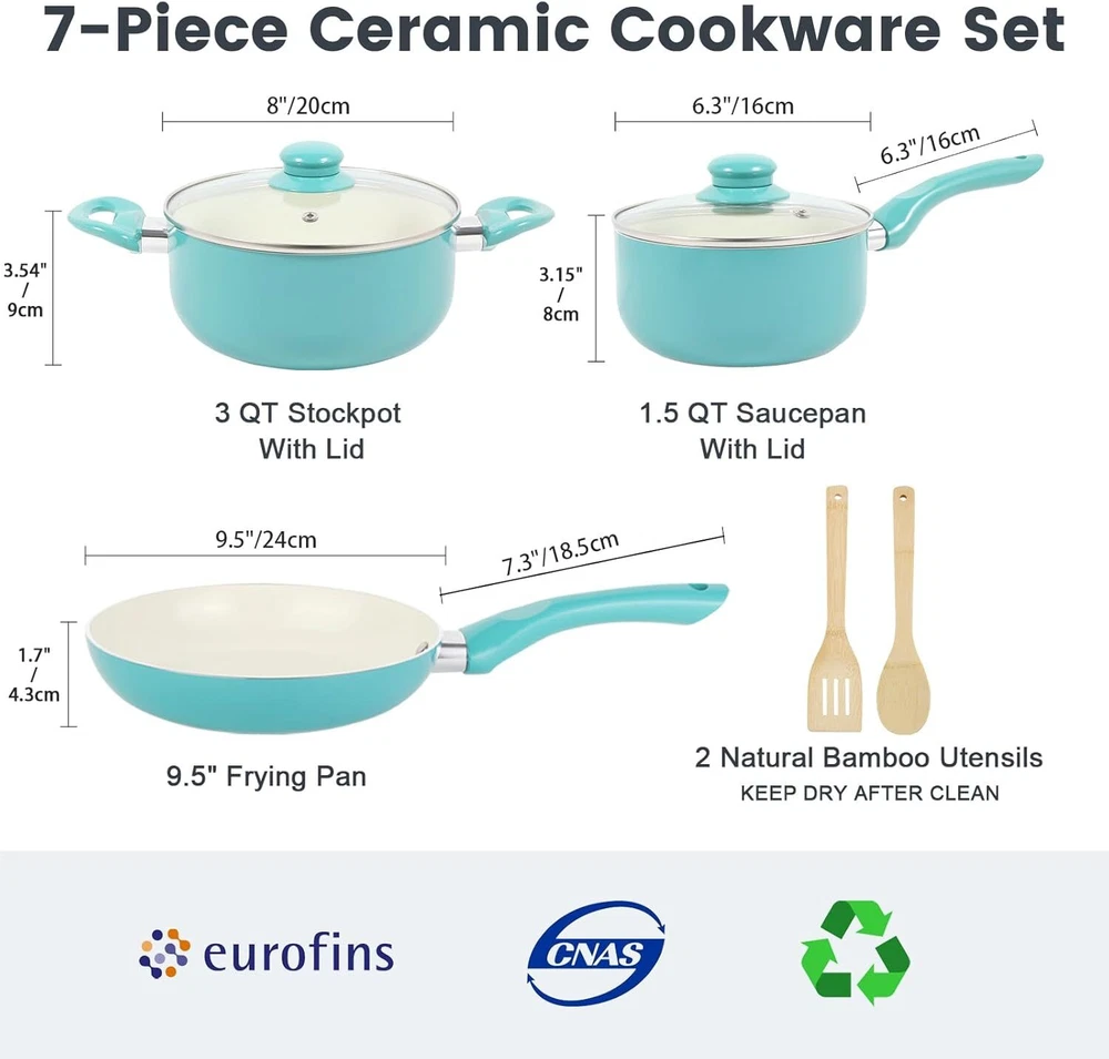 【Stay Cool Bakelite Handles】This nonstick cookware set is equipped with ergonomic bakelite handle, featuring non-slip, heat-resistant and easy-to-grip. Durable glass lids with steam vent for a clear view on food while cooking. Clean up is quick & easy, you only need to rinse or wipe with a damp paper towel 【Quick & Even Heating】This non toxic cookware set is crafted from heavy-duty aluminum, heats up quickly and evenly. Low or medium heat is recommended. Food just slides right off the pan, requiring minimal oil for healthier cooking. High magnetic conductive steel base is compatible with all cooktops including induction, gas, electric, ceramic and so on 【7-Piece Cookware Set】M MELENTA offers high quality kitchen pots and pans set without assembly: 9.5" non stick frying pans, 2 piece saucepan set including 1.5 quart sauce pan with lid and 3 quart casserole pot with lid, 2 natural bamboo kitchen utensils. Perfect pot and pan set nonstick combines versatile cooking options with a commitment to health 【Healthy Nonstick Ceramic Cookware】M MELENTA pots and pans set non stick features long-lasting ceramic nonstick coating, makes cooking an enjoyable thing and cleaning a breeze. EUROFIN approved, 100% free of PTFE/ PFOA/lead/cadmium. Enjoy healthier and easier cooking with our ceramic pots and pans set nonstick On Dec 12, 2024 at 18:29:57 PST, seller added the following information: