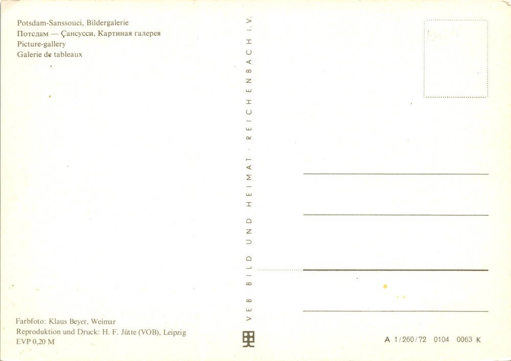 MAKE AN OFFER. THE MORE YOU BUY THE BETTER DEAL I WILL ACCEPT This postcard features a picture-gallery in Potsdam-Sanssouci, a famous historical site in Germany. Sanssouci is a large park surrounding a palace built by Frederick the Great of Prussia in the 18th century.