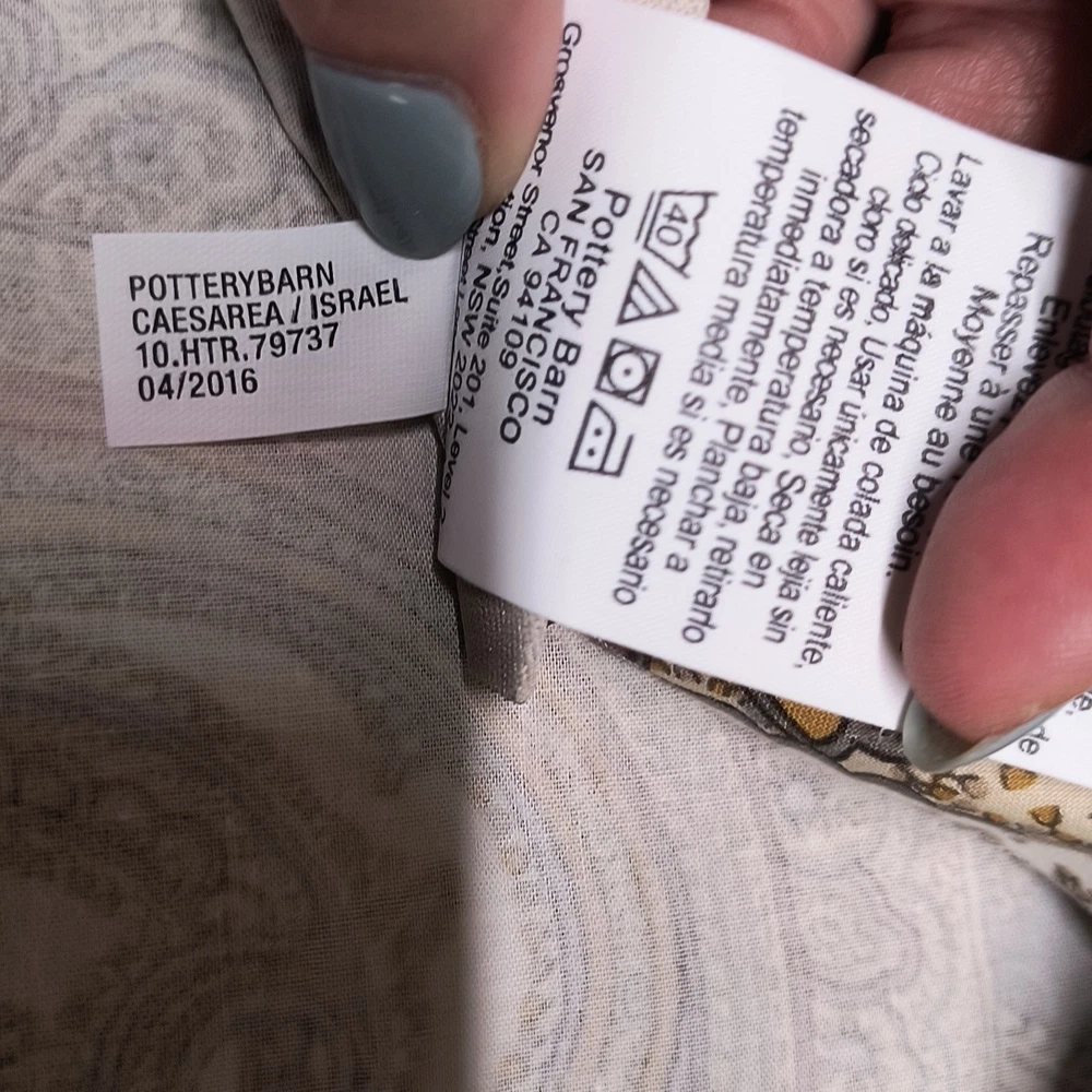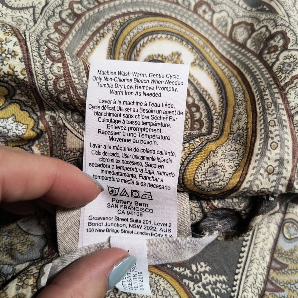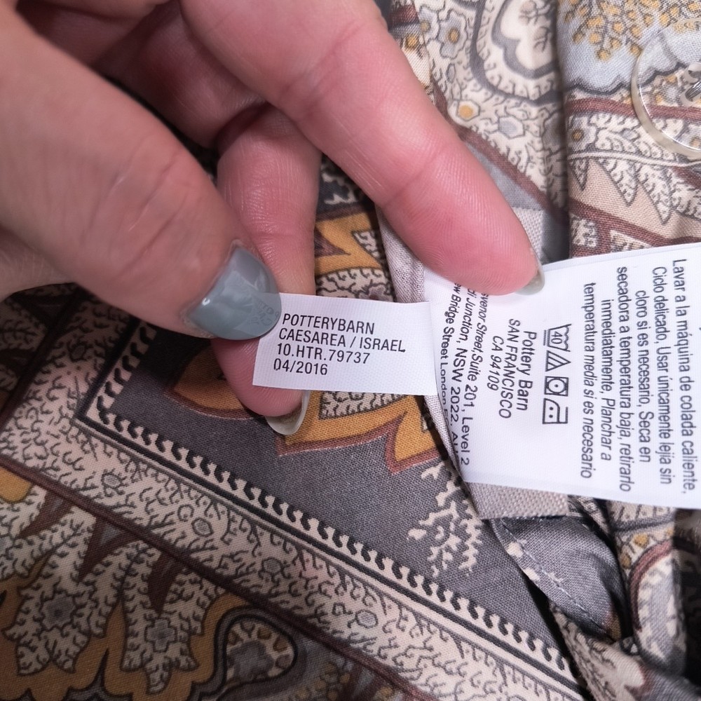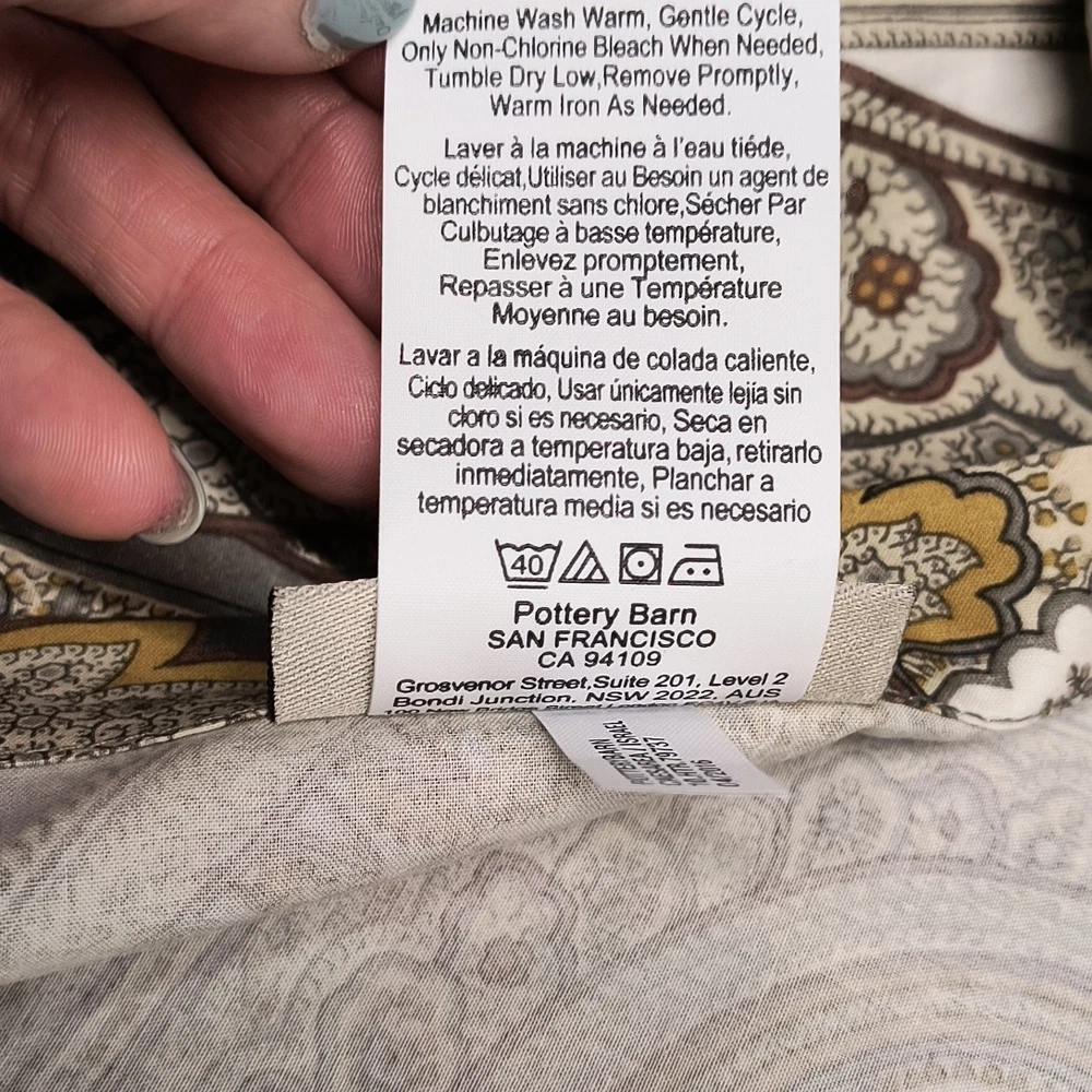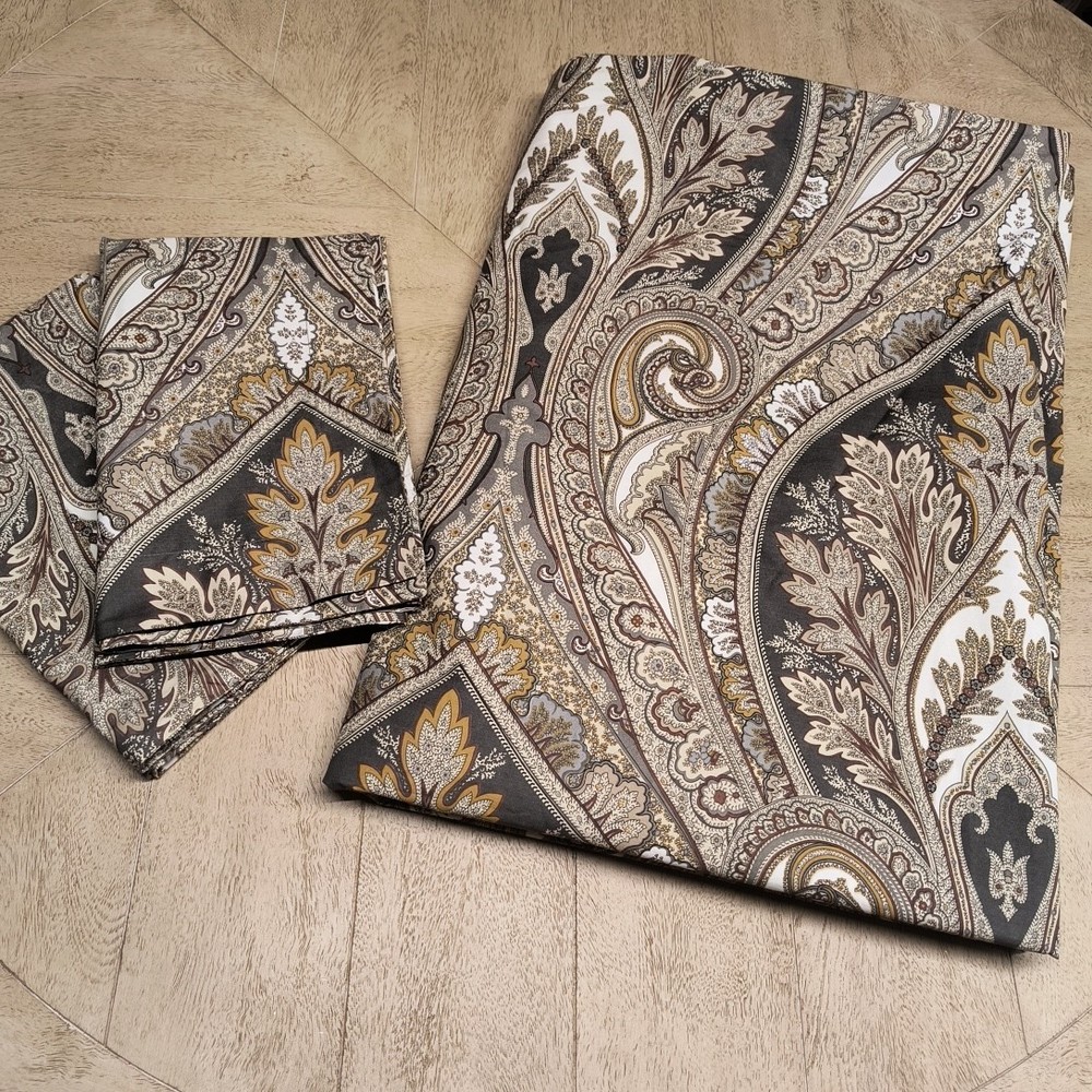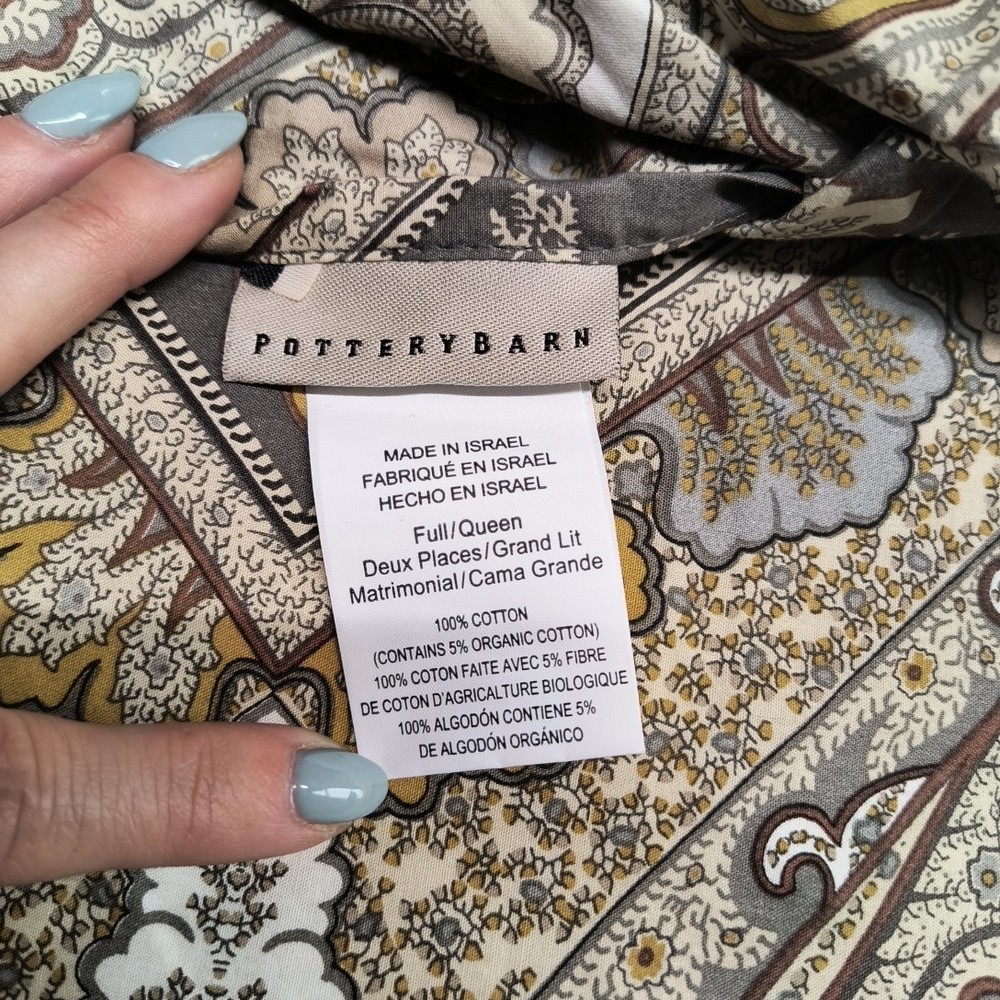 Absolutely pristine Pottery Barn Anton Gray Paisley queen duvet set. Set includes queen size duvet cover and 2 standard size pillow shams. Fabric is 100 percent organic cotton, made in Israel. Duvet features hidden button closure and shams have an envelope closure. Gorgeous and hard to come buy. This set was on my bed for a total of a week before I painted the bedroom and it no longer worked. My loss is your gain. Like new! No smoking, no pets, no kids!