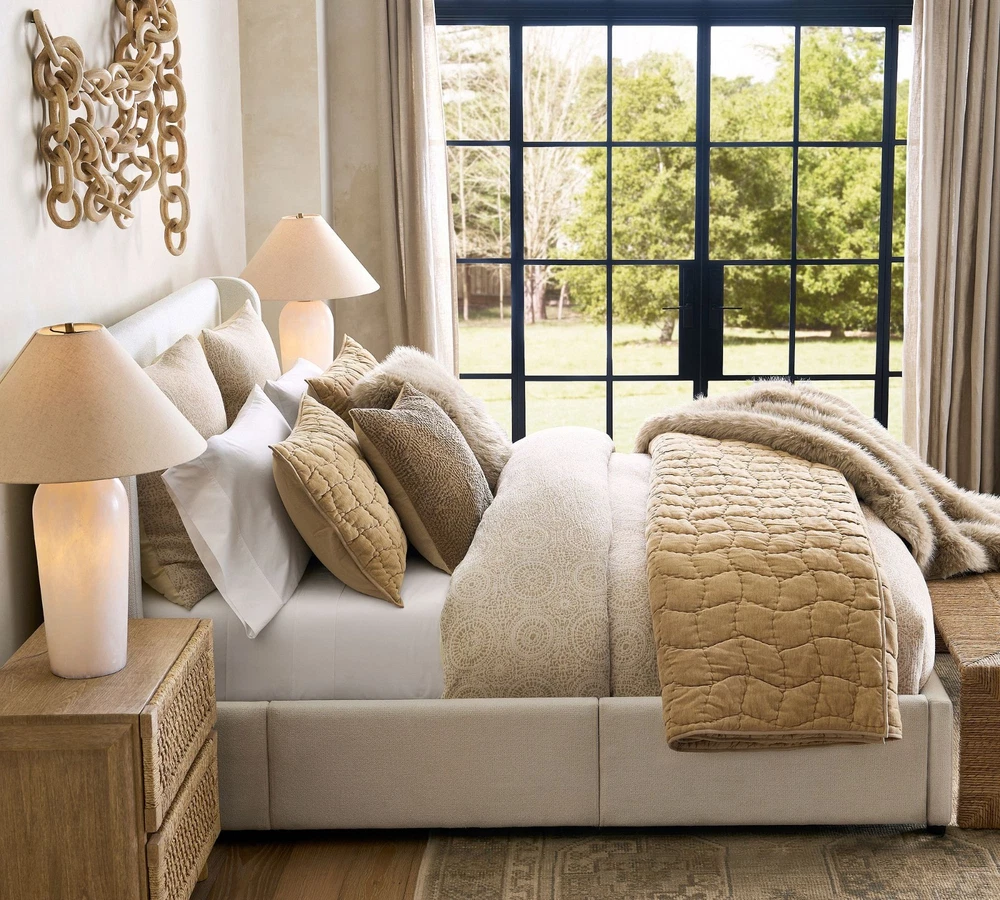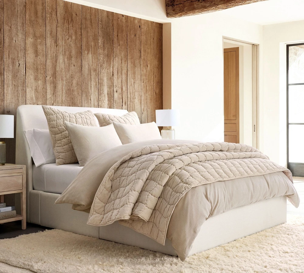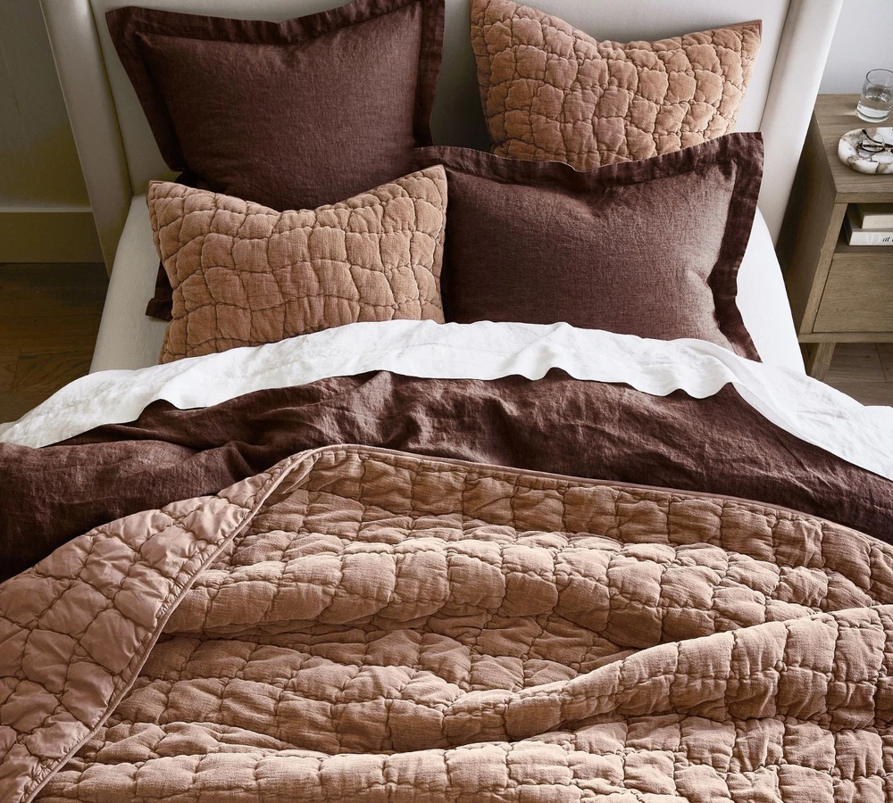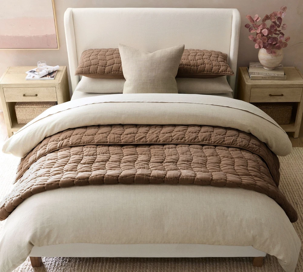 $ 75.95Natural Linen Cotton Quilt - Wavy Box Stitched Beige Queen Quilt, 100% Cotton Fi