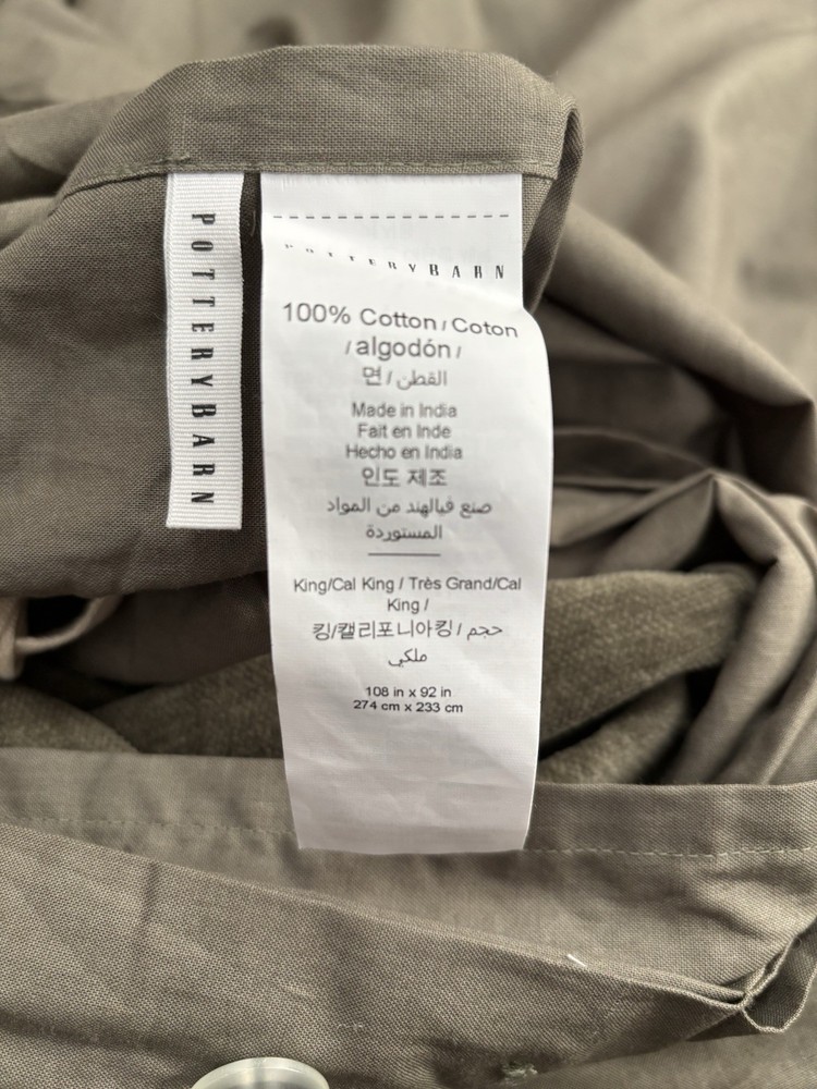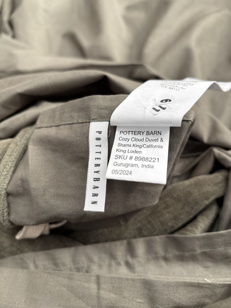 Pottery Barn Cozy Cloud Duvet Cover, King, Loden Currently no longer available on PB site NWOT Color: Loden Size: King/Cal. King Duvet: 92" l x 108" w Material: Made from 100% Cotton Yarn Dyed Chenille; reverses to 100% cotton sheeting. Secure Design: Duvet features a hidden button closure with inner ties that keep the insert in place; Open box item