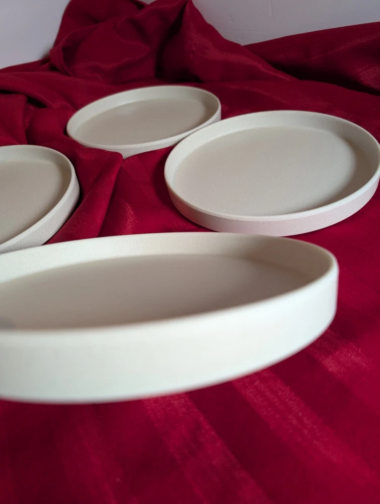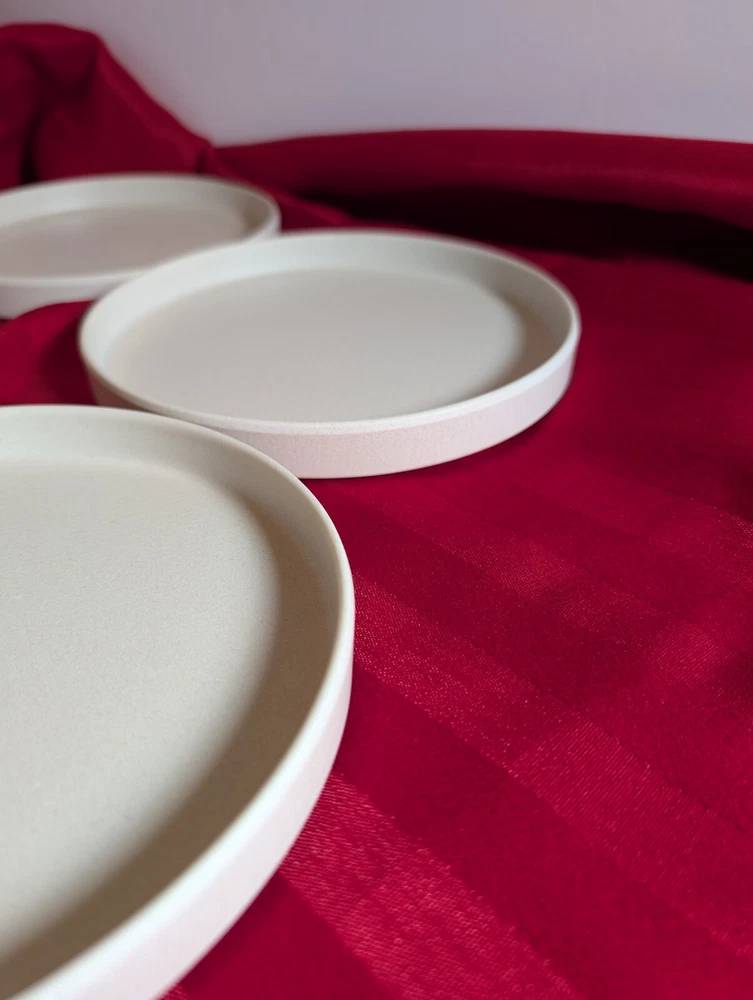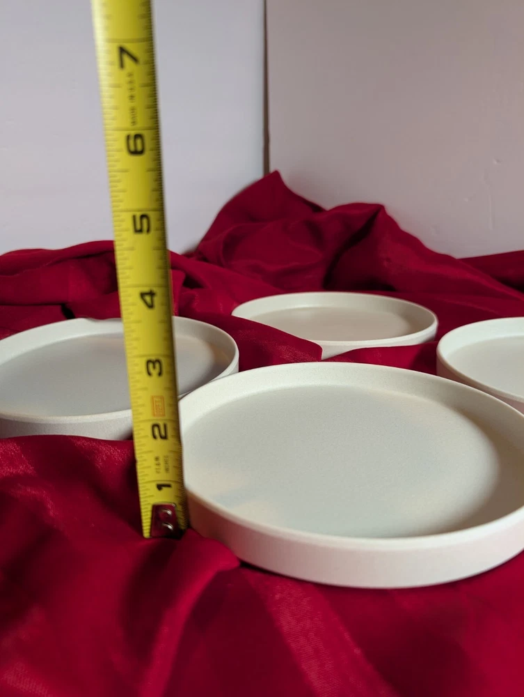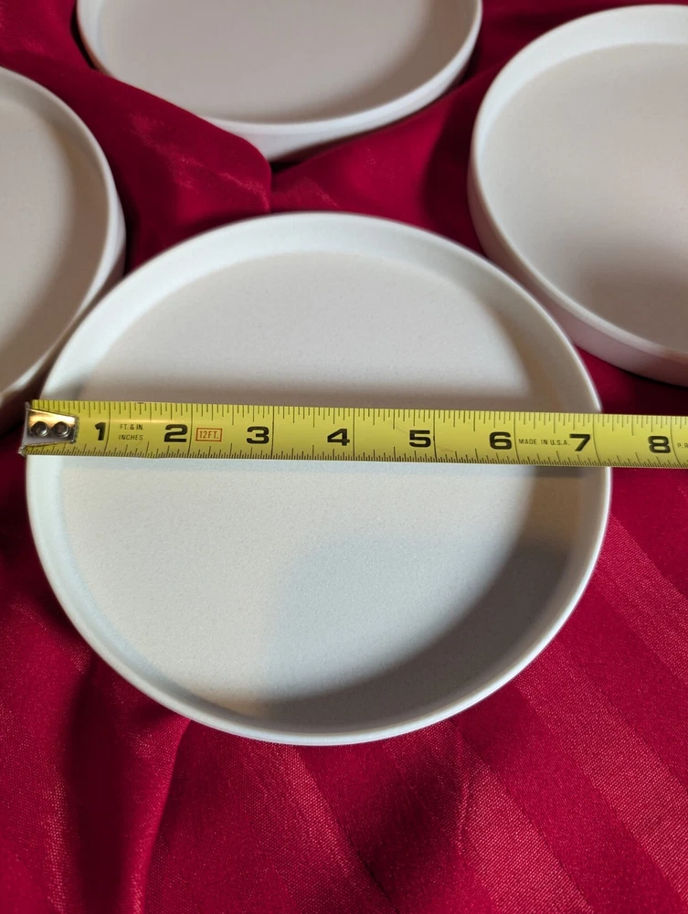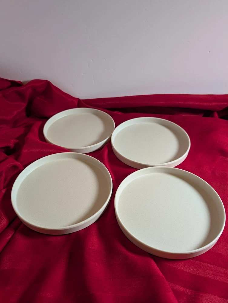 Pottery Barn Melamine Salad Plates (4) Mason Collection Set of 4 plates Stackable, outdoor friendly 7 1/8" Salad or appetizer Ivory in color Durable Melamine. Phthalate, BPA and lead free Dishwasher safe on top rack Not recommended for microwave These plates are brand new and have never been used No original box