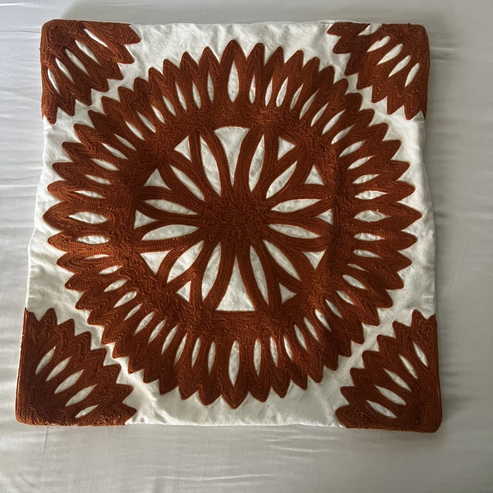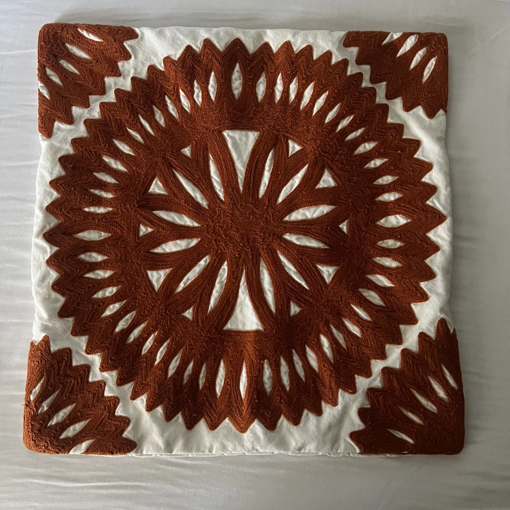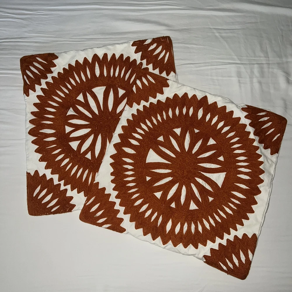 Pottery Barn Orange White Medallion Embroidered Throw Pillow Covers Set 2 18x18