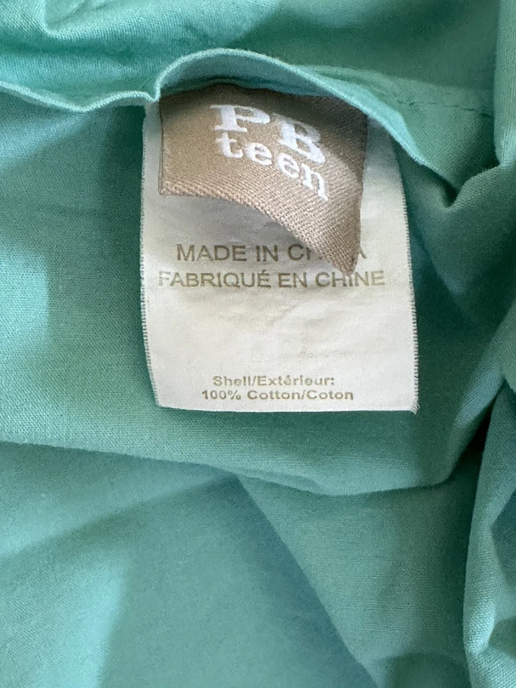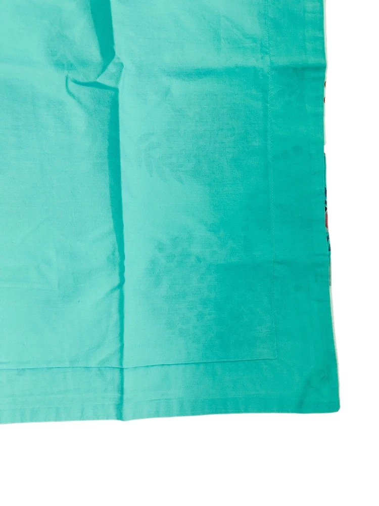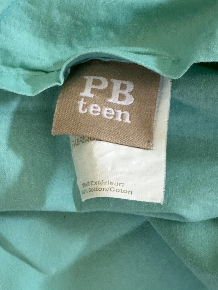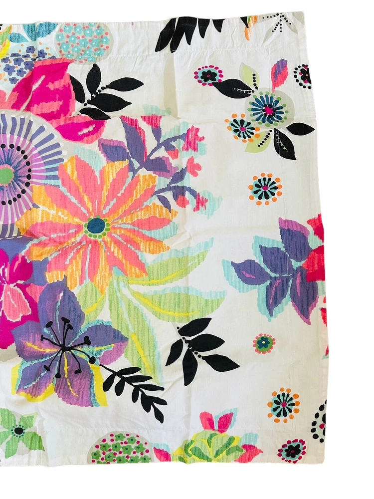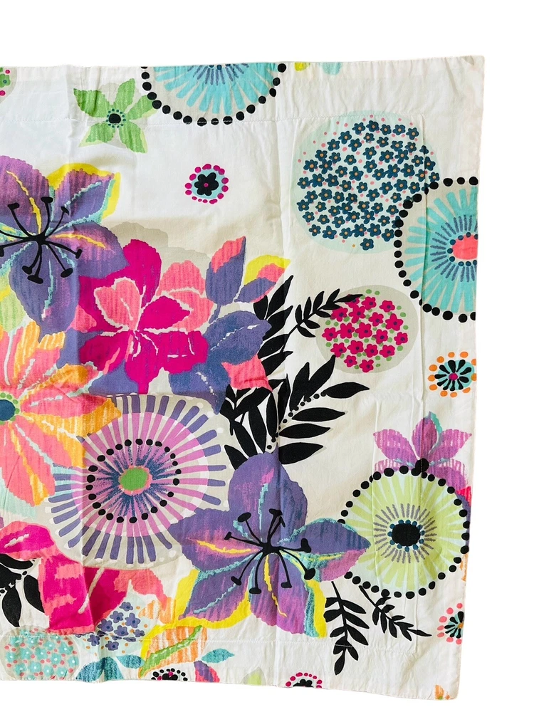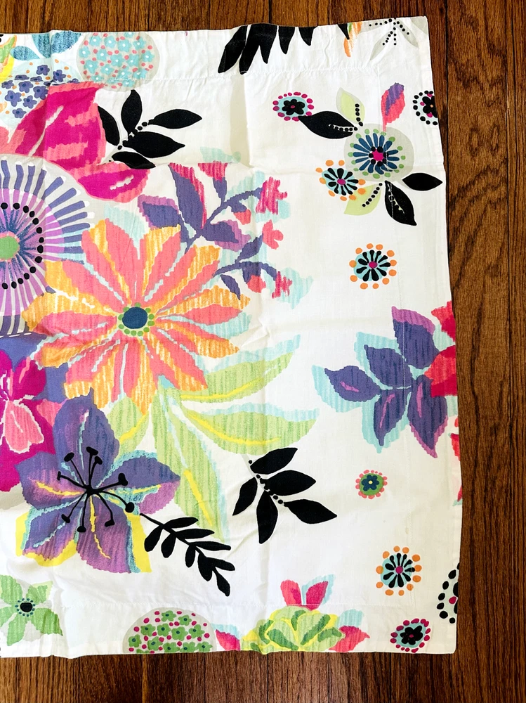 Pottery PB Teen Flower Power Bright Floral Cotton Pillow Sham 24" x 28" - 100% Cotton Envelope style sham reverses to aqua/green/blue solid color Faded stain on front side near sham corner, please see photo
