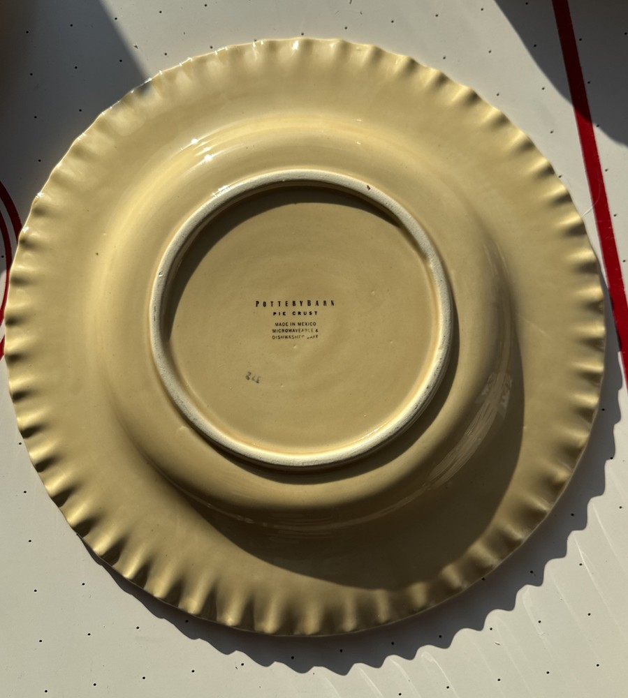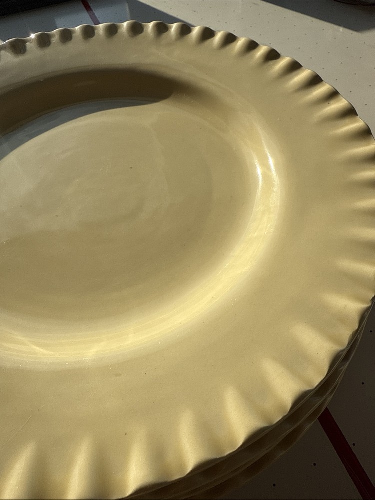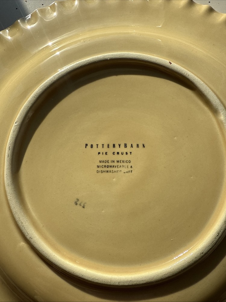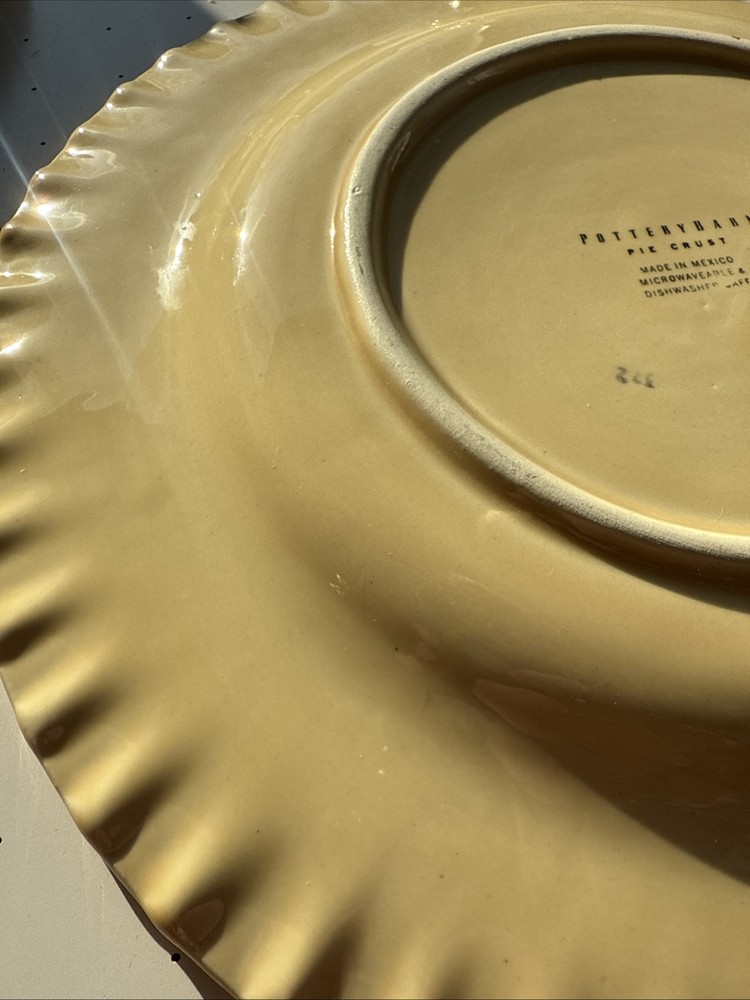 Set your table in contemporary style with this Pottery Barn Pie Crust dinner plate set. Made in Mexico, this six-piece set features round dinner plates in a vibrant yellow color with a pie crust pattern. Crafted from stoneware and ceramic, these plates are suitable for all occasions.