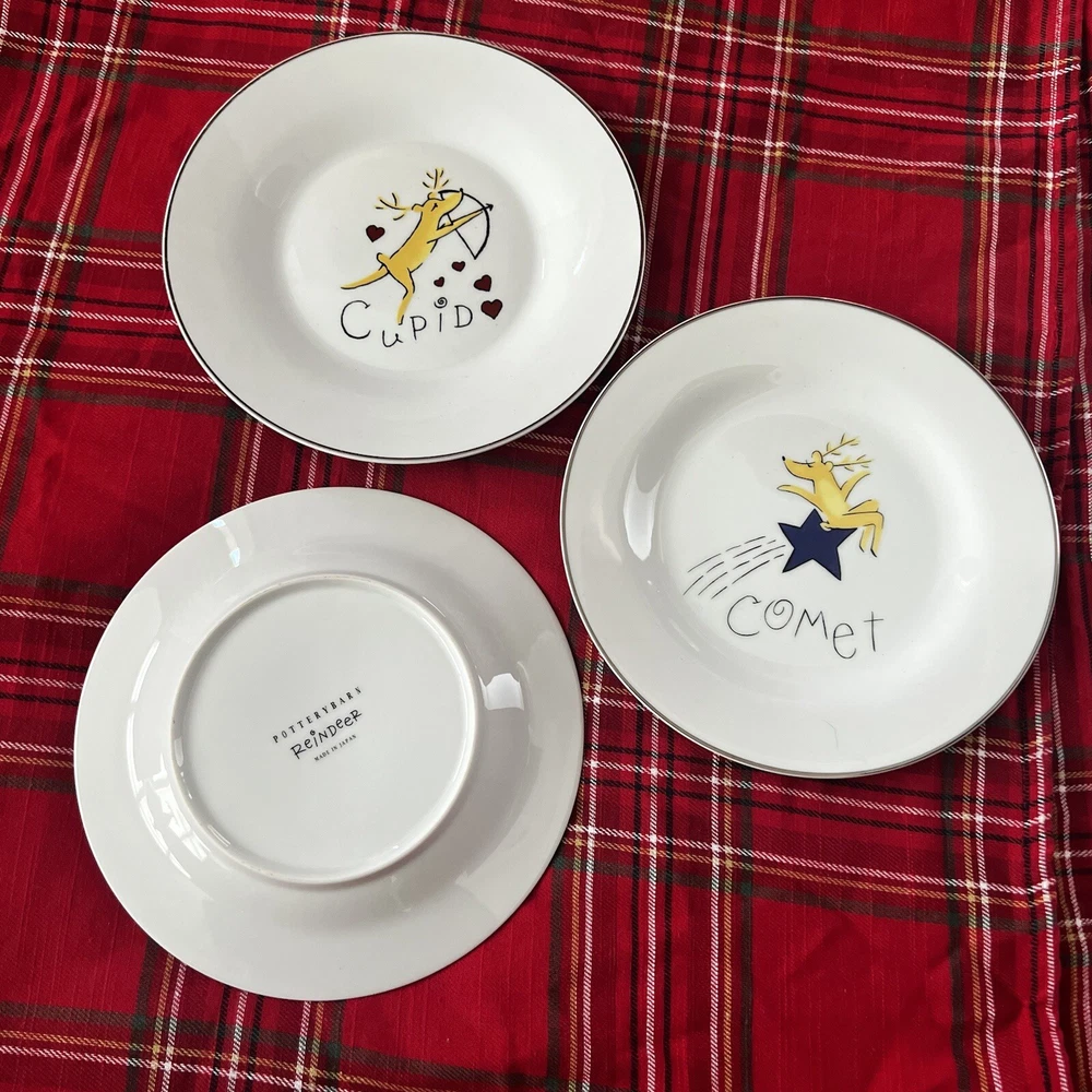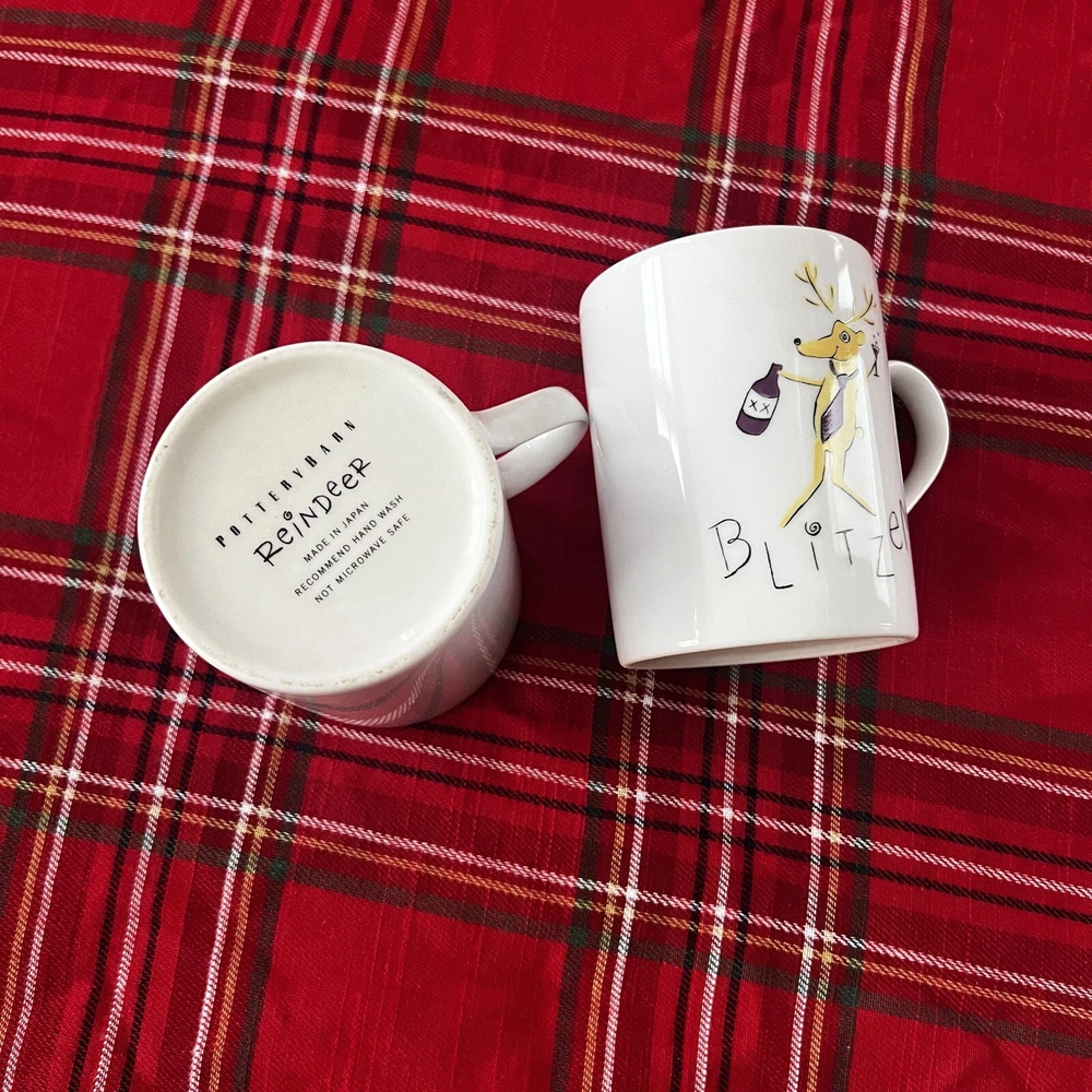 Add festive cheer to your dining table with this 9-piece Pottery Barn Reindeer Holiday Dishes set. The set includes 3 dinner plates (2 Cupid, 1 Comet), 4 4” appetizer plates (Prancer, Vixen, Dasher, Blitzen) and 2 Blitzen coffee mugs, perfect for serving or displaying during the Christmas and winter season. The set features a beautiful white color and is made of high-quality porcelain and ceramic materials, ensuring durability and longevity. The set is designed with a holiday theme, featuring characters such as Vixen, Comet, Prancer, Dasher, Blitzen, and Cupid, making it a perfect addition to your home décor.
