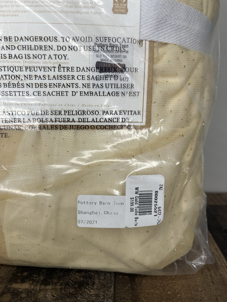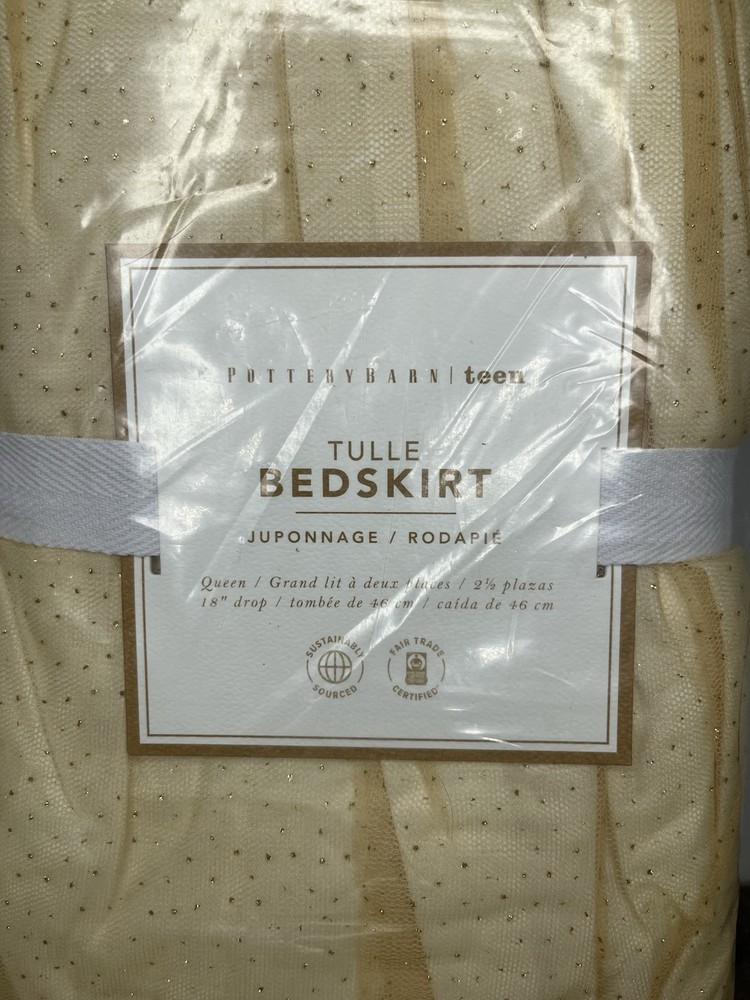 New Pottery Barn Teen Tulle Queen Bed Skirt Gold 18” Drop CONDITION IS NEW SHIPPING USPS GROUND ADVANTAGE