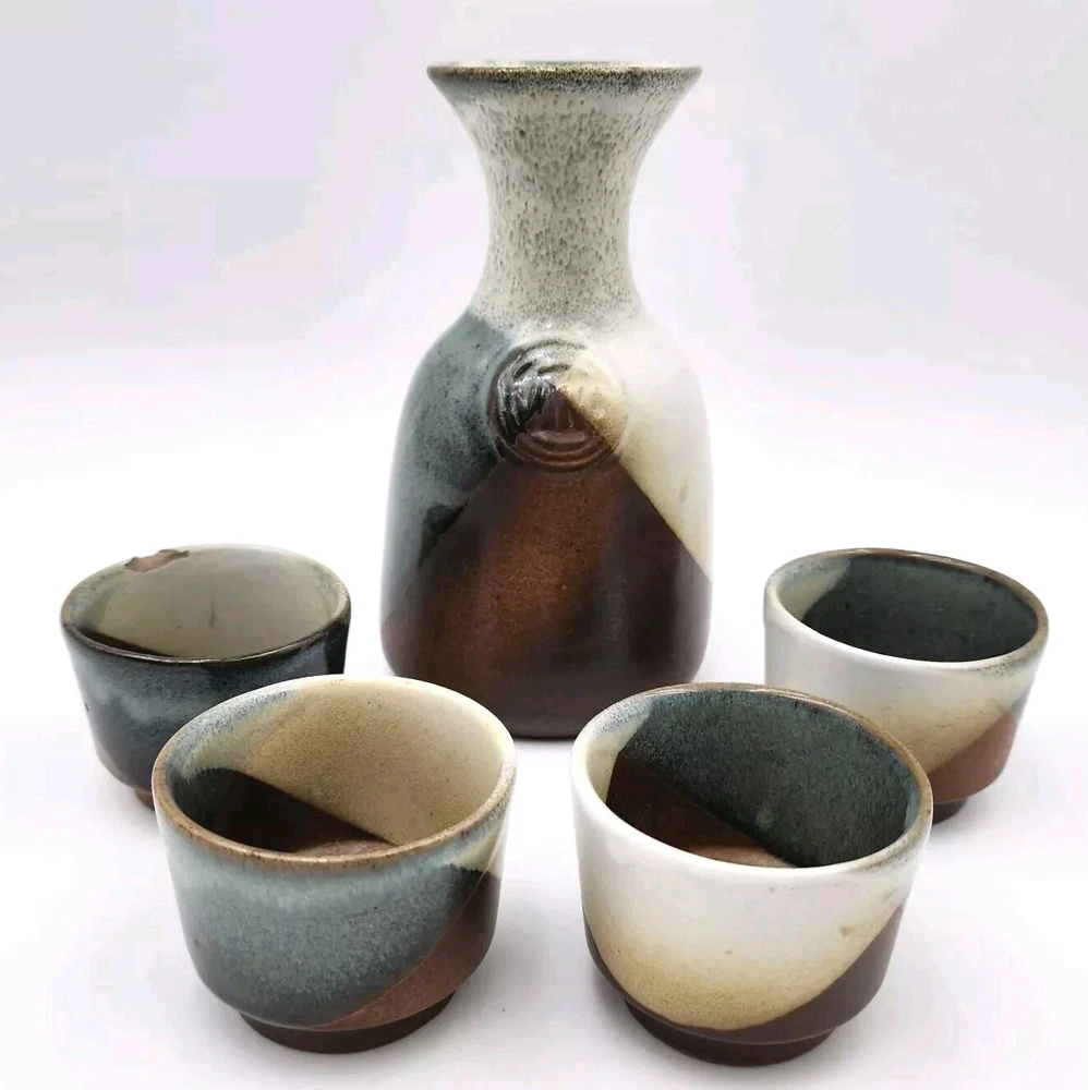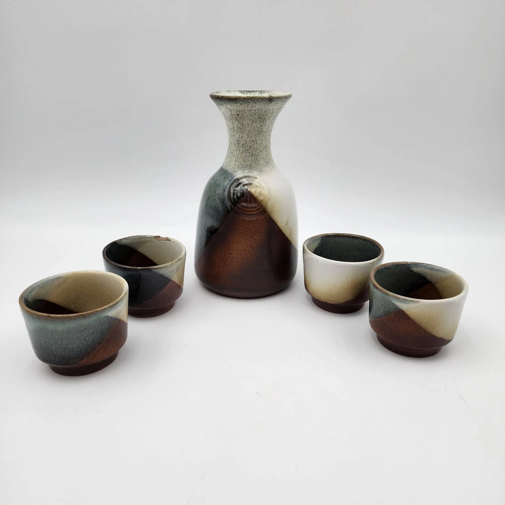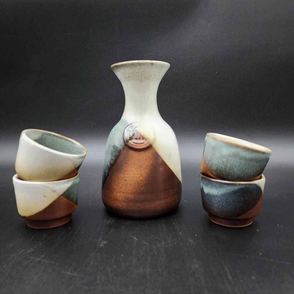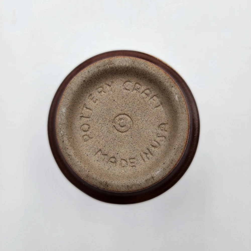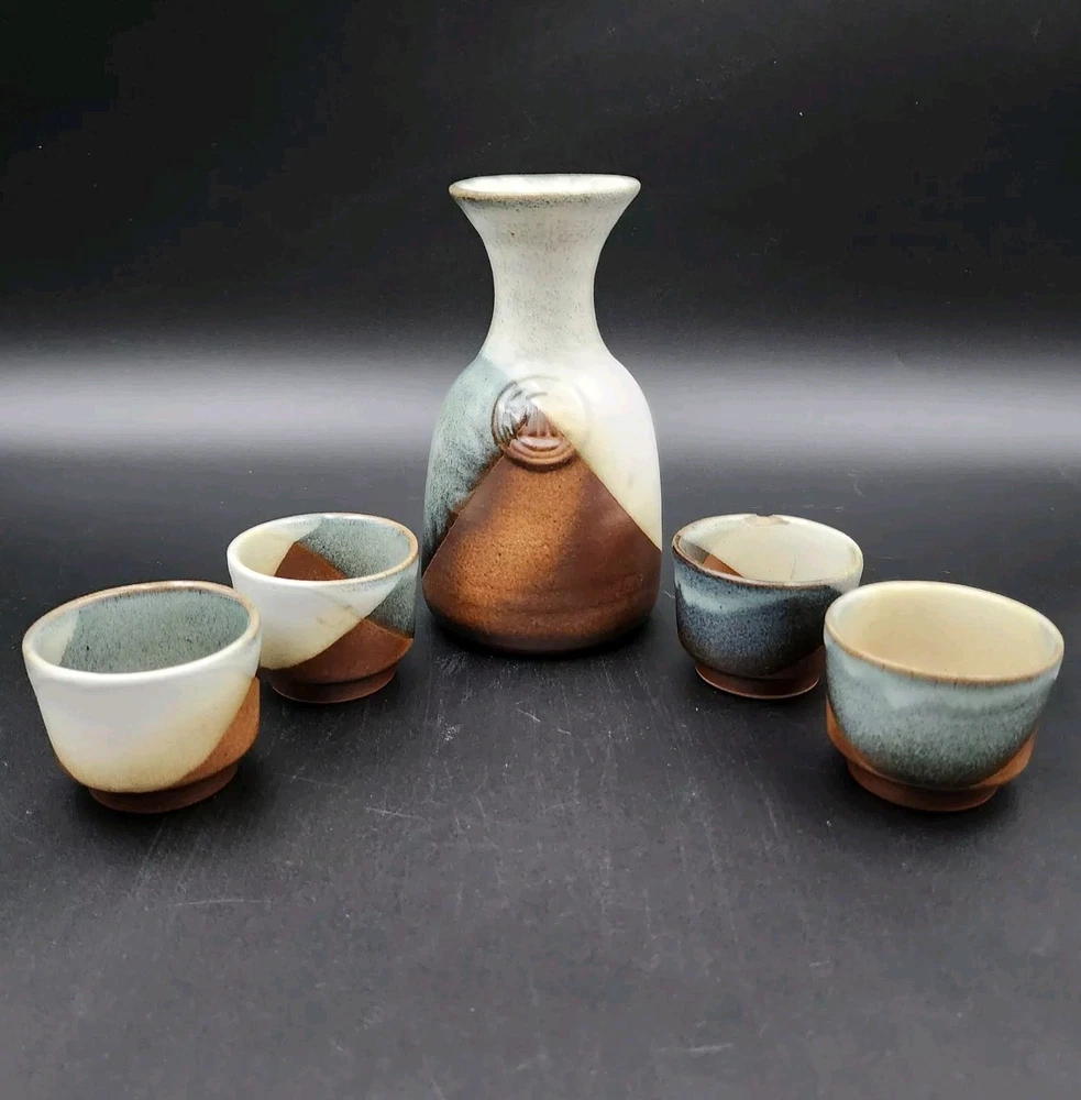 Brand:Pottery CraftVintage:YesItem Weight:2.8 lbShape:RoundProduction Style:Art PotteryFeatures:DecorativeStyle:Mid-Century ModernSigned:YesItem Height:7.5 inMaterial:StonewareBackstamp:ImpressedColor:MulticolorHandmade:YesProduction Technique:PotteryEra:Late 20th Century (1970-1999)Pattern:GeometricType:Decanter SetTime Period Manufactured:1970-1979Original/Licensed Reproduction:OriginalCountry/Region of Manufacture:United States