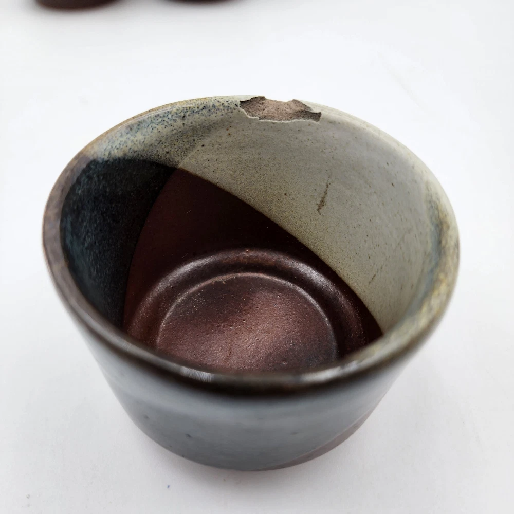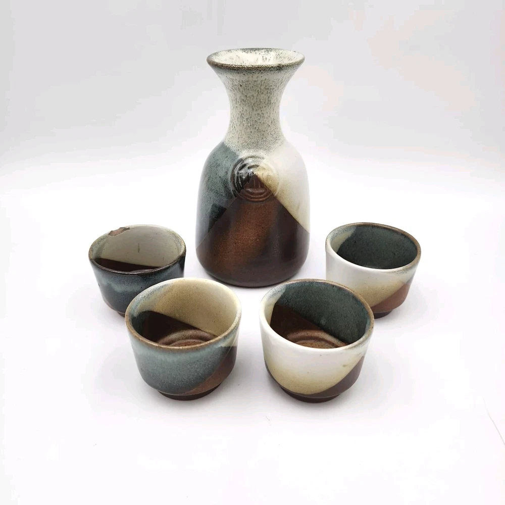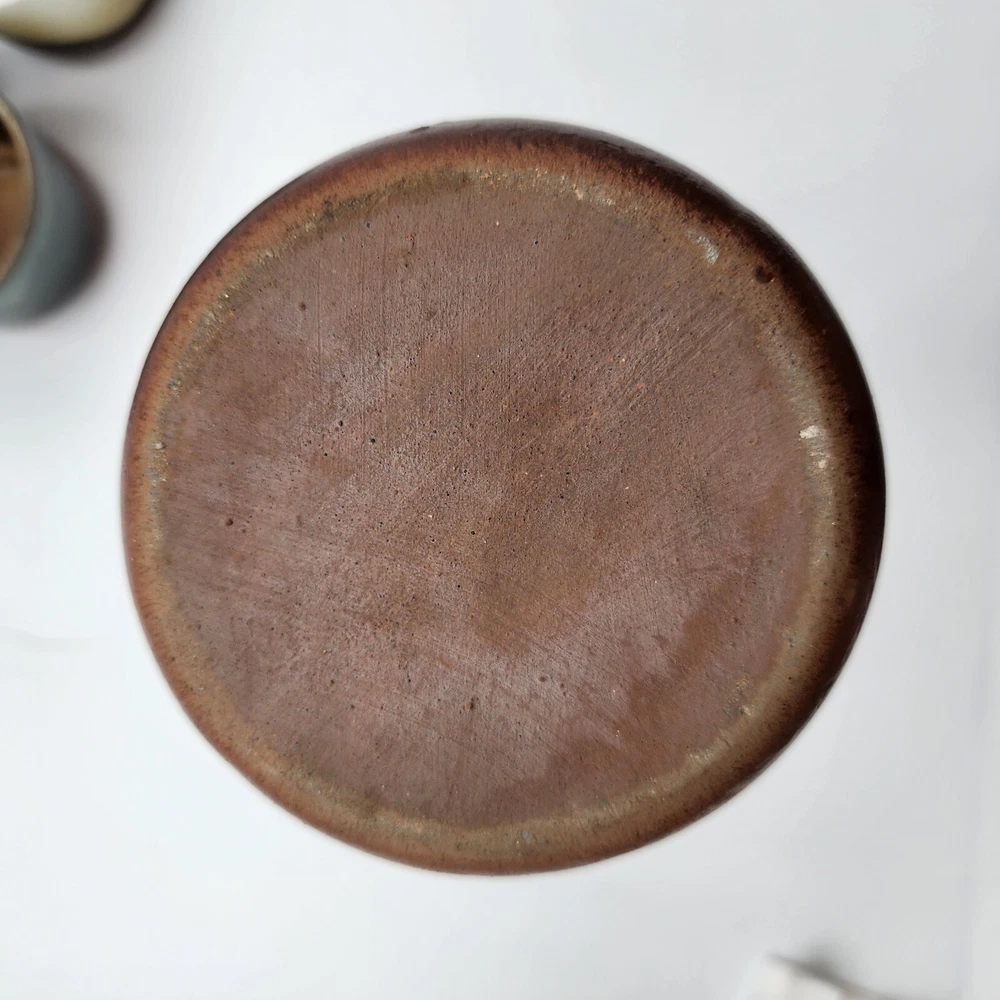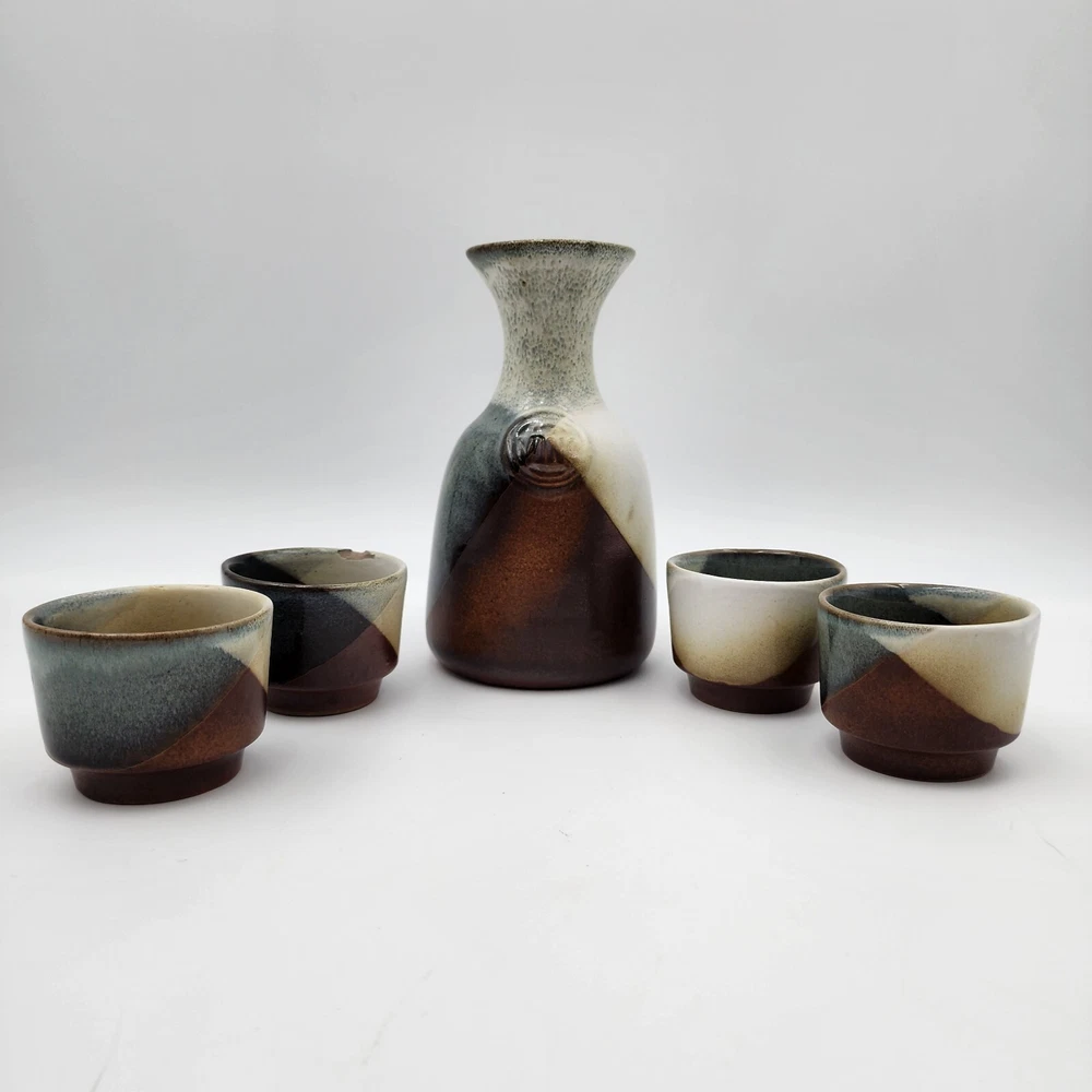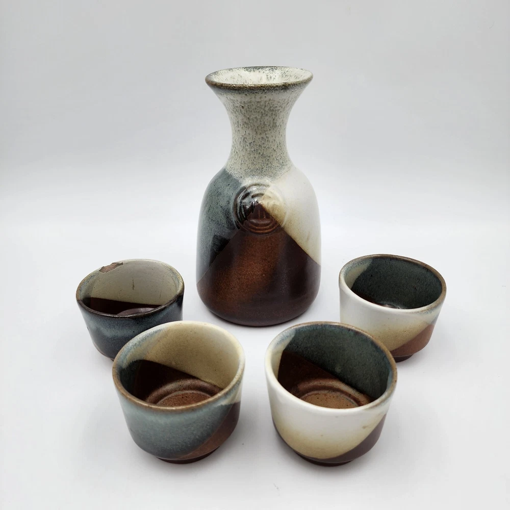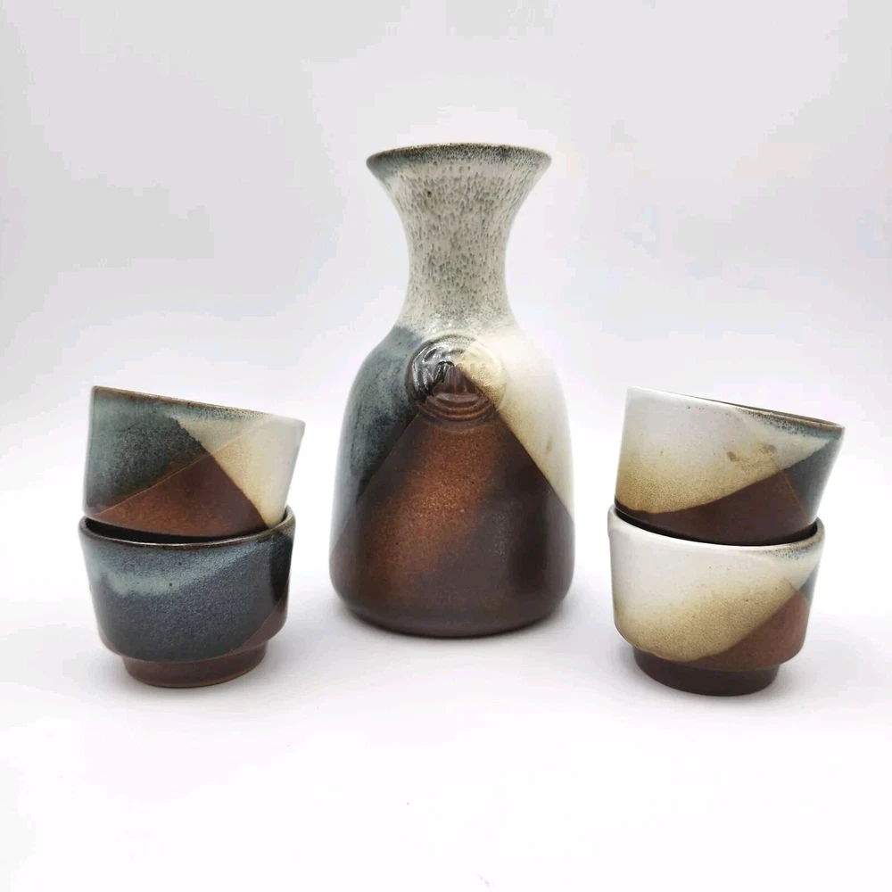Brand:Pottery CraftVintage:YesItem Weight:2.8 lbShape:RoundProduction Style:Art PotteryFeatures:DecorativeStyle:Mid-Century ModernSigned:YesItem Height:7.5 inMaterial:StonewareBackstamp:ImpressedColor:MulticolorHandmade:YesProduction Technique:PotteryEra:Late 20th Century (1970-1999)Pattern:GeometricType:Decanter SetTime Period Manufactured:1970-1979Original/Licensed Reproduction:OriginalCountry/Region of Manufacture:United States