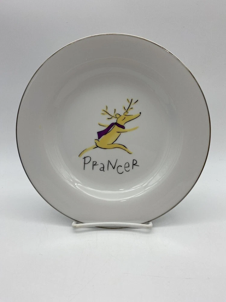Pottery Barn Reindeer Plate 8 1/2" Salad plate very nice clean condition silver band around plate Prancer Box 114