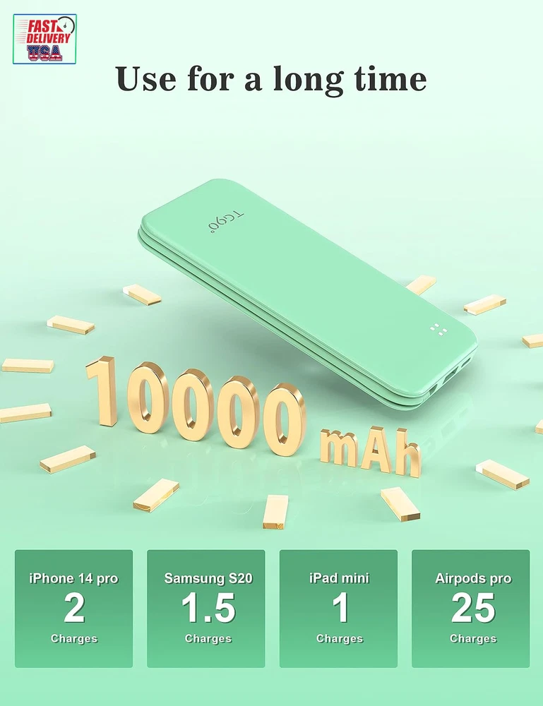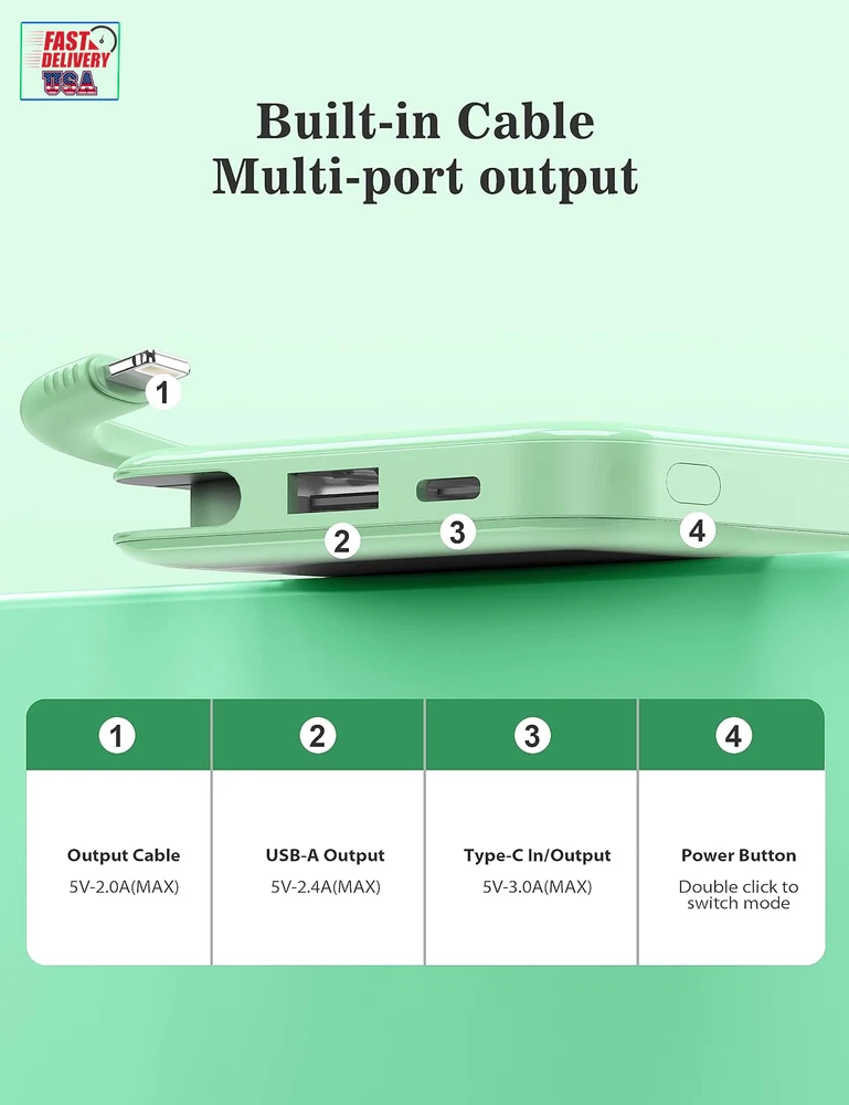 Store New Arrivals Add to Favorite View Feedback Contact Power Bank 10000Mah Portable Charger with Built-In Cable, Portable Phone Charger External Battery Pack Compatible with Iphone 14/14 Pro/13/13 Pro/12/12 Pro/11/11 Pro/X/Xs/Se and More Description Item model number A-10K03 Battery Capacity 10000 Milliamp Hours Color Green Product Dimensions 3.98 x 2.7 x 0.55 inches Country of Origin China Connector Type USB Type C Item Weight 8.1 ounces Batteries 1 Lithium Polymer batteries required. (included) Special features LED Indicator Lights, Built In Cable, Pocket Size Other display features Wireless Special Feature LED Indicator Lights, Built In Cable, Pocket Size Power Bank with Built in Cable: Perfect portable phone charger built-in cord compatible with your iPhone devices. Just plug into your phone for charging, there's no need to carry any extra cords. Pocket Friendly and Stylish Design: This battery pack charger covers with colorful Stylish Piano Lacquer (pink, red, green) for better visual beauty and hand feeling. Lightweight and compact design makes it easier to carry around in your pocket or bags. Three Way To Charge Your Devices: This portable battery bank is equipped with one USB Type-C input&output, one USB output and the built-in cord. Triple-output port design allows you to share this portable power bank with your families and friends. Great Battery Backup For Cellphones: Ultra compact and lightweight battery pack has a large capacity of 10000mAh, which is suitable for daily use or travelling as a portable battery backup for your cell phones and other usb compatible smart devices. What's You Get: 1 * 10000mAh Portable Charger, 1 * USB Type-C Charging Cable, Worry-free 12-month warranty and friendly customer service. Product Description 1 Built-in Cable 2 Easy to Carry 3 Pocket Friendly Portable Charger Built-in Cord This portable power bank built in cord supports directly charge your phone compatible with iPhone devices. The package also includes a type-c cable compatible with Samsung, google Motorola Android phones. Slim Power Bank for Travelling Ultra slim and lightweight battery pack but with 10000mah high capacity, which is TSA-approved and suitable for your daily use or business trip. Perfect battery backup for your smart devices. ABOUT US We offer the best prices around on high quality products. Our E-store includes media such as books, movies, music and games while offering electronics, toys, sporting apparel, clothing, tools, general home, garden items and more. SHIPPING We are always working hard to ensure your package arrives as soon as possible. Please understand that some factors like weather, high postal traffic, and the performance of shipping companies are outside of our control. We offer free shipping to the lower 48 states and ship within 2 business days of payment, usually sooner. We do not accept P.O. Boxes. Please provide a physical address. For shipping outside of the continental USA, we only use eBay's Global Shipping Program.The item is shipped to KY and then sent to the rest of the world. International customers are responsible for all duties and taxes. Continue to check out in order to calculate costs for shipping the item to your country. Messages regarding eBay's Global Shipping Program MUST be directed at eBay EXCLUSIVELY. RETURNS We offer a 30-Day Return Policy on items which you are not completely satisfied with. You have the option for a full-refund or an exchange of the item. No returns are available on items shipped outside of the USA. PAYMENT We accept PayPal. CONTACT US This page content is yet to come Please ad us to your favorite seller and visit again later Thank You CUSTOMER SATISFACTION We try our very best to make sure every customer is completely satisfied. If there's a problem, message us! We're happy to help. WE ACCEPT Copyright © 2021 AutoDS. | All Rights Reserved