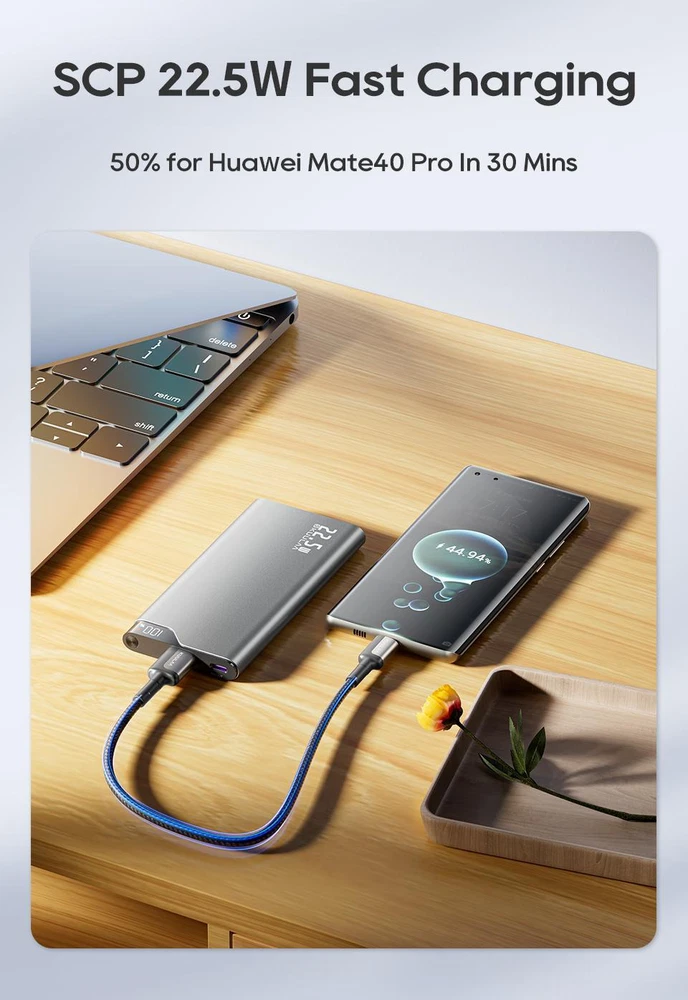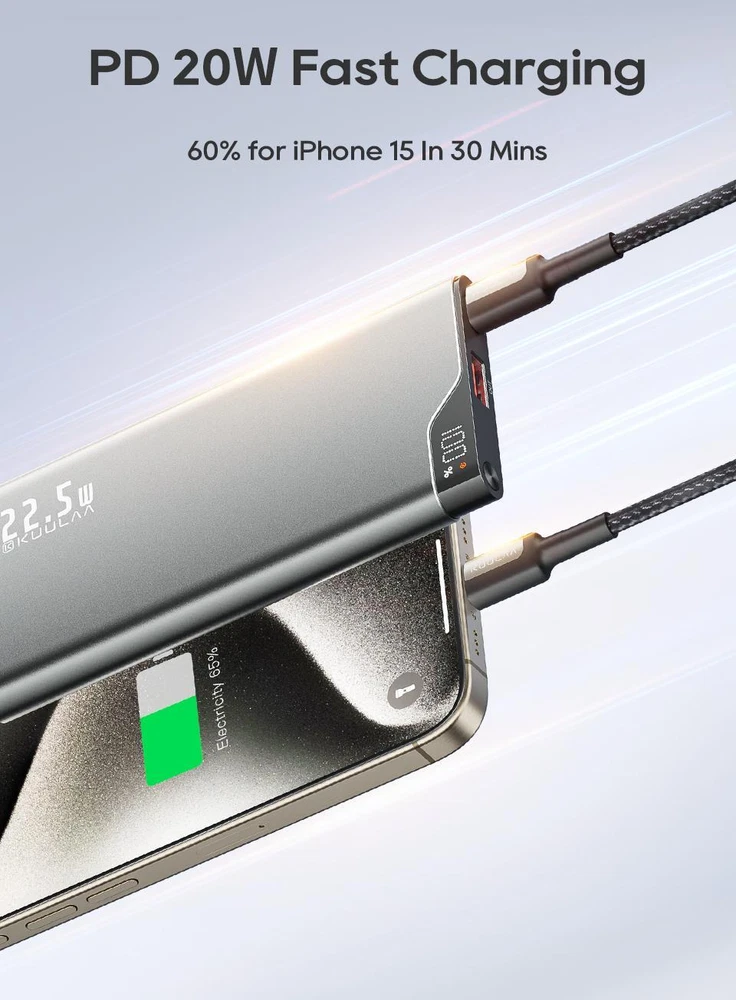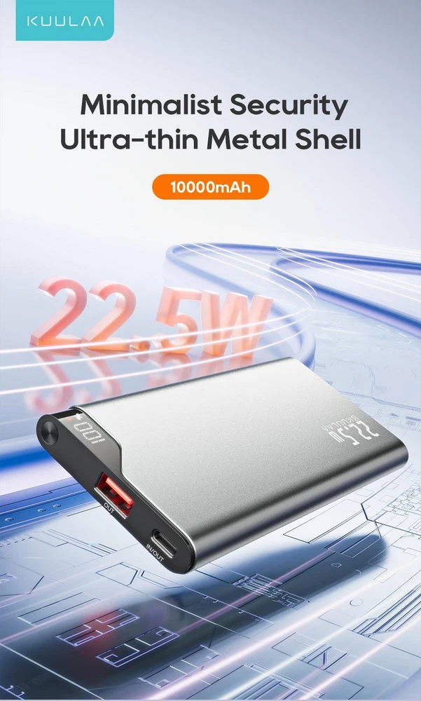 Free and fast shipping , shipping take up 1-7 Business Days 30 Day Return Accepted EASY PAYMENT via PayPal, Credit Card, PayPal Credit, Google Pay... Power Bank 10000mah Mobile Phone Plastic Medium Grey 2-usb 5v Backup 22.5w Product Name:KUULAA 22.5W Fast Charging Power Bank Capacity:10000mAh Size:13.5*6.6*1.3cm Product Weight:250g Colour:Grey Material: Aluminum alloy Output: USB:5V2.4A,9V2A,12V1.5A,10V2.25A Type-C: 5V3A,9V2.22A,12V1.67A Input:Type-C:5V3A,9V 2A,12V1.5A Product Accessories:Type-C Charging Cable Digital Display Quick Charge Power Bank ●Minimalist Security ●Ultra-thin Metal Shell ●10000mAh Large capacity ●Classic & Portable ●Supprt PD3.0 & QC3.0 ●LED Indicator SCP 22.5W Fast Charging Charge 50% for Huawei Mate40 Pro In 30 Mins PD 20W Fast Charging Charge 60% for iPhone 15 In 30 Mins Small Current Mode More suitable for low current devices Reliable Batteries Long Battery Life, Intelligent Temperature Control 3Hours Full Recharged Multiple Protection Carrying on Board Fly Around the World Wide Compatibility REVIEWS The product came very well packaged. I'm very happy. thank you for everything. Seller strongly recommended. This is great! I definitely recommend! Product looks amazing Delivery was fast. Excellent seller, great communication. I advise everyone to buy it!