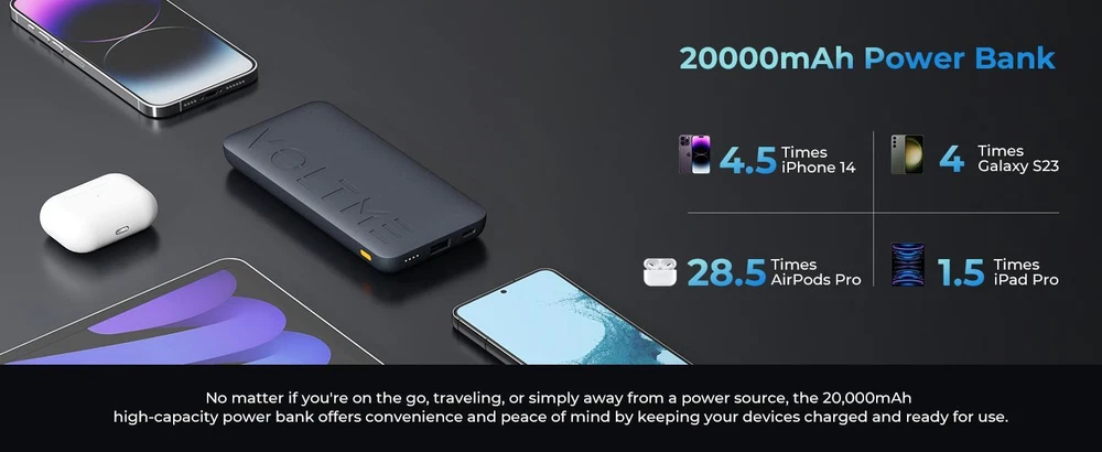 Free and fast shipping , shipping take up 1-7 Business Days 30 Day Return Accepted EASY PAYMENT via PayPal, Credit Card, PayPal Credit, Google Pay... Power Bank 20000mah Mobile Phone Plastic Medium Multicolor 2-usb 5v Backup 20w Brazilian buyers Note: There is NO DDP for this product, You did not pay taxes in advance for this product! You will be responsible for the customs duties by default after purchasing! We are not responsible for everything due to tariff issues! 1. Brazilian Duty = (Customs Tax) + (ICMS Tax) two parts; there is no (Customs Tax) under 50 US dollars, but! Need to pay (ICMS Tax) 2. The tax payment processing cycle is 20 days. Please process the tax payment in time to avoid the customs abandonment and destruction of parcels due to overdue packages. 3. Brazilian buyers can log in to the official postal website online to pay taxes: https://www.correios.com.br/ South Korea buyers Note: 1.South Korea you must fill in your personal customs clearance number. Example: P00000000000 (P+12 digits). Foreigners can use the alien registration card number and passport number; after the application is completed, you will get one with: P+12 A customs clearance code such as a single digit 2.Please send your customs clearance code to the seller dialog box Hypercore 10K Size: 106*68*16mm Battery Capacity: 10000mAh (3.85V*10000mAh=38.5Wh) Rated Capacity: 6000mAh (5V 3A Output) Input: ● USB-C: 5V 3A / 9V 2A (18W max) Output: ● USB-C: 5V 3A / 9V 2.22A / 12V 1.67A (20W max) ● USB-A: 4.5V 5A / 5V 4.5A / 9V 2A / 12V 1.5A (22.5W max) ● C+A: 5V 3A (15W max) Hypercore 20K Size: 158*74*19mm Battery Capacity: 20000mAh (3.7V*20000mAh=74Wh) Rated Capacity: 12000mAh (5V 3A Output) Input: ● USB-C: 5V 3A / 9V 2A (18W max) Output: ● USB-C: 5V 3A / 9V 2.22A / 12V 1.67A (20W max) ● USB-A: 4.5V 5A / 5V 4.5A / 9V 2A / 12V 1.5A (22.5W max) ● C+A:5V 3A (15W max) Simultaneous 2-Device Charge Equipped with one 20W PD USB-C port and one 22.5W QC USB-A port to ensure you can charge your laptop and phone at top speeds simultaneously. Note: Simultaneous charging may affect charging speed. 20000mAh Capacity The massive 20,000mAh cell capacity provides: 4.5 charges for iPhone 14 4 charges for Samsung Galaxy S23 1.5 charges for iPad Pro 28.5 charges for Airpods Pro Advanced Charging Technology VOLTME'S exclusive V-Dynamic technology to deliver an safer efficient charge to your devices What You Get 1 x 20000mAh Portable Chargers 1 x USB-C to USB-C Cable 1 x User Manual 1 x Thanks card 1 x packaging box REVIEWS The product came very well packaged. I'm very happy. thank you for everything. Seller strongly recommended. This is great! I definitely recommend! Product looks amazing Delivery was fast. Excellent seller, great communication. I advise everyone to buy it!