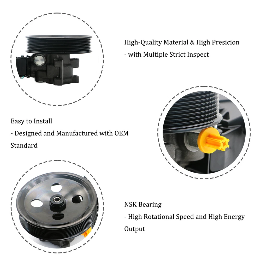 Welcome To Cuuove Auto Parts Store! Store Home New Arrivel View Feedback Contact Us Save Seller ABOUT US >>> We are a team dedicated to selling various products for automotive steering systems, such as power steering pump.We have our own factory resources. >>> Our purpose is to bring good quality and satisfactory shopping experience to consumers in the field of auto parts. >>> We will more auto parts products on the shelf later, please SAVE OUR STORE ! For 2003-2007 New Power Steering Pump w / Reservoir & Pulley Dodge Ram 2500 3500 20-70268 Fitment: Make Model Year Body Type Engine Size Fuel type Note Dodge Ram 2500 2003-2007 Pickup & Truck L6 5.9L Diesel Except ZF Pump Ram 2500 2007 Pickup & Truck L6 6.7L Diesel Except ZF Pump Ram 2500 2003 Pickup & Truck V10 8.0L Petrol Except ZF Pump Ram 2500 2003-2007 Pickup & Truck V8 4.7L Petrol Except ZF Pump Ram 2500 2003-2007 Pickup & Truck V8 5.7L Petrol Except ZF Pump Ram 3500 2003-2007 Pickup & Truck L6 5.9L Diesel Except ZF Pump Ram 3500 2007 Pickup & Truck L6 6.7L Diesel Except ZF Pump Ram 3500 2003 Pickup & Truck V10 8.0L Petrol Except ZF Pump Ram 3500 2003-2007 Pickup & Truck V8 5.7L Petrol Except ZF Pump Features: Quality and Reliability Our all items are Made of High-quality material and high precision. Easy to install Our all items are designed and manufactured with OEM standard. Easy Steering Provide accurate,quick response pressurelevel to turn the wheels smoothly. No Leakage & Low Noise Multiple Strict inspect have tested , Just for your better driving experience. Item Specifics: Condition: Brand New Manufacturer Part Number: 20-70268 Interchange Part Number: 55-7155, 5073241AA, 52106842AE, 52106842AG, 52113925AB, 9670268, 36P0097, 68034330AB Package Includes: 1 x Power Steering Pump With Pulley , Reservoir About Us Our all items are brand new with high quality, packed in box can reduce damage to products during transportation. Payment We accept payment through PayPal and other payment methods that accepted by ebay,You can open a Paypal account at www.paypal.com. Shipping Our orders will be shipped out within 1 business day after payment is finished, All domestic orders will be shipped via USPS, UPS or Fedex from our US warehouse. WE Do not apply Local pick up. Returns All of our brand new items come with a 30-Days money-back guarantee, We ensure all our items are new and in excellent condition prior to shipping. 1.We define the item as defective only if it doesn't function as described, It is the buyer's responsibility to understand the item description before bidding. 2.All returns must be in new original condition as received and should be shipped with delivery confirmation. 3.We ONLY accept returns with original package. Please make sure that item has NO man-made sabotage. Used items will not be accepted for return. 4.If you receive an item that does not meet the above criteria, please contact us via e-Bay information and we will actively help you resolve the issue. Contact Us Contact us if you have any question during business day from Monday to Friday, We will reply ASAP. We have a very professional and attentive customer support team. Give us a chance to serve you, and we hope you leave positive feedback. Installation Notes Before Installing a New Power Steering Pump * Ensure you have the recommended OE fluid or equivalent. * Check hoses for cracking, lack of flexibility and leakage. Replace hoses as necessary. * NOTE: Replacing hoses that are 5 years old or have 100,000 miles on them is recommended due to deterioration of the inner lining of the hose. * This installation guide is meant for general use only. For specific vehicle applications refer to the vehicle repair manual. Removing the Original Pump 1.Disconnect the negative battery cable for safety. 2.Remove engine belt and any other parts that will interfere with the removal of the hoses, pump or pulley. 3.Disconnect the power steering return and pressure lines. Drain fluid into an approved container. If hoses are being reused flush lines with OE approved fluid or cleaner and clean the connections. Cap the hoses to prevent contamination. 4.Loosen pump/bracket mounting bolts. On some models the removal of the power steering pulley will have to occur prior to mounting bolt removal. (Note below.) 5.Remove pump from vehicle. 6.Refer to vehicle repair manual for approved pulley puller to remove and install pulley on the pump with pressed on pulley. For pumps with bolt on pulleys loosen nut on power steering pump shaft. Align the pump shaft with the pulley appropriately on new pump. Refer to manufactures specifications for tightening nut on pulley. 7.If vehicle is equipped with remote reservoir check for contamination and replace or clean as necessary. Installing a New Power Steering Pump 1.Remove and transfer all switches, sensors, brackets, retaining hardware and special parts not supplied with replacement unit; clean and repair or replace as needed. 2.Install pump and hardware onto vehicle. Install pulley if necessary. 3.Check for proper pulley alignment, and proper tensioner operation. 4.Reinstall the clean and flushed power steering hoses and new O-rings for proper seal. 5.Reinstall belt at this time and check for alignment issues. Bleeding the Power Steering System 1.Fill the pump fluid reservoir to the proper level and let the fluid settle for at least 1 minute. 2.Start the engine and let it run for a few seconds, then turn the engine off. 3.Add fluid if necessary. 4.Repeat the above procedure until the fluid level remains constant after running the engine. 5.Start the engine. Slowly turn the steering wheel right and left until lightly touching the stops. 6.Stop engine, check the fluid level and add fluid if necessary. 7.If the fluid is extremely foamy, allow the vehicle to stand for a few minutes until air bubbles disappear and repeat the above. Note: A vacuum bleeding procedure may be necessary in some cases when the above procedure is not completely affective.