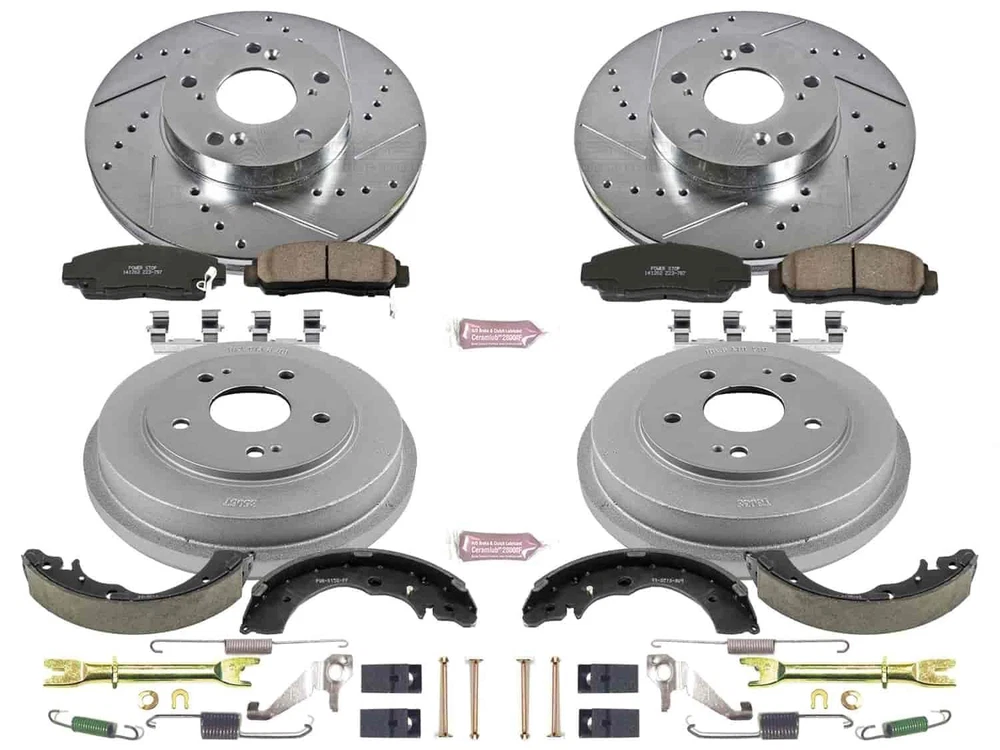 Z23 Evolution?Sport Brake Upgrade Kit ?To Verify Vehicle Fitment Information, Click Here! Vehicle FitmentFor more detailed fitment information, Click Here!Front and Rear: Honda Civic 2011-2006Disc Brake Pad and Rotor / Drum Brake Shoe and Drum KitFront and Rear Kit includes front drilled&slotted rotors with Z23 brake pads along with silver coated rear drums with brake shoes and hold down hardware.Power Stop engineered Z23 carbon-fiber ceramic pads significantly enhance braking performance versus traditional ceramic brake padsDrilled & Slotted performance rotors for maximum cooling.Rotors are Power Stop K15109DK Power Stop 1-Click Performance Pad/Rotor/Drum And Shoe Kits Z23 Evolution?Sport Brake Upgrade Kit ? To Verify Vehicle Fitment Information, Click Here! Vehicle Fitment For more detailed fitment information, Click Here! Front and Rear: Honda Civic 2011-2006 Disc Brake Pad and Rotor / Drum Brake Shoe and Drum Kit Front and Rear Kit includes front drilled&slotted rotors with Z23 brake pads along with silver coated rear drums with brake shoes and hold down hardware. Power Stop engineered Z23 carbon-fiber ceramic pads significantly enhance braking performance versus traditional ceramic brake pads Drilled & Slotted performance rotors for maximum cooling. Rotors are zinc plated for maximum protection against rust. Premium drums are coated in a silver rust preventative paint that is oven cured so it keeps looking good despite high temperatures Premium shoes are made from 100 new steel, plus are cam ground and chamfered to ensure precise fit and noise-free operation Comes with everything you need to get the job done, including stainless steel installation hardware, shoe installation hardware, adjuster kits, and high temperature ceramic brake lubricant Brand new shoe hold-down hardware ensures that you don't have to deal with the old worn out/broken springs, pins or cups. Brake rotor, pad & hardware engineered to work together to increase stopping power, improve durability & eliminate dust From the iconic mail order catalog to a fully-stocked digital commerce experience, we have built a preferred destination for every gear-head, professional racer, weekend warrior and restoration nut who wants to take their vehicle to the next level. Around here, we don't just sell parts - we rely on them when driving our own cars around racetracks, dirt trails, and interstates across the country. Parts may be our business - but grease, fuel, exhaust, power, and speed are what we live for. Today, more than 350 people are employed by JEGS and the business draws in hundreds of thousands of customers each year. Yet, we maintain the culture stared by Jeg Coughlin from the very beginning: a family-run performance shop that preserves a trusted relationship with each and every customer. From the iconic mail order catalog to a fully-stocked digital commerce experience, we have built a preferred destination for every gear-head, professional racer, weekend warrior and restoration nut who wants to take their vehicle to the next level. Around here, we don't just sell parts - we rely on them when driving our own cars around racetracks, dirt trails, and interstates across the country. Parts may be our business - but grease, fuel, exhaust, power, and speed are what we live for. Today, more than 350 people are employed by JEGS and the business draws in hundreds of thousands of customers each year. Yet, we maintain the culture stared by Jeg Coughlin from the very beginning: a family-run performance shop that preserves a trusted relationship with each and every customer. From the iconic mail order catalog to a fully-stocked digital commerce experience, we have built a preferred destination for every gear-head, professional racer, weekend warrior and restoration nut who wants to take their vehicle to the next level. Around here, we don't just sell parts - we rely on them when driving our own cars around racetracks, dirt trails, and interstates across the country. Parts may be our business - but grease, fuel, exhaust, power, and speed are what we live for. Today, more than 350 people are employed by JEGS and the business draws in hundreds of thousands of customers each year. Yet, we maintain the culture stared by Jeg Coughlin from the very beginning: a family-run performance shop that preserves a trusted relationship with each and every customer. From the iconic mail order catalog to a fully-stocked digital commerce experience, we have built a preferred destination for every gear-head, professional racer, weekend warrior and restoration nut who wants to take their vehicle to the next level. Around here, we don't just sell parts - we rely on them when driving our own cars around racetracks, dirt trails, and interstates across the country. Parts may be our business - but grease, fuel, exhaust, power, and speed are what we live for. Today, more than 350 people are employed by JEGS and the business draws in hundreds of thousands of customers each year. Yet, we maintain the culture stared by Jeg Coughlin from the very beginning: a family-run performance shop that preserves a trusted relationship with each and every customer. From the iconic mail order catalog to a fully-stocked digital commerce experience, we have built a preferred destination for every gear-head, professional racer, weekend warrior and restoration nut who wants to take their vehicle to the next level. Around here, we don't just sell parts - we rely on them when driving our own cars around racetracks, dirt trails, and interstates across the country. Parts may be our business - but grease, fuel, exhaust, power, and speed are what we live for. Today, more than 350 people are employed by JEGS and the business draws in hundreds of thousands of customers each year. Yet, we maintain the culture stared by Jeg Coughlin from the very beginning: a family-run performance shop that preserves a trusted relationship with each and every customer. From the iconic mail order catalog