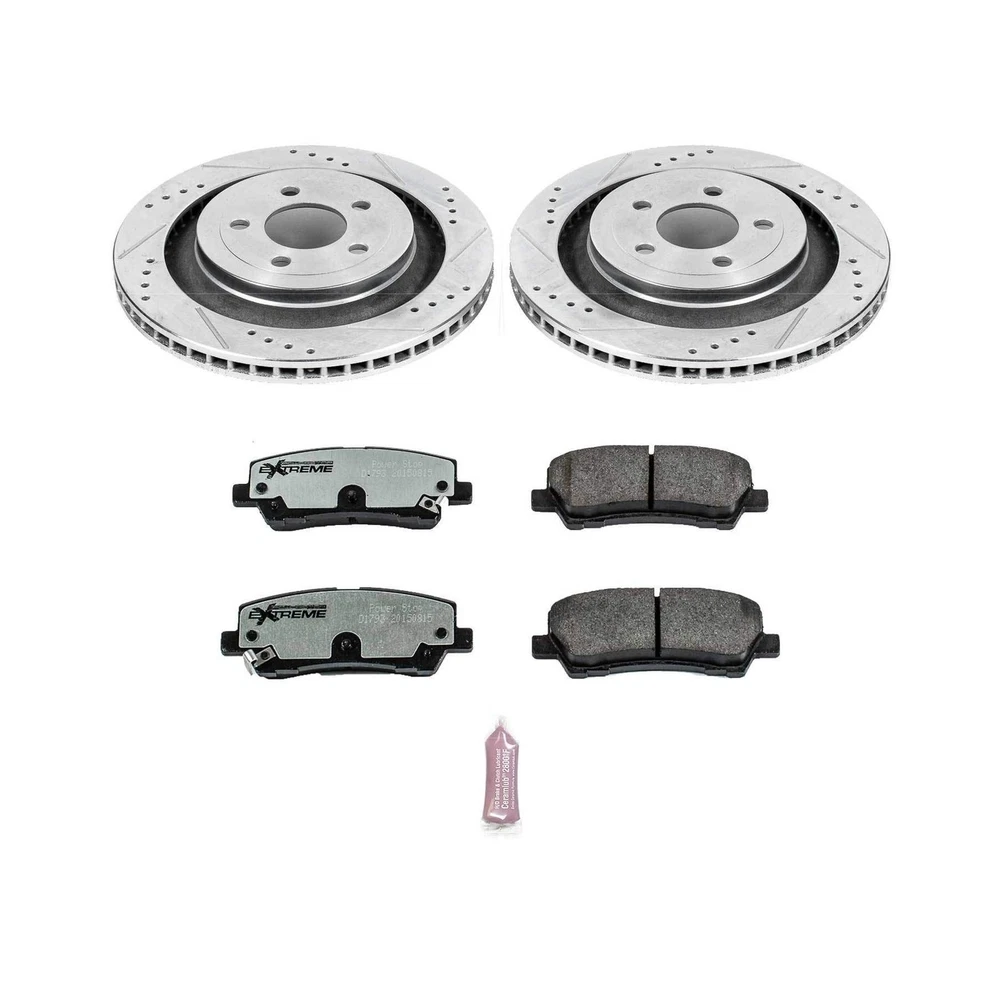 Power Stop K6812-26 Rear Z26 Carbon Fiber Brake Pads with Drilled & Slotted Brake Rotors Kit For Ford Mustang 2015-2022 [Model Specific] Description The Power Stop Z26 Street Warrior performance brake kit is designed for muscles cars and modified vehicles. The brake torque from the Z26 pads is consistenly higher than original equipment with outstanding thermal stability to handle the most demanding conditions. Combine these pads with our drilled and slotted rotors increases the brake power of your ride to handle the most spirited drivers. Features: Components are engineered to handle the increased demand of high horsepower cars and modified vehicles. Dust-free braking performance. Premium stainless steel shims provide better heat dissipation for improved stopping power with virtually no noise Drilled and slotted rotors keep your brakes cool even in the most extreme conditions Designed as a performance bolt-on upgrade for stock brakes, without sacrificing everyday drivability Product Details: Brand: PowerStop Vehicle Service Type: Car Year: 2015 Global Trade Identification Number: 00 Assembly Required: No Brand: PowerStop Vehicle Service Type: Car Year: 2015 Global Trade Identification Number: 00 Assembly Required: No Automotive Fit Type: Vehicle Specific Fit OEM Part Number: K6812-26 Manufacturer: Power Stop UPC: 889906033400 Model: Power Stop K6812-26 Rear Z26 Carbon Fiber Brake Pads with Drilled & Slotted Brake Rotors Kit Item Weight: 38.7 pounds Product Dimensions: 14 x 14 x 14 inches Item model number: K6812-26 Is Discontinued By Manufacturer: No Exterior: Painted Manufacturer Part Number: K6812-26 Position: Rear Date First Available: March 2, 2016 Delivery We Do Not Ship Outside of the Continental US. Return Policy All items qualify for returns within 30 days of receipt. Buyer is responsible for return shipping on any item that is not damaged. Feedback We take our reputation seriously, we buy and sell online, so we understand the value of trust. If you are unsatisfied with your order, please contact us and we will work with you to resolve it to your satisfaction.
