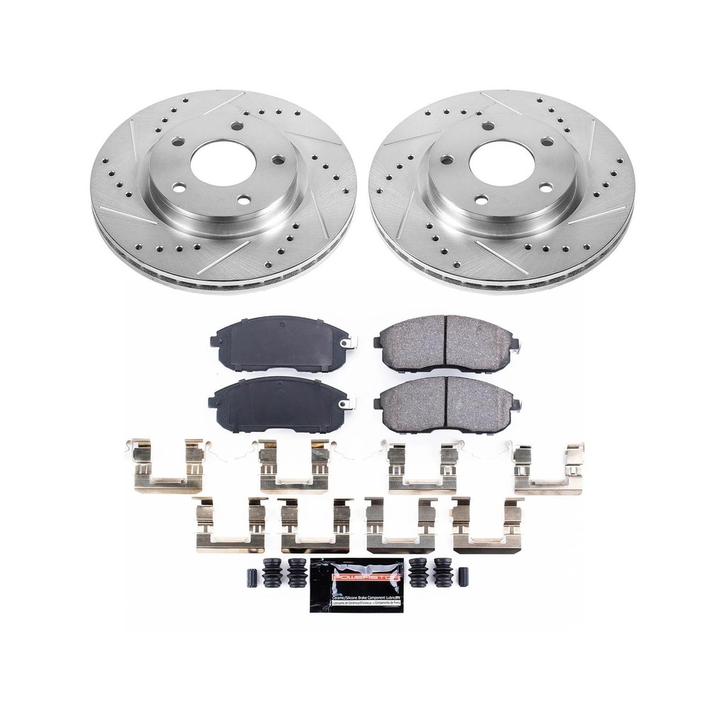 Power Stop K6961 Front Z23 Carbon Fiber Brake Pads with Drilled & Slotted Brake Rotors Kit For Nissan Sentra 2013-2019 [Model Specific] Description The Power Stop Z23 Evolution Sport Brake Upgrade Kit makes it easy to increase the braking power of your daily-driver with quality components engineered to work together. Designed as a true upgrade over stock brakes, this kit will reduce brake dust & elimate noise so you can ride in comfort. Let Power Stop simplify your brake job by including everything you need in the box: perfectly matched drilled & slotted rotors, Z23 Evolution Sport carbon-fiber ceramic brake pads, upgraded hardware, and high performance lubricant. Features: Custom-matched components are engineered to work together for superior braking power on your daily-driver Z23 Carbon-Fiber ceramic formula ensures dust-free braking performance. Premium rubberized shims provide virtually noise-free braking. Drilled & Slotted performance rotors for maximum cooling. Includes premium stainless steel hardware kit and ceramic brake lubricant for easy installation. Product Details: Brand: PowerStop Vehicle Service Type: Car, Truck Year: 2013 Global Trade Identification Number: 88 Assembly Required: No Brand: PowerStop Vehicle Service Type: Car, Truck Year: 2013 Global Trade Identification Number: 88 Assembly Required: No Automotive Fit Type: Vehicle Specific Fit OEM Part Number: K6961 Manufacturer: Power Stop UPC: 889906286288 Model: Power Stop K6961 Front Z23 Carbon Fiber Brake Pads with Drilled & Slotted Brake Rotors Kit Item Weight: 32.5 pounds Product Dimensions: 14 x 14 x 14 inches Item model number: K6961 Is Discontinued By Manufacturer: No Exterior: Zinc Plated Manufacturer Part Number: K6961 Position: Front Special Features: Bolt on upgrade for stock brakes, no modifications necessary, Buy with confidence from the originator & industry leader of brake kits, Improve the braking performance of the vehicle you use everyday, Noise-free and low dust, Zinc plated rotors for maximum protection against rust Date First Available: July 20, 2017 Delivery We Do Not Ship Outside of the Continental US. Return Policy All items qualify for returns within 30 days of receipt. Buyer is responsible for return shipping on any item that is not damaged. Feedback We take our reputation seriously, we buy and sell online, so we understand the value of trust. If you are unsatisfied with your order, please contact us and we will work with you to resolve it to your satisfaction.